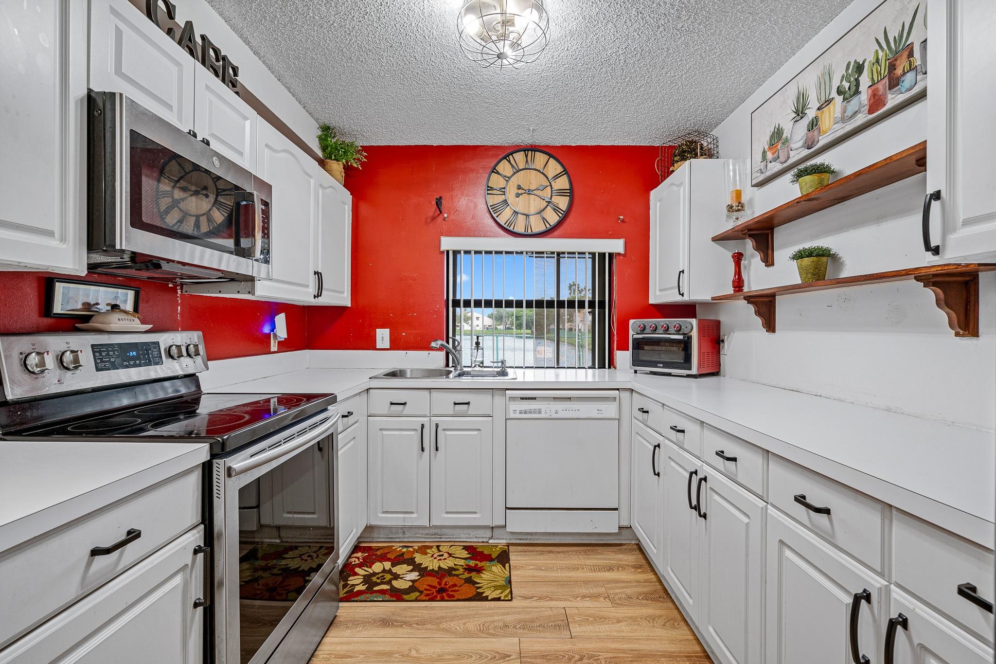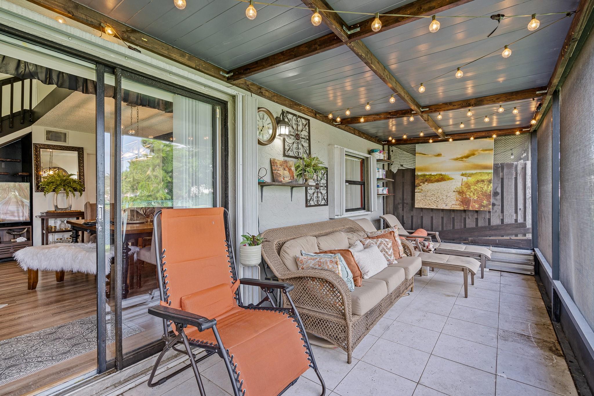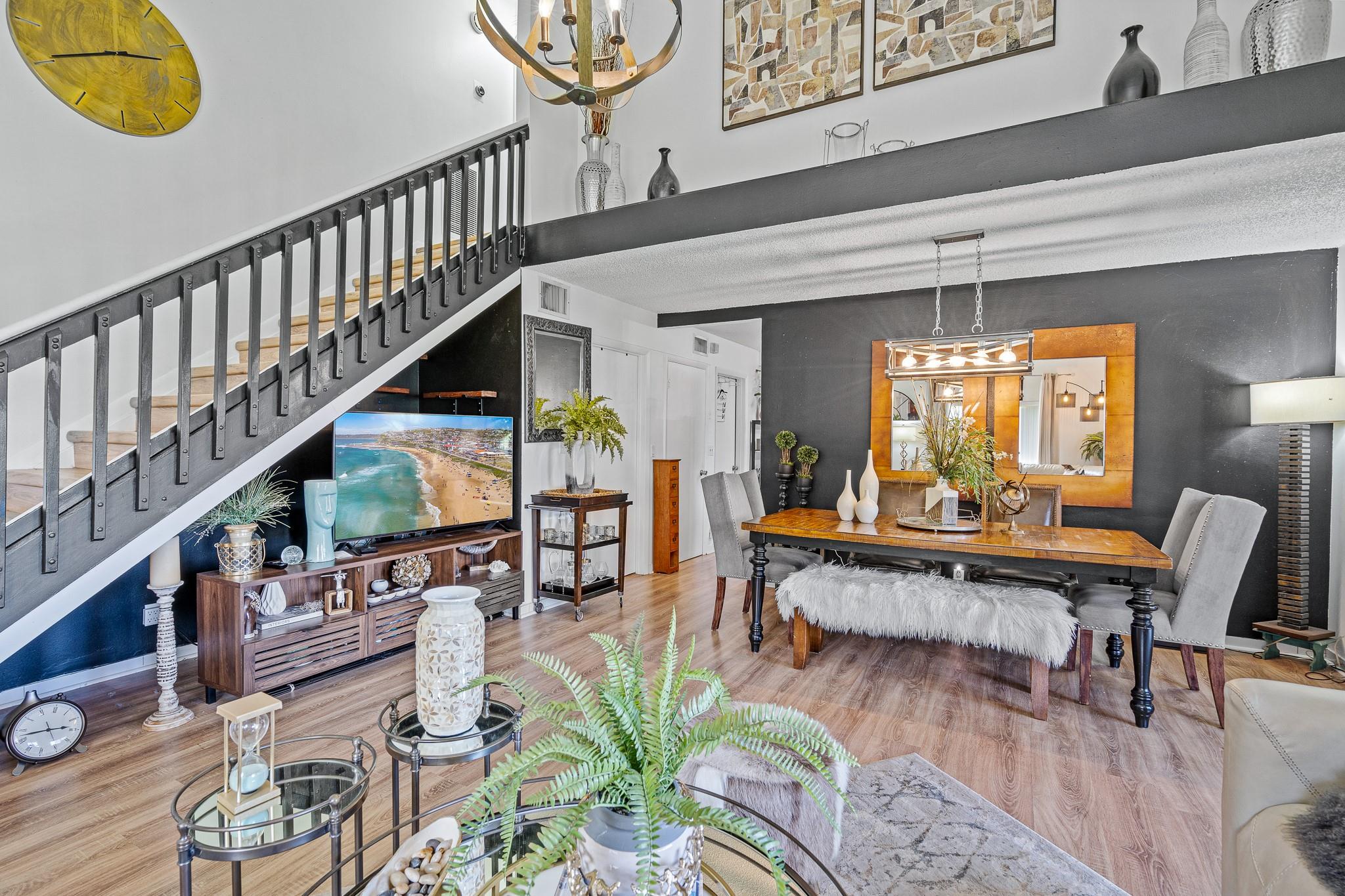 Beautiful 2 bedrooms 2 bathrooms vaulted ceiling townhouse on lake, with peaceful screen in patio over looking the lake. First floor Master bedroom has a den/office with walk-in closet which is being used as a sitting room. Very Spacious, Meticulously maintained. Move in ready. Conveniently location near shopping malls, school, restaurants, and major highways. Very nice area. Community pool. new roof installed 2023. home has accordion shutters on downstairs windows. upstairs bedroom window has hurricane panel.
