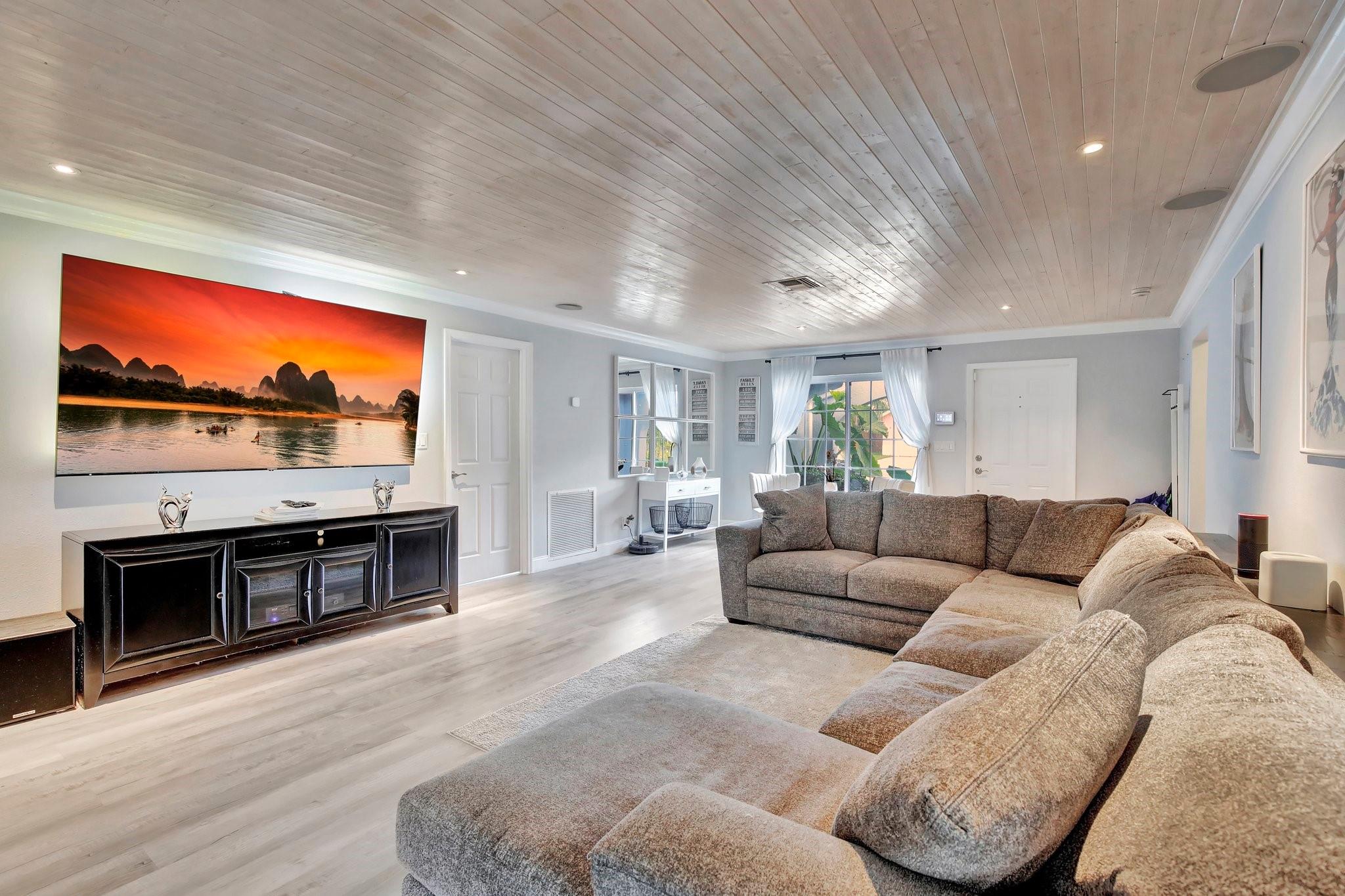 Best Priced Home in Prestigious Plantation Acres! This stunning completely upgraded 4 BR, 2 BA, 2 car garage waterfront home features a brand new roof (2022), Impact Windows w/Lifetime Warranty & Impact Door. It has been freshly painted & includes built-in 7.1 surround sound, crown molding, recessed lighting, new vinyl flooring, & WIFI dimmer switches. Kitchen boasts open concept w/moveable island, white wood shaker cabinets, Quartz Countertops, farmhouse sink, SS appliances, & Bio Assist disposal. The master suite has a walk-in closet with barn doors. The En-Suite bath has a shower w/frameless enclosure & dual sink wood vanity. Large backyard w/room for pool Roof 2022, A/C 2018, & newer water heater. Electric Car charger in garage. Interior laundry. Excellent location, MUST SEE!