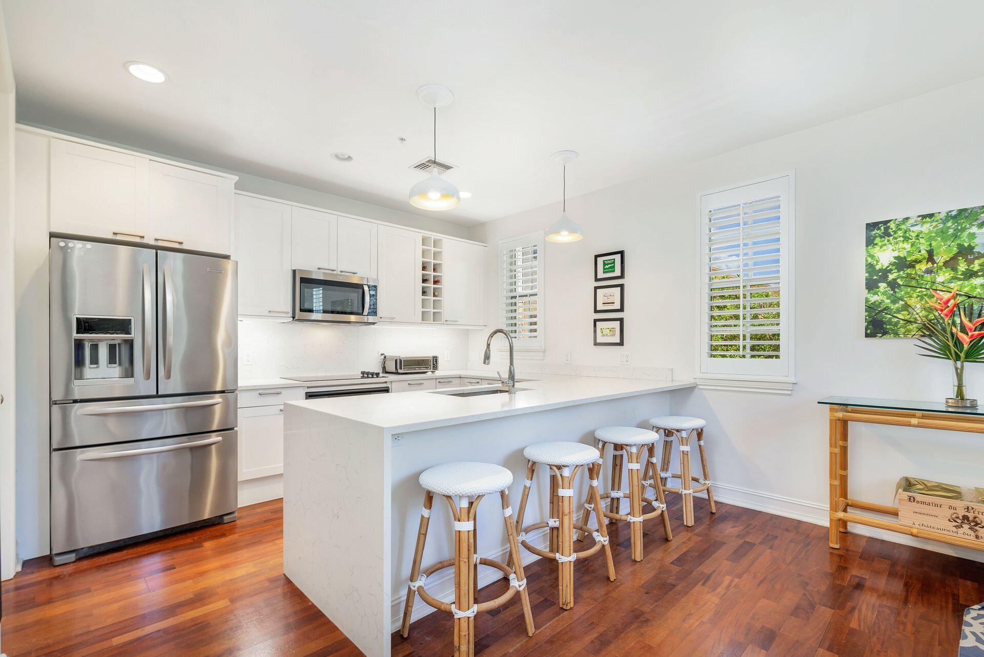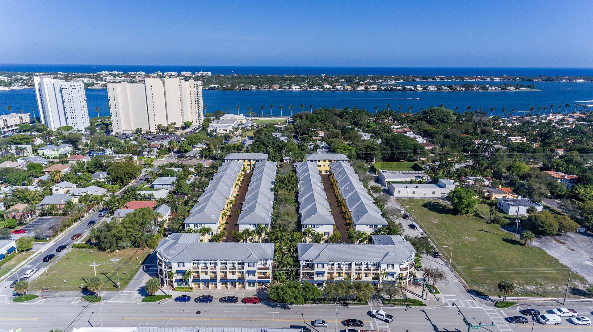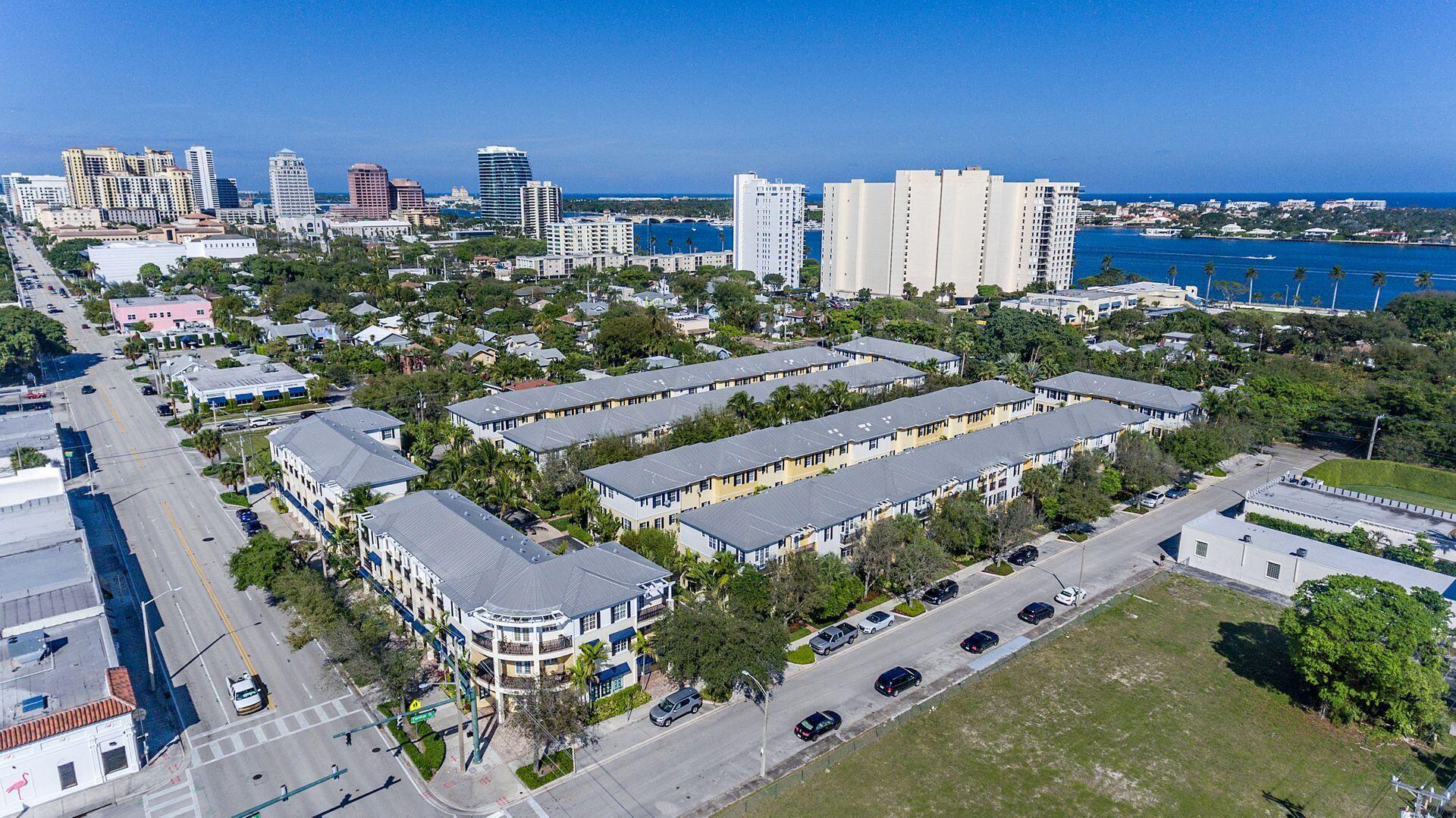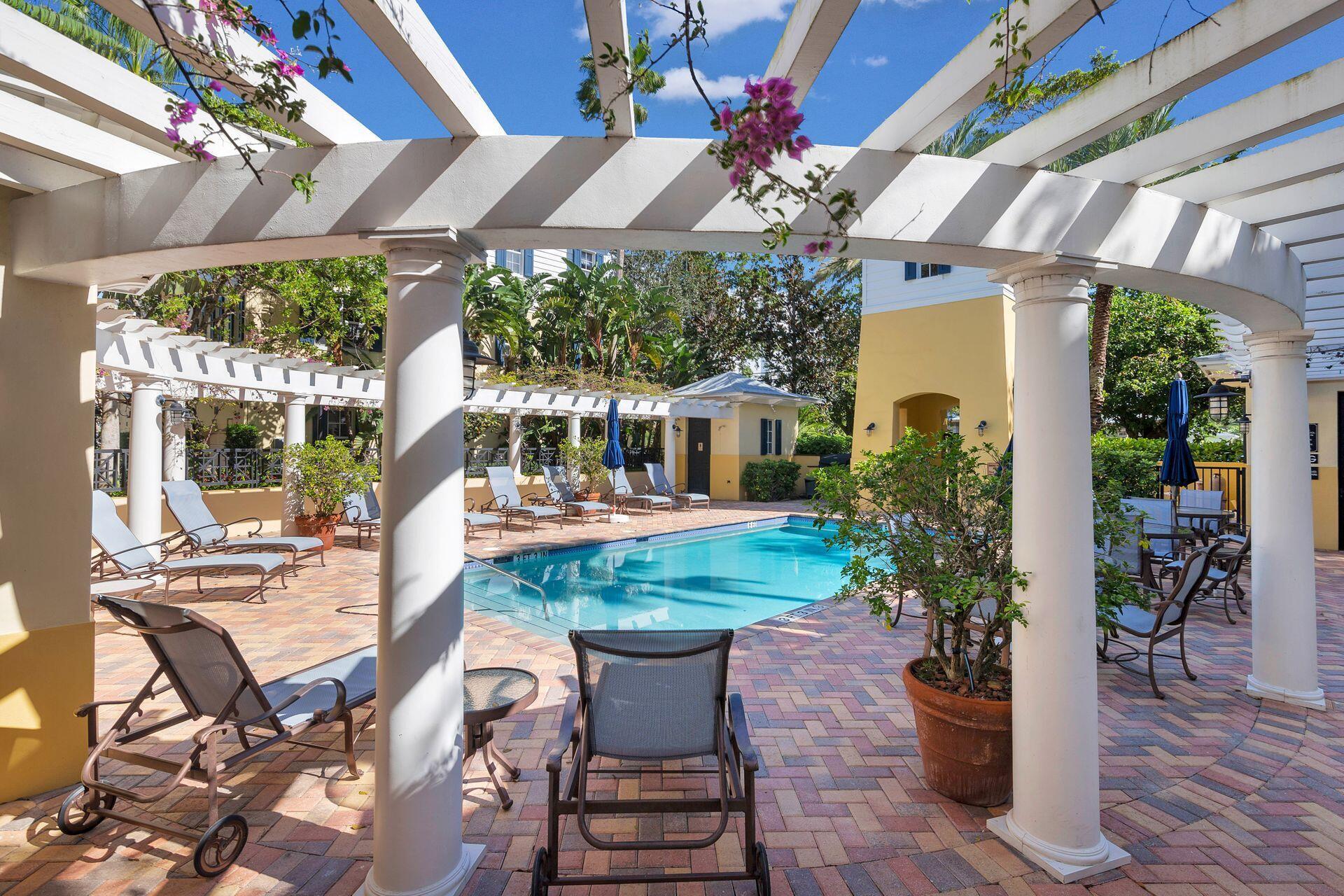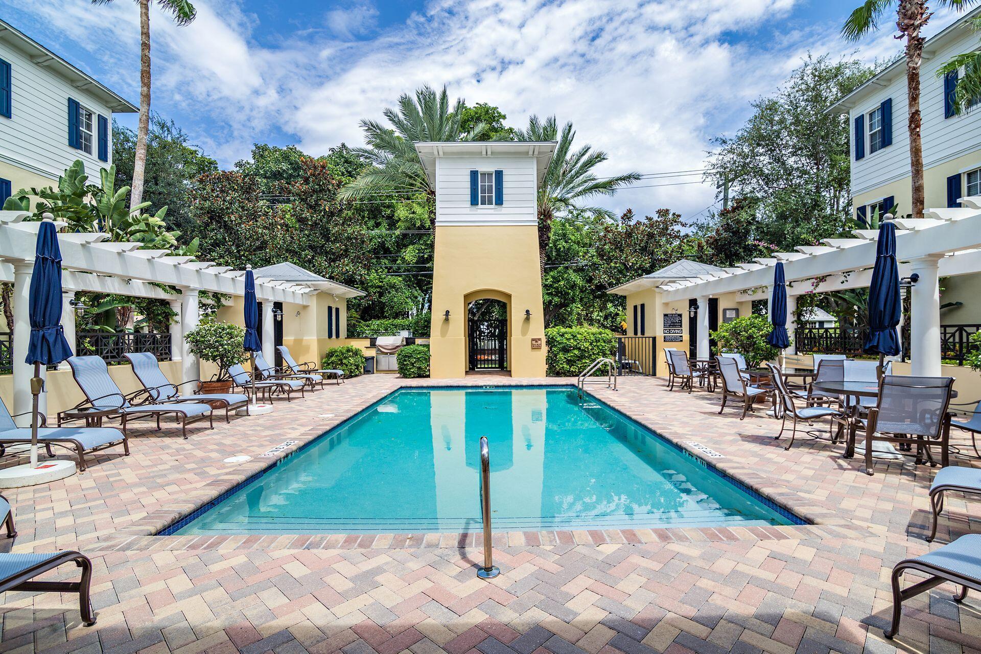 Beautiful 3 bedroom, 3.5 bath townhouse in Magnolia Court on leafy Olive Ave at the North end of El Cid historic district. Features 9+ ft ceilings on 3 levels, this home is spacious and sunny - a rare, oversized end unit overlooking the pool and a block from the Intercoastal. Short distance to many popular restaurants, markets and shopping venues. A 5 minute bike ride will take you over Middle Bridge to the heart of Palm Beach.
