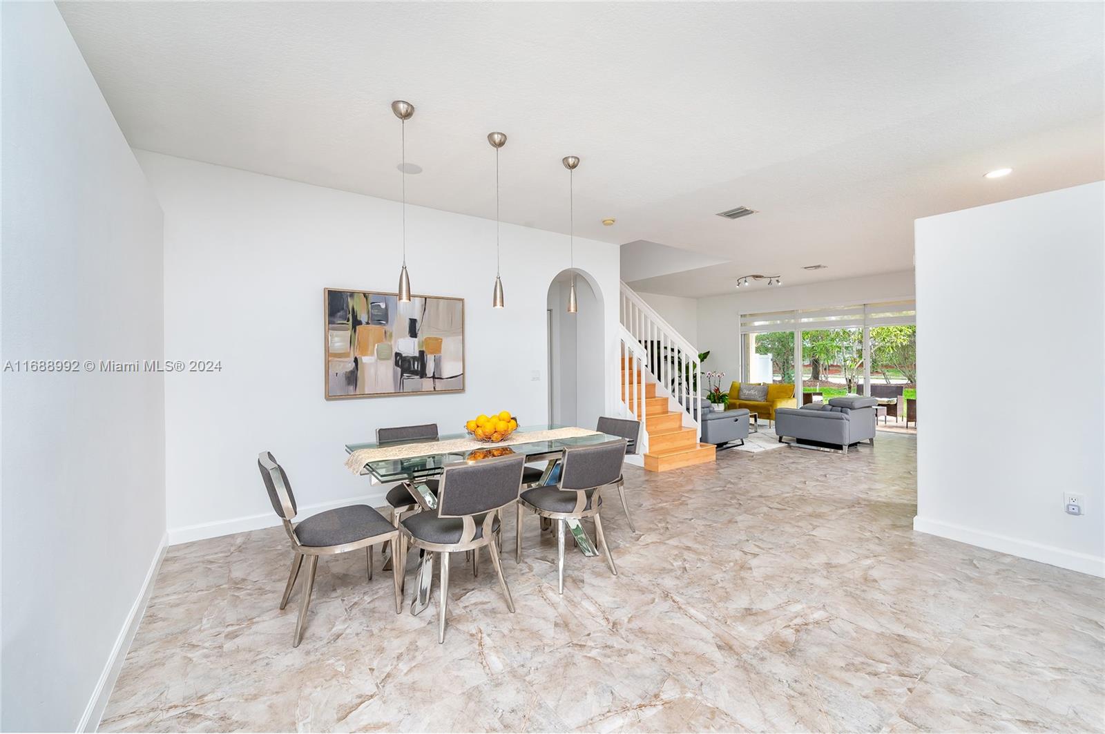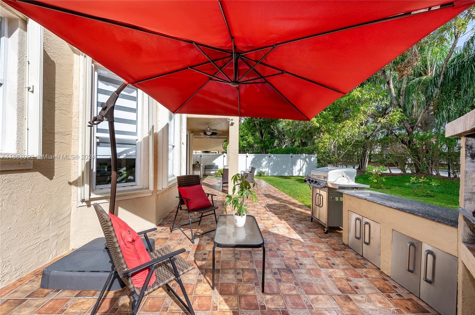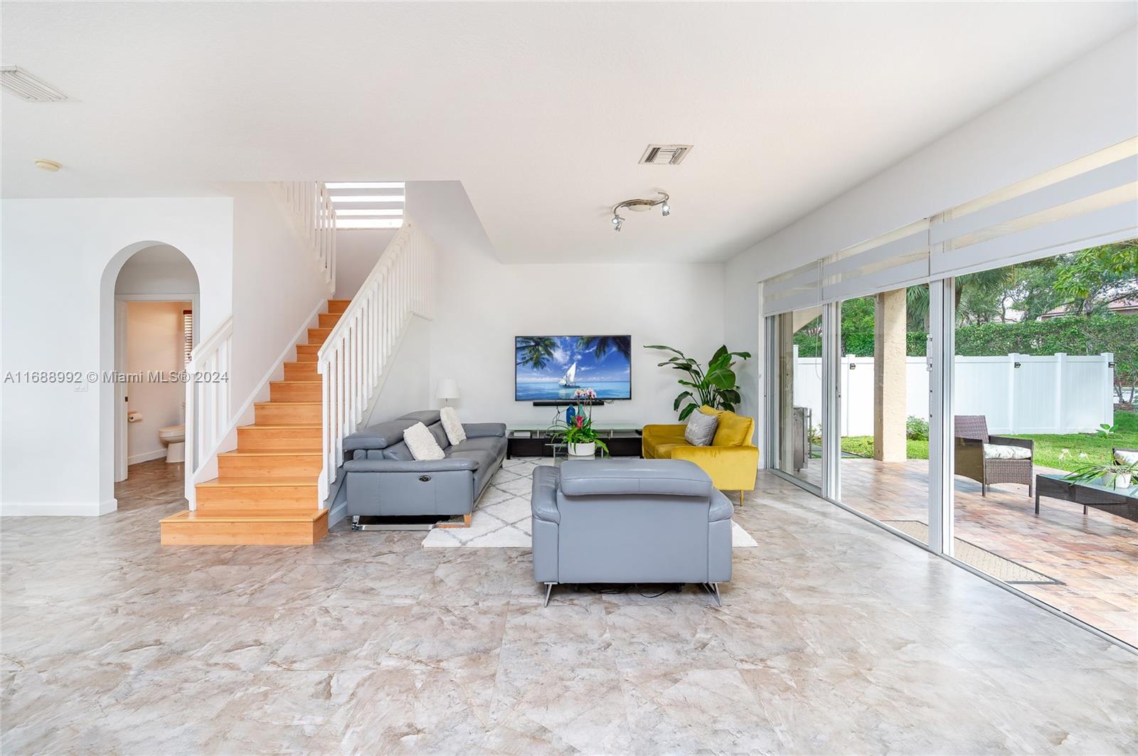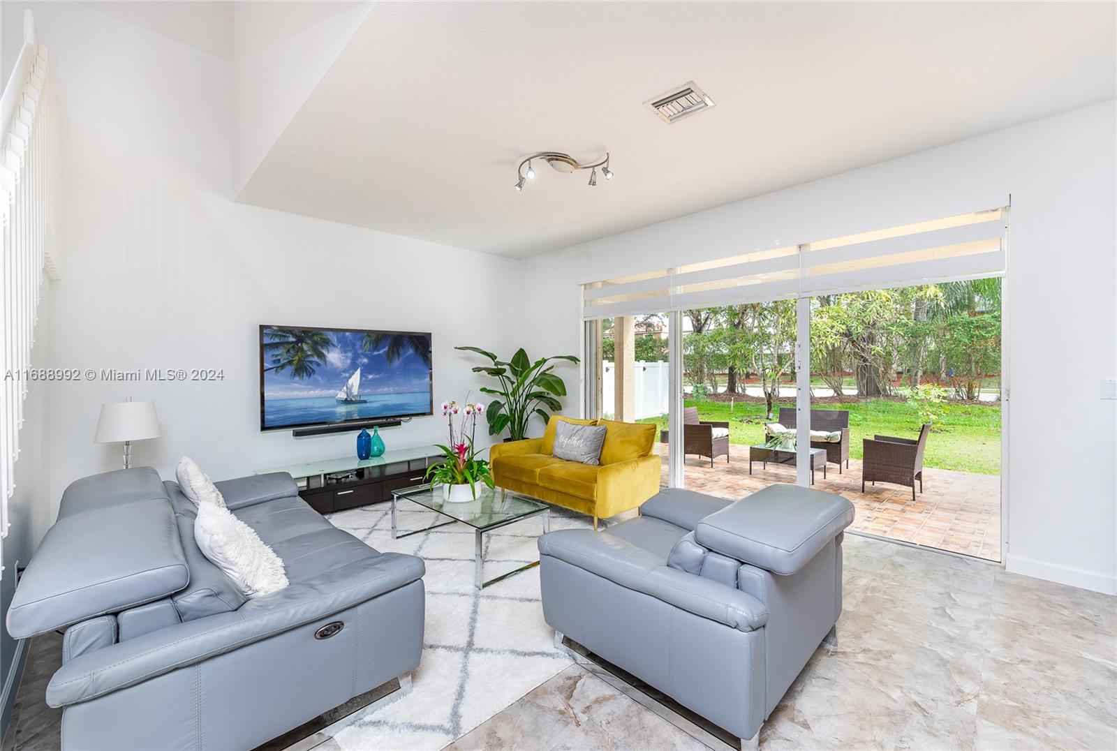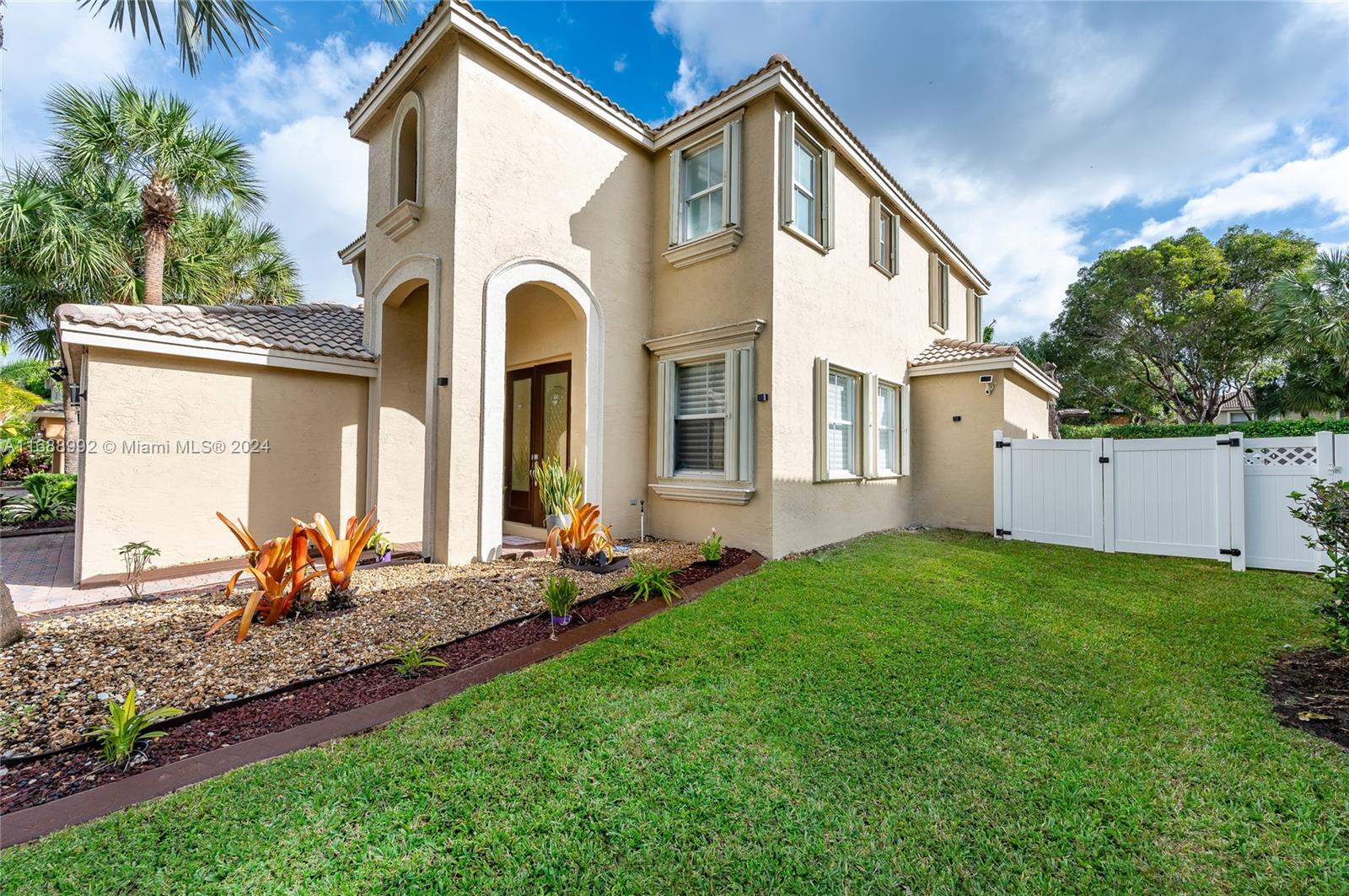Discover your dream home in Riviera Isles, a gated community in Miramar. This elegant two-story home offers over 2,500 SF of open living space. The bright living area has high ceilings, large windows, and tile/laminate floors. The gourmet kitchen, with granite countertops and stainless steel appliances, opens to a breakfast nook and family room. The primary suite has a walk-in closet and luxury bath; three additional bedrooms offer ample space. Outside, relax on the covered patio and landscaped yard. Community amenities include a resort pool, courts, fitness center, and trails. Near top schools, shopping, dining, and highways—this home blends luxury and convenience.