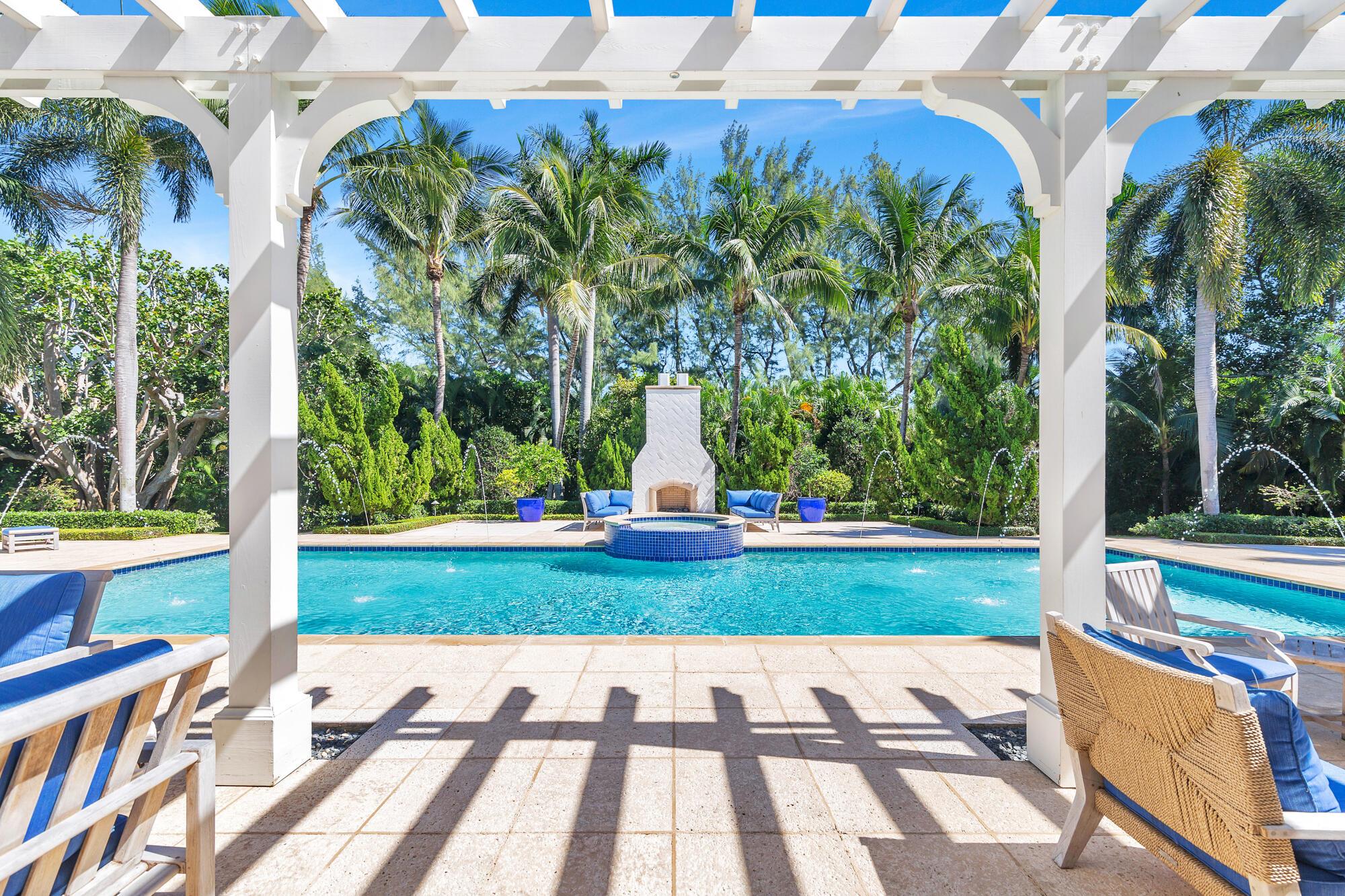 Stylishly remastered and beautifully appointed with gracious luxury details, this casually elegant Bermuda-style estate is enhanced by charming architectural features that deliver a fashion-forward look. On nearly an acre on a private cul-de-sac near ocean beach access, the fabulous backyard oasis is highlighted by a gas fireplace, while sparkling fountains arc over the new 50+/--ft. pool.