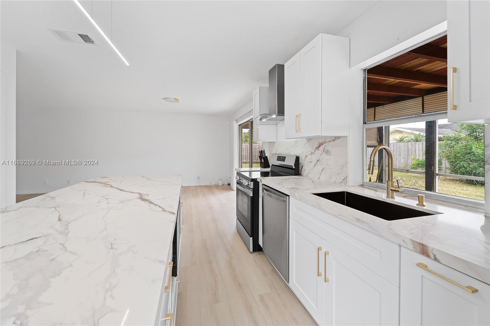 Beautiful Single-Family Home with Spectacular Master Suite, Luxury Features, Garage and New Roof! This meticulously updated dream home boasts high-end finishes and thoughtful upgrades. The oversized master bedroom suite features a large walk-in closet and spa-like bathroom complete with free-standing bathtub and rain shower. New kitchen features Innovo Italian custom cabinetry, Frigidaire and Whirlpool SS appliances, beautiful quartz countertops and spacious island. Enjoy the elegance of luxury vinyl plank flooring throughout the home, with porcelain tile in the bathrooms for a clean, modern aesthetic. Spacious backyard with plenty of room for a pool! Nestled in the desirable Palm Aire neighborhood, this home is perfect for those who appreciate quality, comfort and convenience.