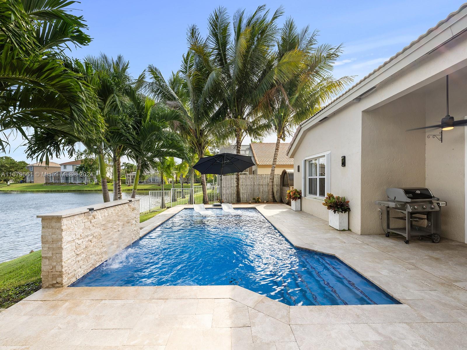 Welcome to your dream home in the exclusive gated community of Pembroke Falls! This stunning 3-bedroom, 2.5-bathroom residence overlooks a shimmering lake. Step into a bright, open-concept living space featuring high ceilings and large windows. The gourmet kitchen boasts stainless steel appliances and granite countertops, ideal for gatherings. The dining area offers lovely views of the pool and lake. Retreat to the luxurious master suite with a walk-in closet and spa-like en-suite bathroom. Outside, enjoy your private backyard oasis with a sparkling pool and a sauna for ultimate relaxation. The shaded patio invites alfresco dining, and the tranquil lake is perfect for fishing or kayaking. Experience a lifestyle of luxury—schedule your private showing today!