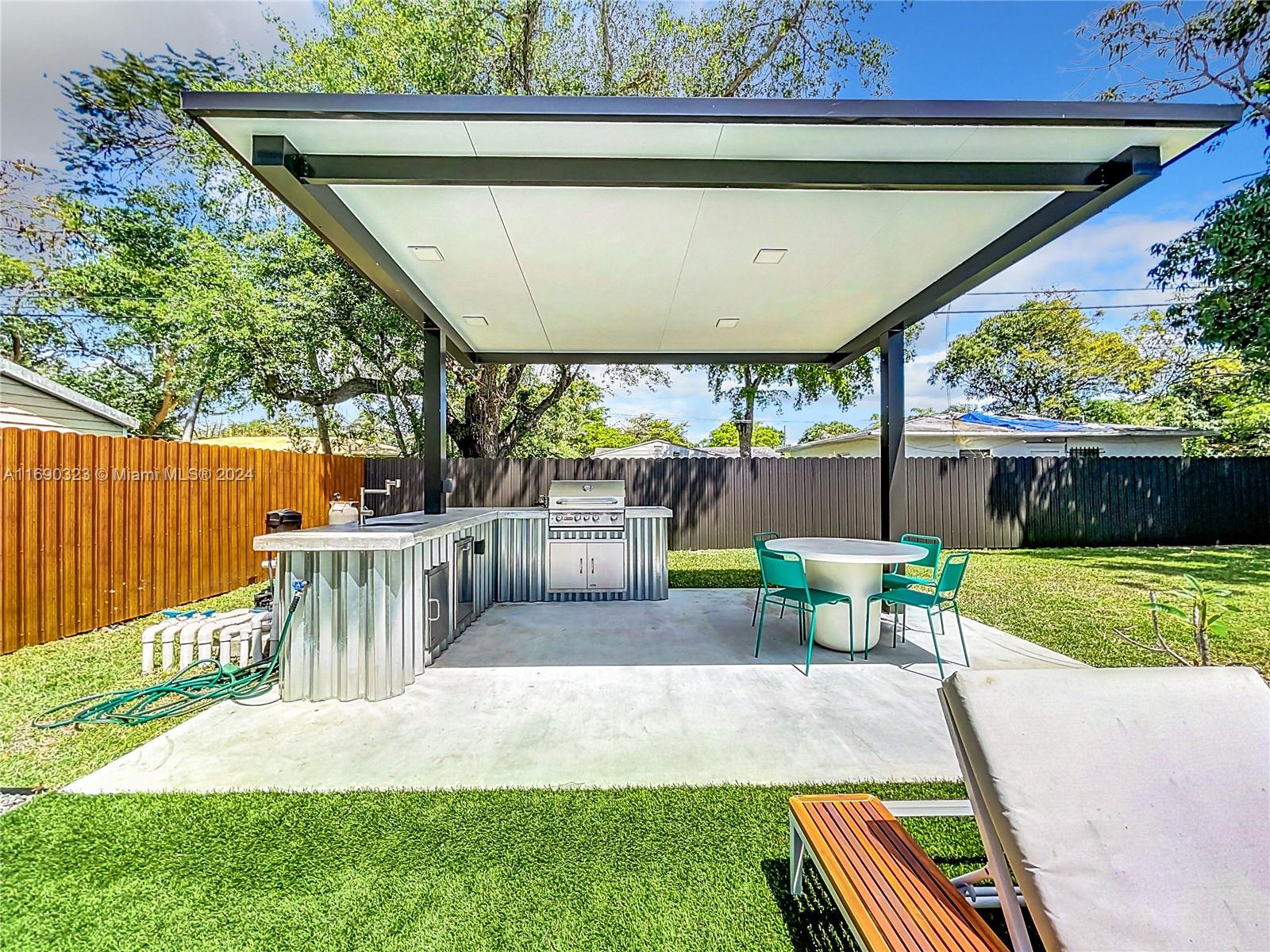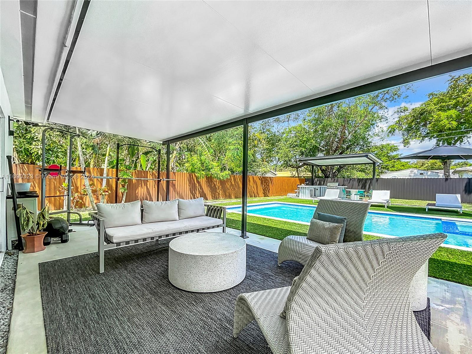 Nestled in a desirable North Miami neighborhood, this beautiful 4-bedroom newly rebuilt in year 2022 & renovated house, boasts an impressive array of features, upgrades and amenities. As you enter, you are greeted by an open floor plan that lends an airy and spacious feel to the living space. No expenses spared!One-of-a-kind kitchen with custom cabinets, Samsung appliances and quartz countertops. The home is equipped with recessed lighting, window treatments, smart home tech, built-in closets and large tile floors.The exterior is equally impressive with an oversized salt-water swimming pool, well-manicured landscape, built-in barbecue area and outdoor gym. Large concrete driveways with enough space to park several cars. Centrally located, minutes from Bal Harbor shops, Mimo and Whole Foods