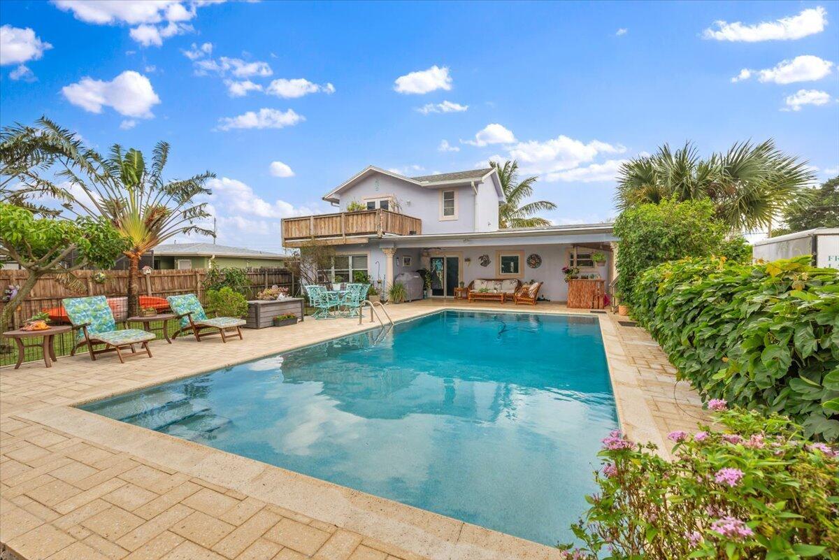 This beautiful 3 bed, 2 bath & BONUS 4th ROOM home offers a spacious layout with travertine floors, a kitchen featuring granite countertops and an island. Relax in the large pool surrounded by a gorgeous sand shell paver deck, take your boat out with the convenient ocean access, or enjoy the tropical yard with fruit trees and an herb garden. The master suite boasts a private balcony with waterfront views and stunning sunsets. Impact windows and doors, custom stone showers, and laundry rooms on both floors complete the package. Your waterfront oasis awaits--schedule a showing today!