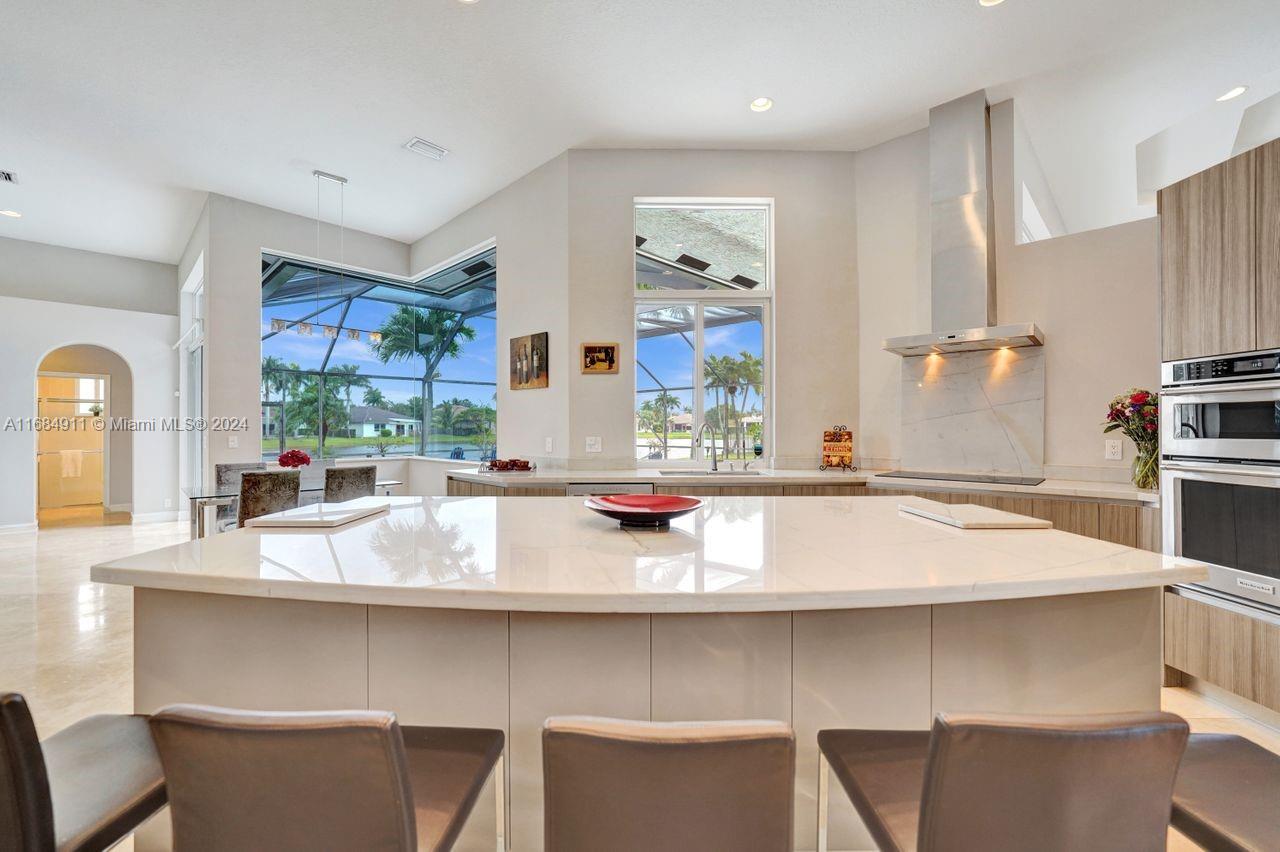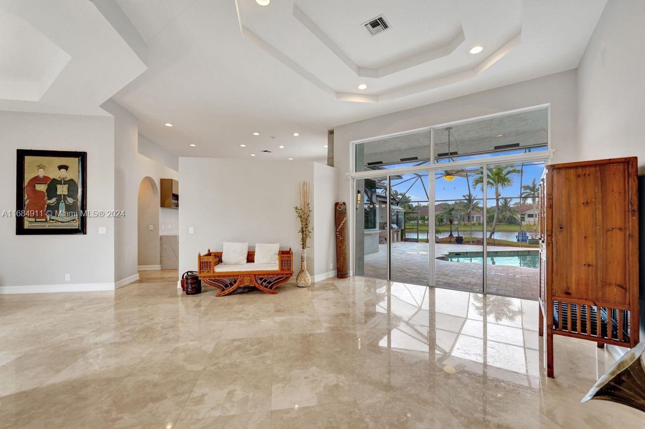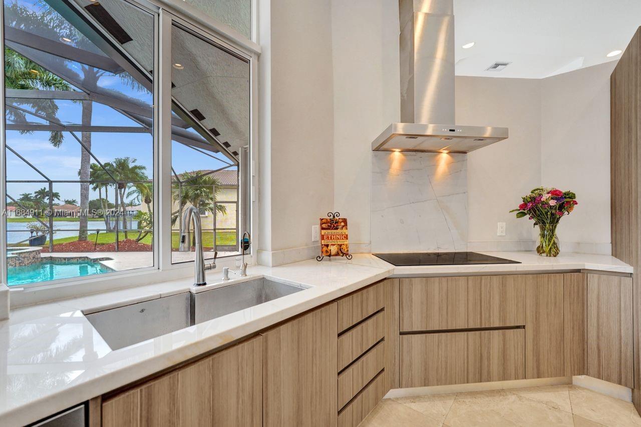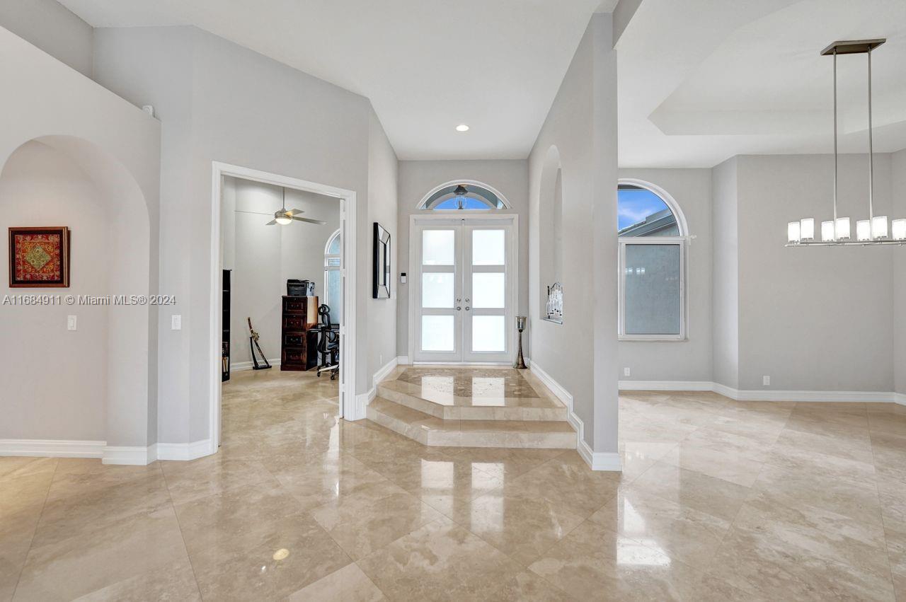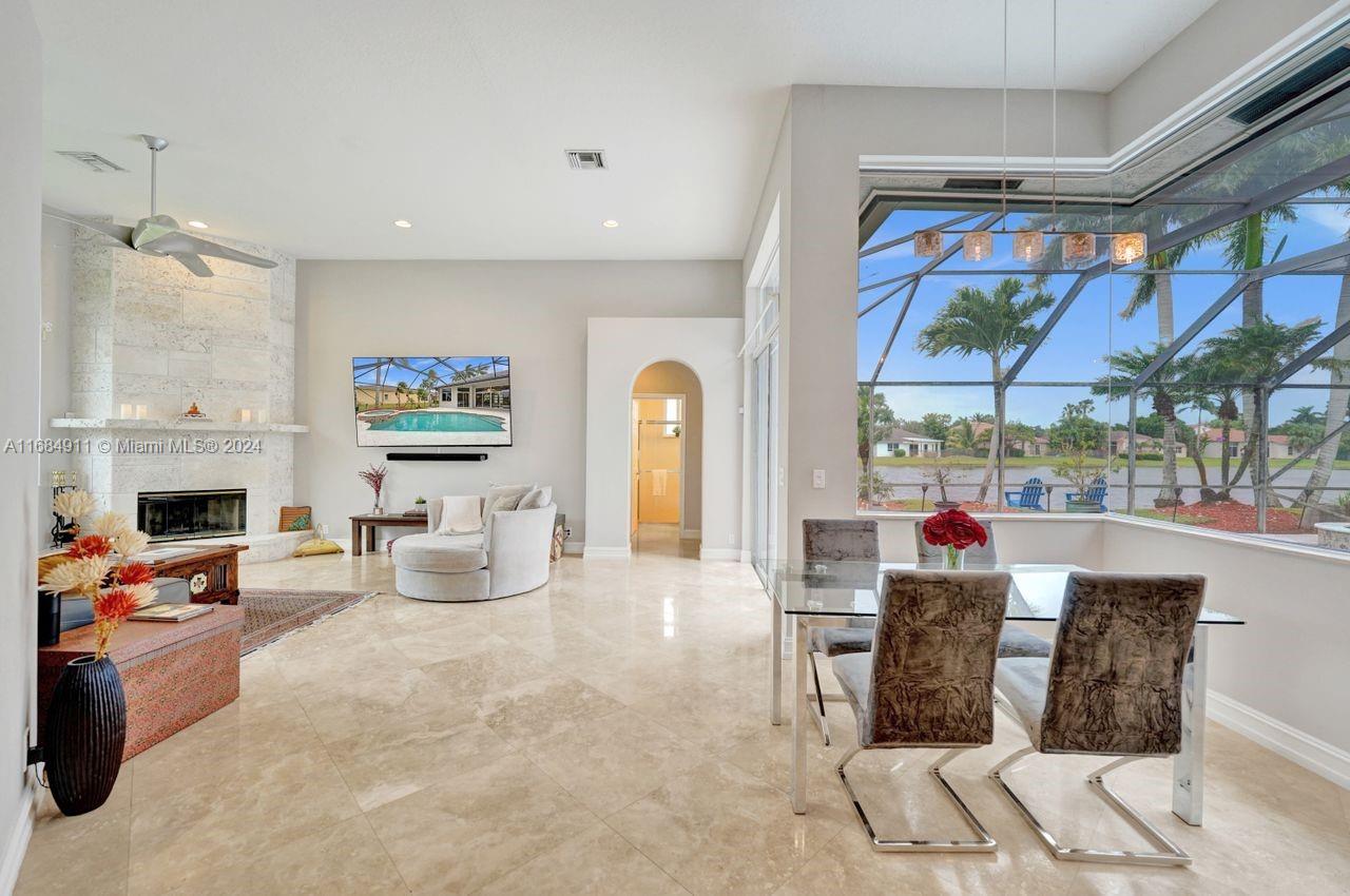 Experience luxury in the prestigious community of The Landings, Weston. This single story, spacious 5BDRM/3.5BATH, plus an Office, home boasts stunning curb appeal, circular driveway and 3-car garage. Step inside to find stunning lake views, UPDATED swimming pool, travertine marble deck. Outside patio/yard is ideal for entertaining w/ Summer kitchen. Travertine flooring, REMODELED stunning modern kitchen with wine fridge- a chef’s dream! Spacious bedrooms with custom closets, NEWER dishwasher, NEW ROOF, partial IMPACT windows/doors, accordions, NEW hot water heater, pool pump. FRESHLY painted exterior, epoxy flooring in garage, driveway resurfaced/resealed. Community includes Gated Access, Pickleball, Basketball, Playground & convenient access to shopping, dining, schools, and highways.