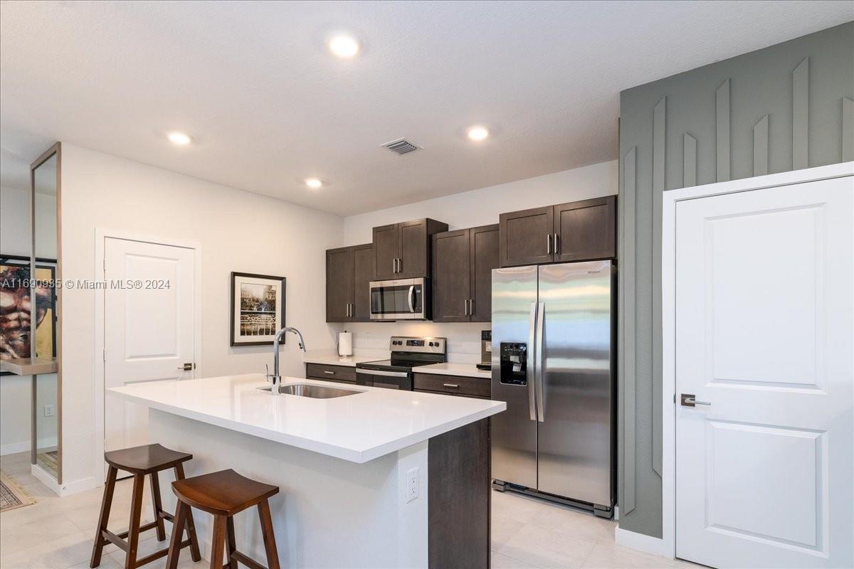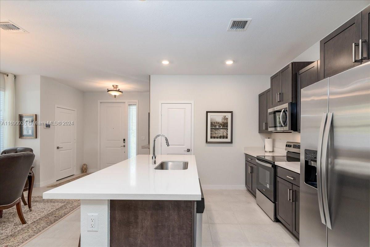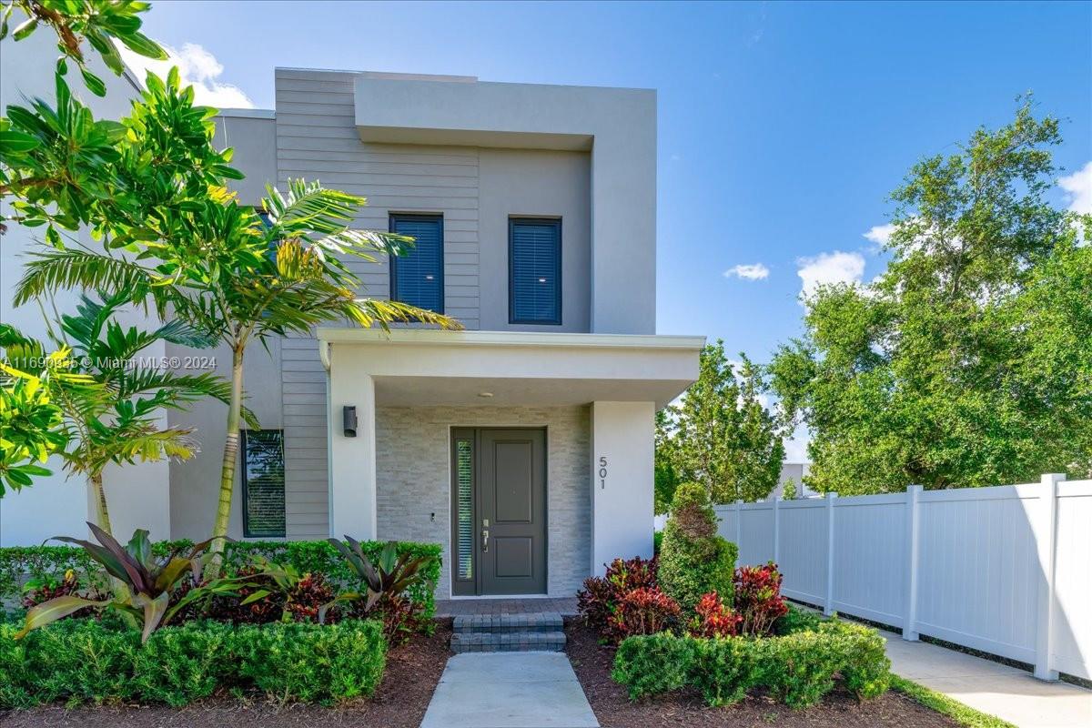 Discover this beautiful corner/end unit with REAL HURRICANE PROOF WINDOWS & DOORS, beautiful landscape community of 45 units. QUICK MOVE-IN, AS FAST AS 2 WEEKS OR FIRST WEEK OF JANUARY. Entering the main entry, you will find an open floor plan. A kitchen with quartz countertops, spacious island, custom cabinetry, 2 extra-large pantries and a powder room. Upstairs, a spacious master with en-suite bathroom and a large walk-in closet. Three additional bedrooms and a second bath with tub/shower combo are located upstair. The laundry room with Wirlpool washer and dryer is also located upstairs. The private community offers a heated swimming pool with cabana and ample of guests parking. Open house every week-end, 12-2:30 PM. Come and see this townhouse in person and learn more about flexibility.