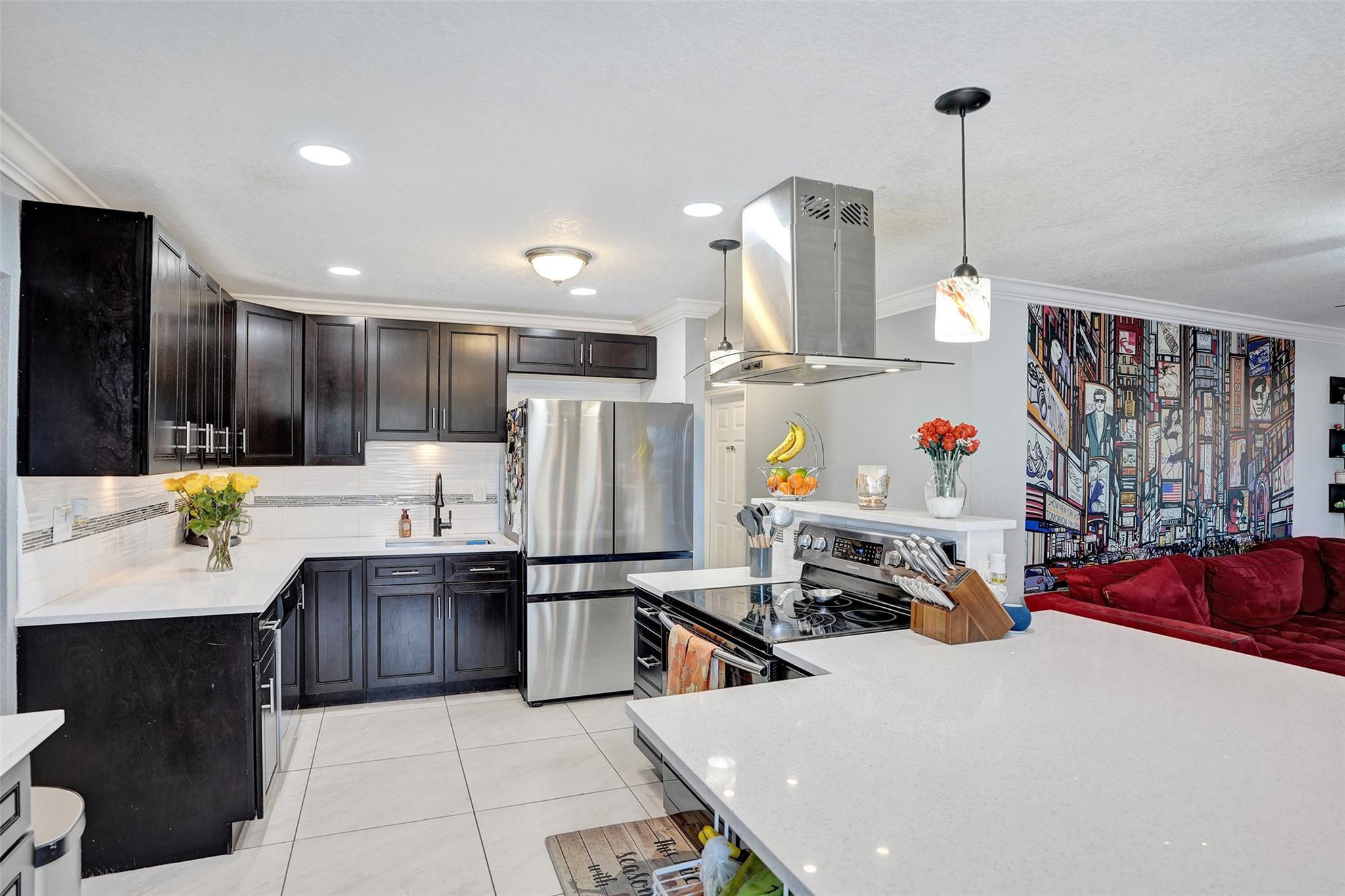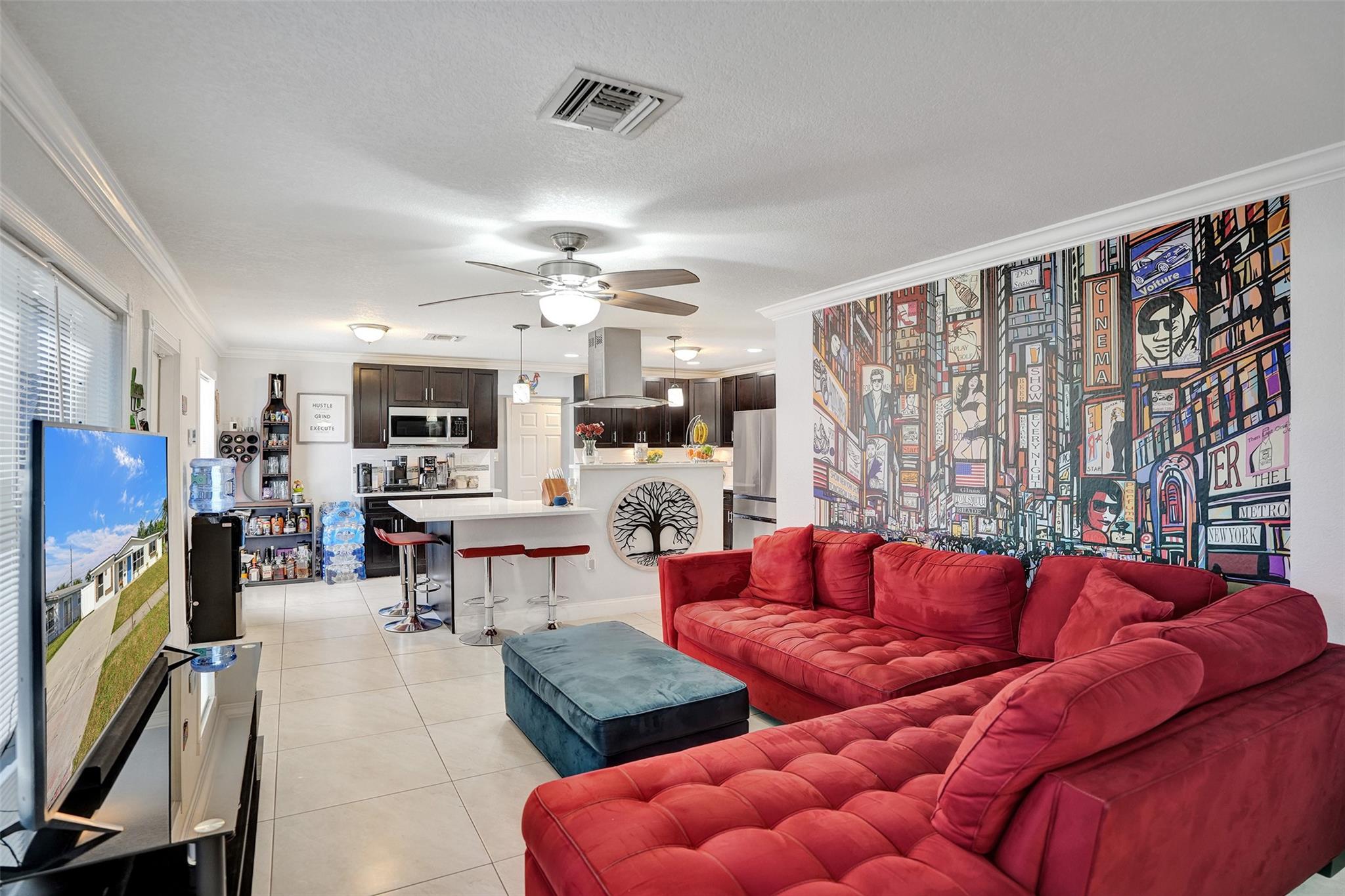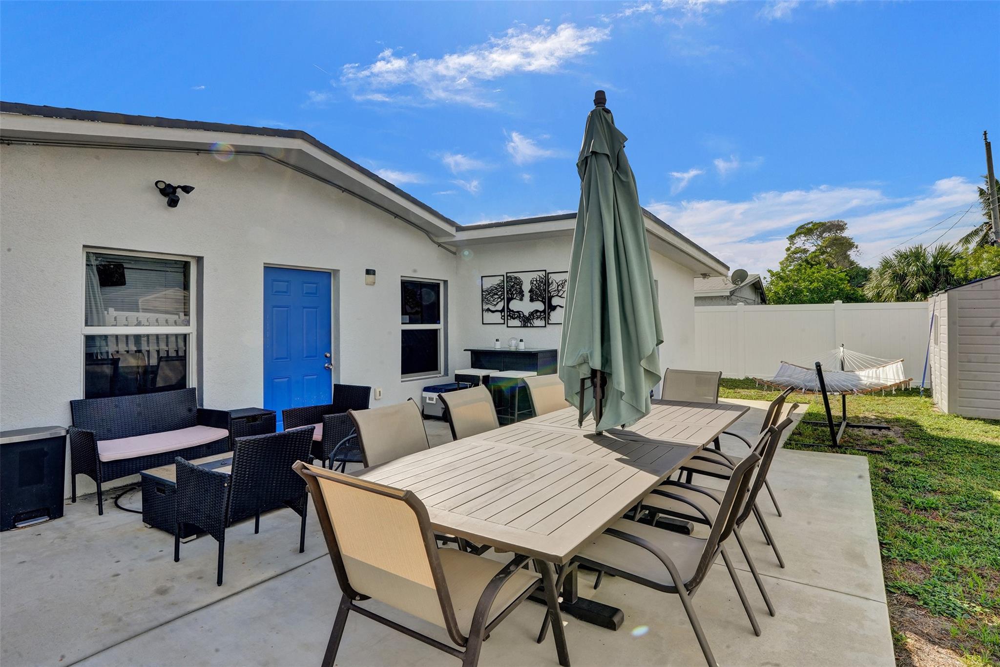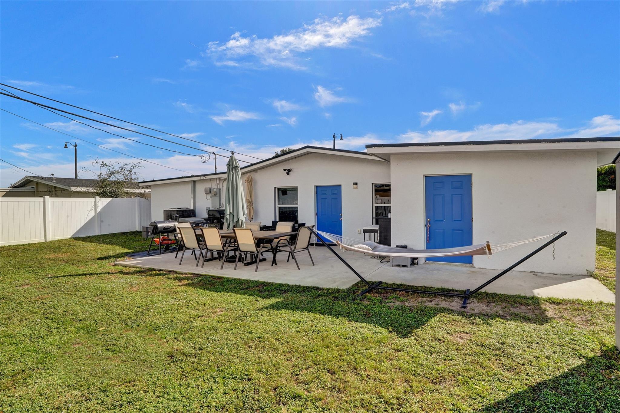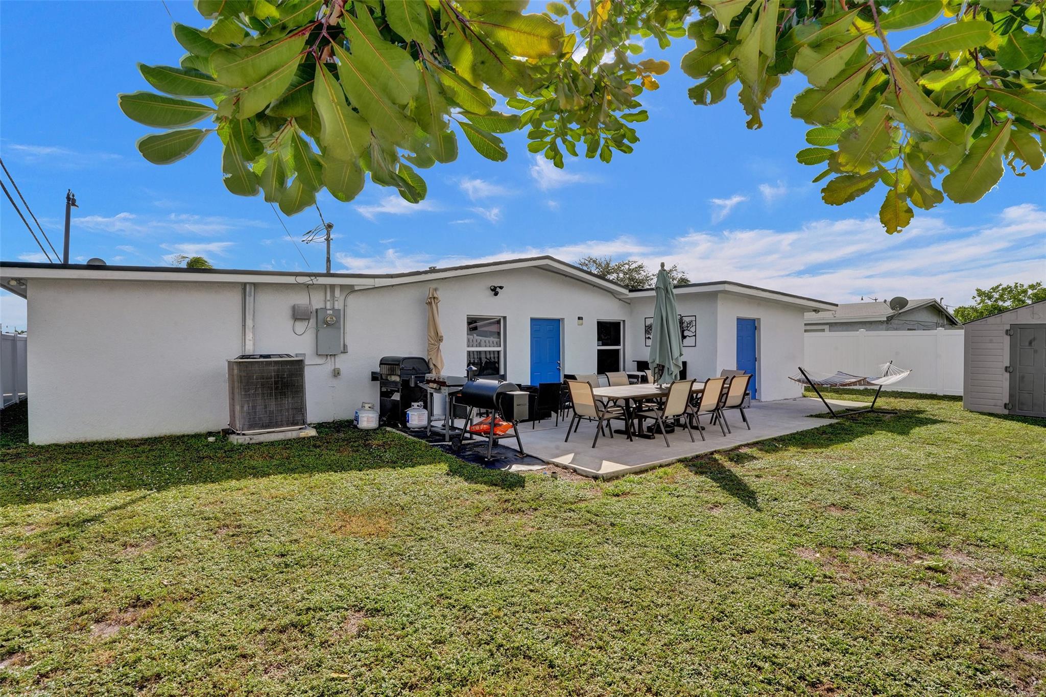 Don't miss your opportunity to make this completely remodeled, extremely well-maintained, 5-bedroom, 3-bathroom home in Pompano Beach, yours! The large open kitchen shines with Corian countertops, 36" cabinets, black and SS appliances, LED lighting and an island with ceiling mounted range hood. The expansive primary suite includes a walk-in shower, huge walk-in closet and a flex-room that could be used as an office, 6th bedroom, or sitting area. Other great features include: Split floor plan, tile floors throughout, newer roof, impact windows and doors, upgraded electrical and plumbing (all 2019), and a second laundry hookup in the utility room with sink and storage. The fenced backyard greets you with a large patio perfect for entertaining or relaxing. Truly unique home. No HOA.