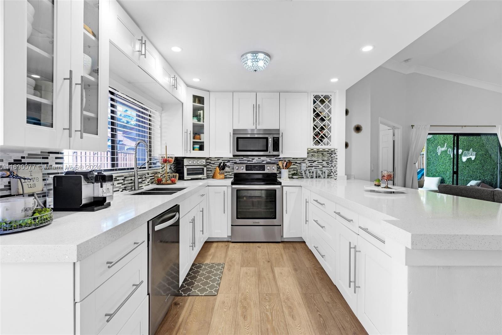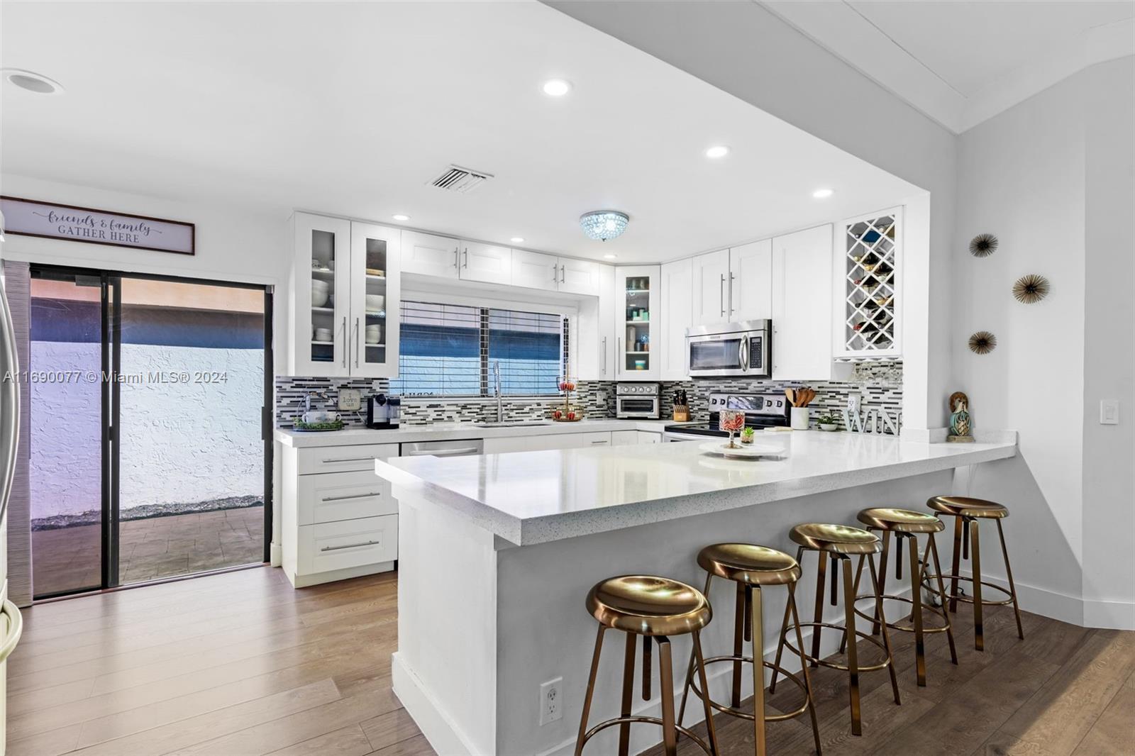 This beautifully updated home is located in the sought-after Cross Creek community in the Jacaranda area of Plantation. The home has been tastefully updated and features a spacious living area, a modern kitchen with quartz countertops, stainless steel appliances, and a grand island for entertaining, adding a touch of elegance and functionality. The split floor plan offers 3 bedrooms & 2 baths, with a large master bedroom that features 2 walk-in closets. Other features included vaulted ceilings, engineered wood floors, an efficient tankless water heater, and accordion hurricane shutters with an automatic roll down shutter for the patio nook door. Newer roof & A/C done in 2015. Conveniently located near parks, dining, shopping, and major highways. Only 20 minutes to the beach and airport.