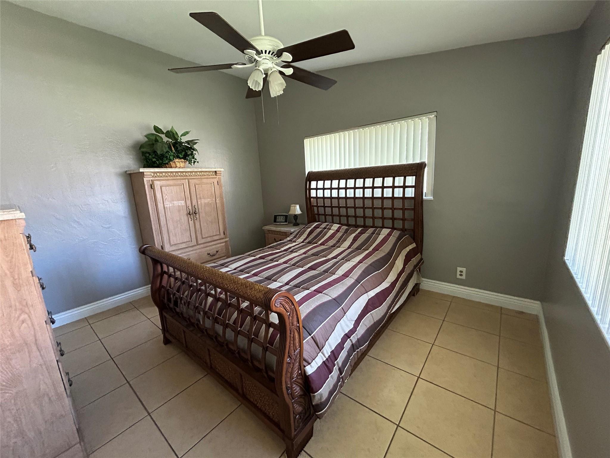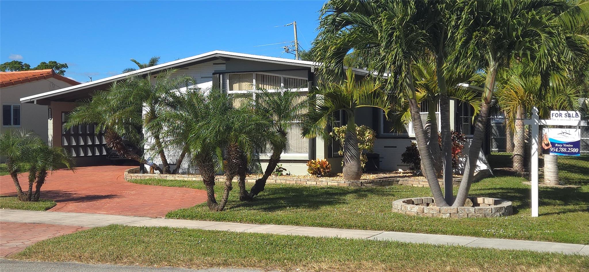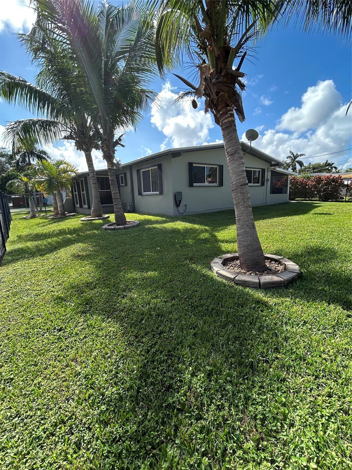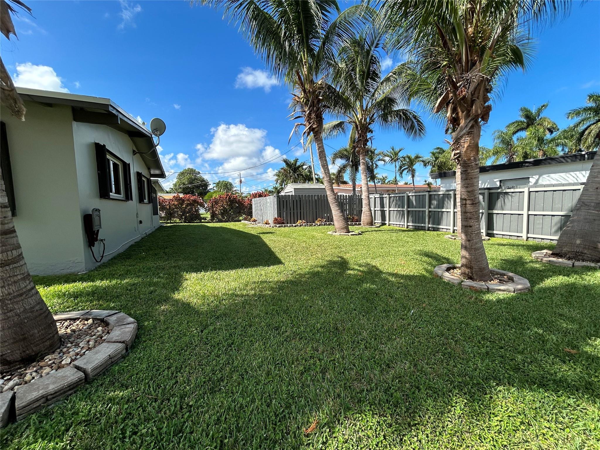 Imagine yourself living in this charming light -filled 2 bedroom 2 bath open concept and vaulted ceiling home , situated East of US1 , 1 mile from the beach and shopping malls . This home is tiled throughout except for pristine carpeting in the large master bedroom with a beautiful remodeled bathroom and a large tiled guest room lodging an adjacent bathroom with a bathtub shower combination . This property offers a brand new roof (2024), new AC (2023) , new gas water heater (2023) , new gas range (2024) , washer , dryer and refrigerator (2021 ) , ample mature palm trees, an enclosed shed , plenty of space for a beautiful pool on a corner lot !! Don't miss out on this great opportunity !!