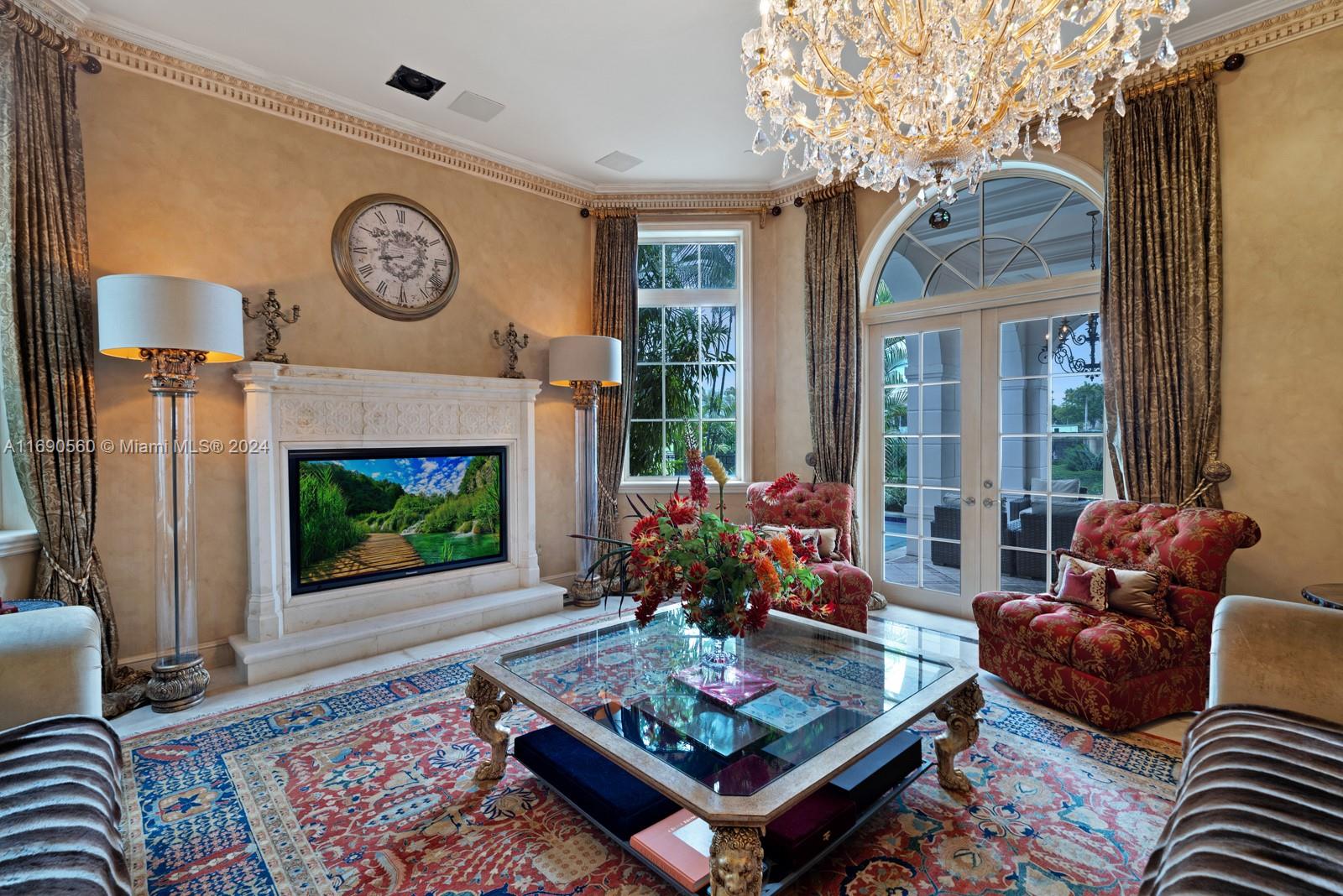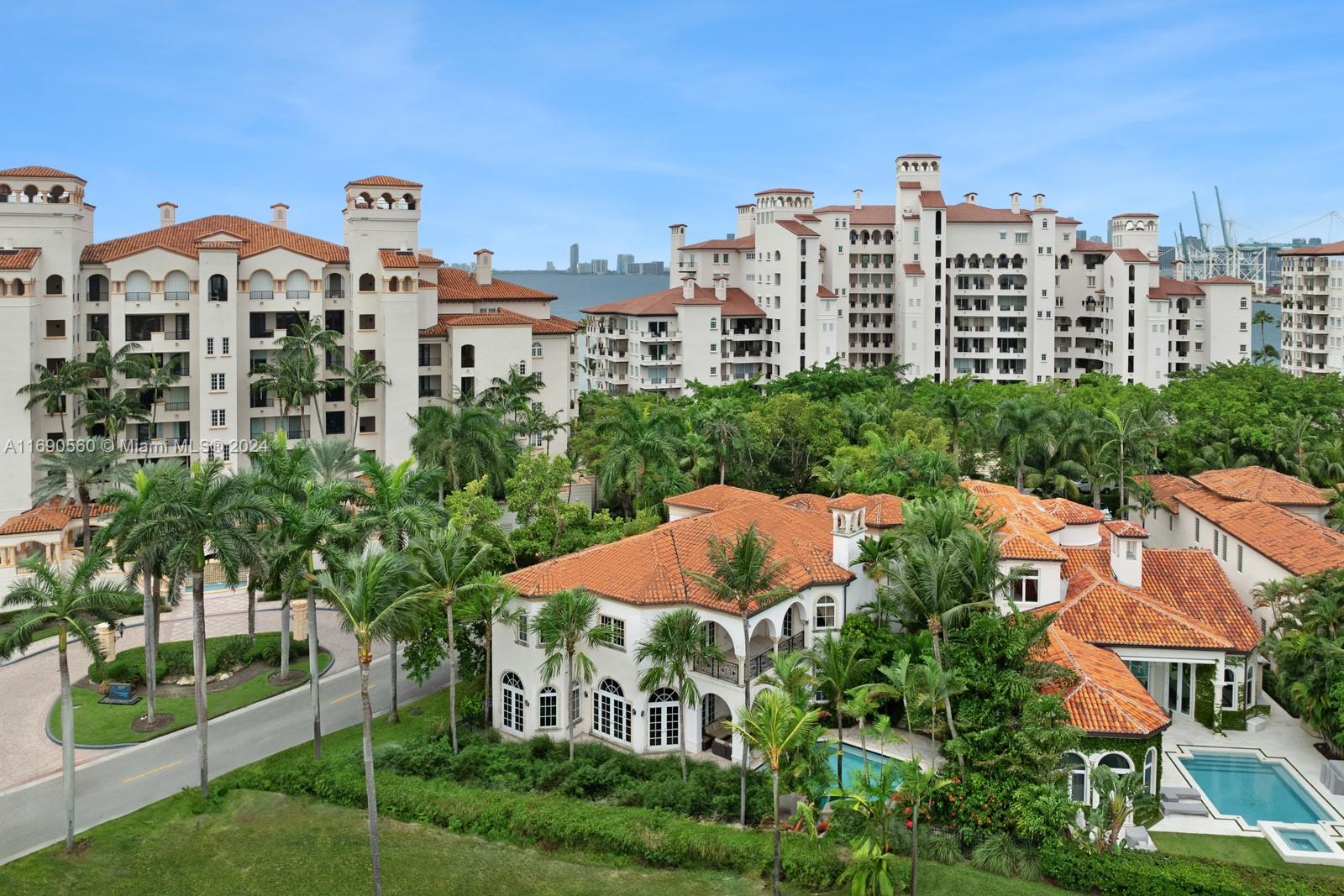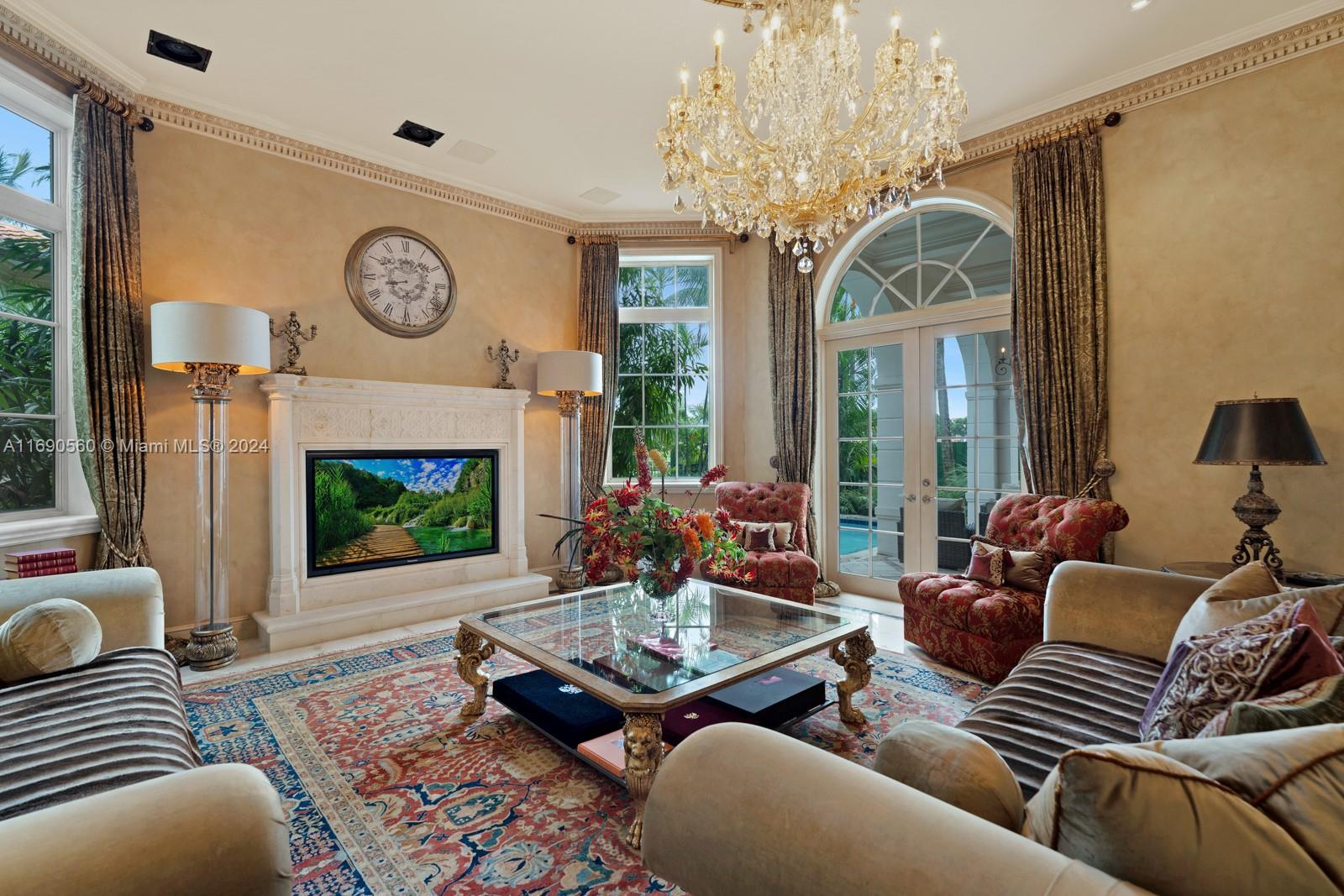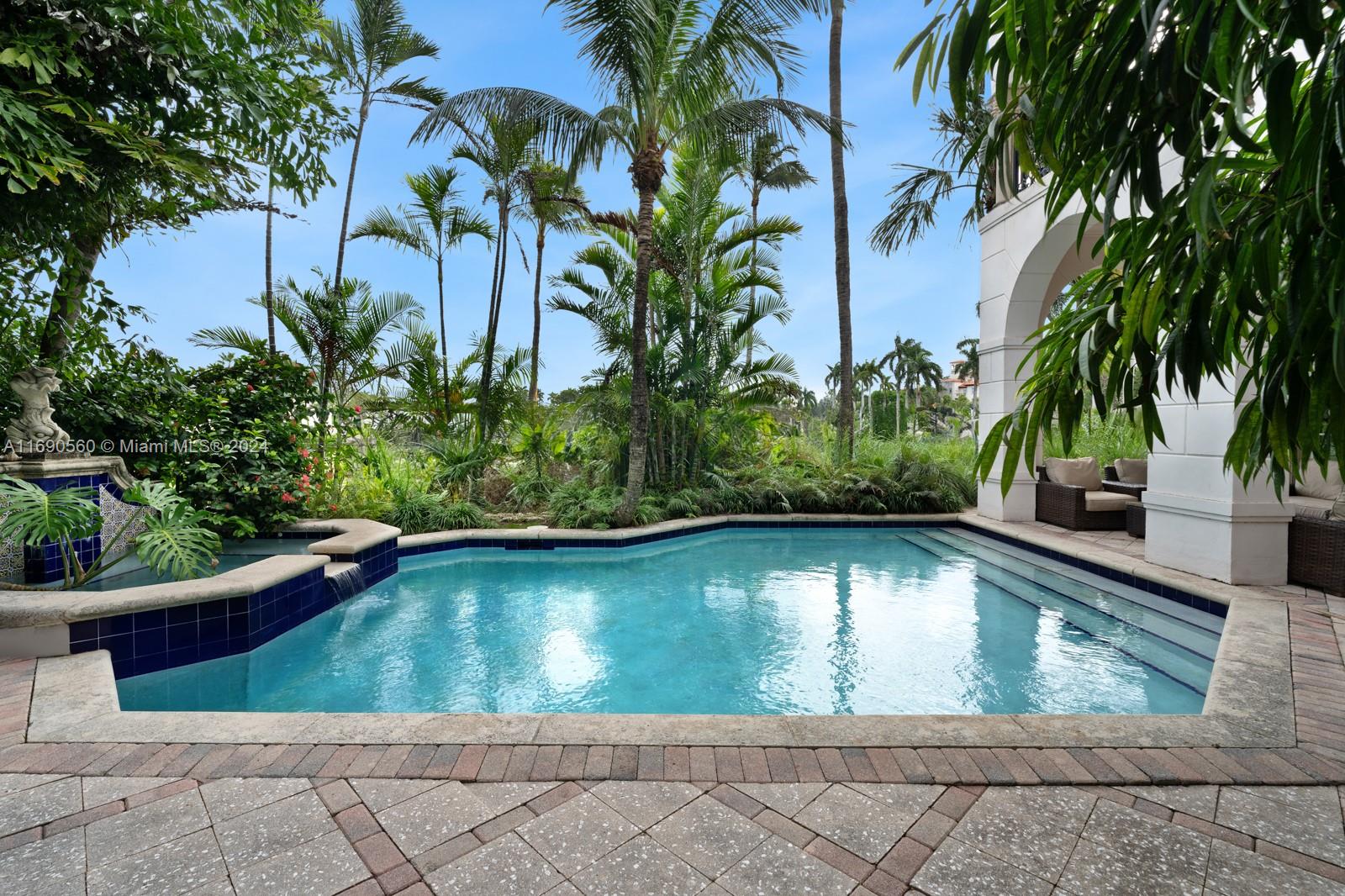 Welcome to your exclusive sanctuary on Fisher Island! Surrounded by lush tropical gardens, this home offers a serene escape into resort-style living. Enter into to a grand, light-filled space where sophisticated design meets comfort, highlighted by elegant crown moldings, and polished marble floors. An airy flow carries you through arched doorways into the inviting family room, where a beautiful fireplace and French doors reveal a picturesque poolside view. Outdoors, your private oasis awaits with a sparkling pool, spa, and expansive coastal views that capture the essence of relaxed, refined living. Spanning approximately 7,137 sq ft, with 6 bedrooms and 6.5 bathrooms, this residence embodies the ultimate island lifestyle.