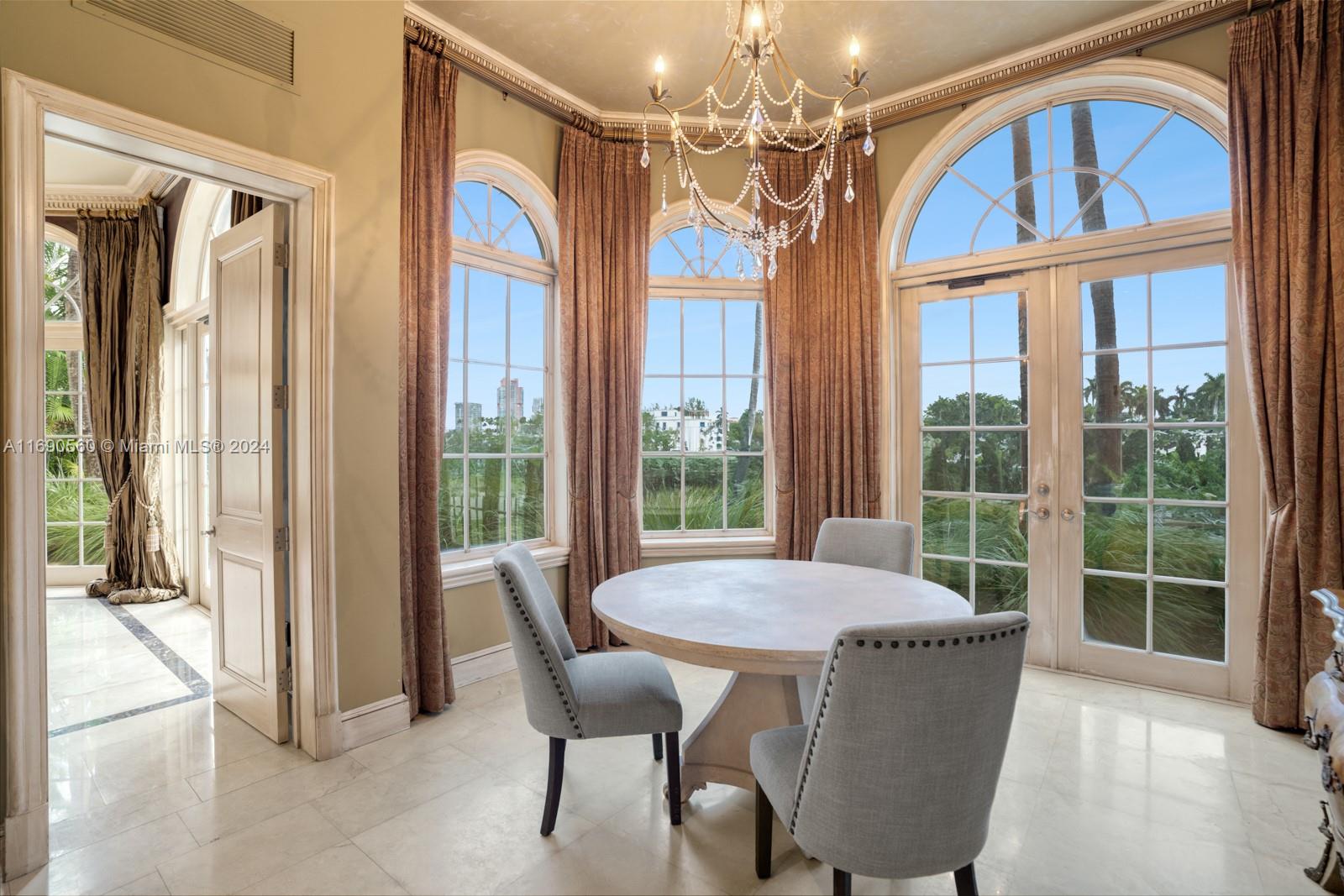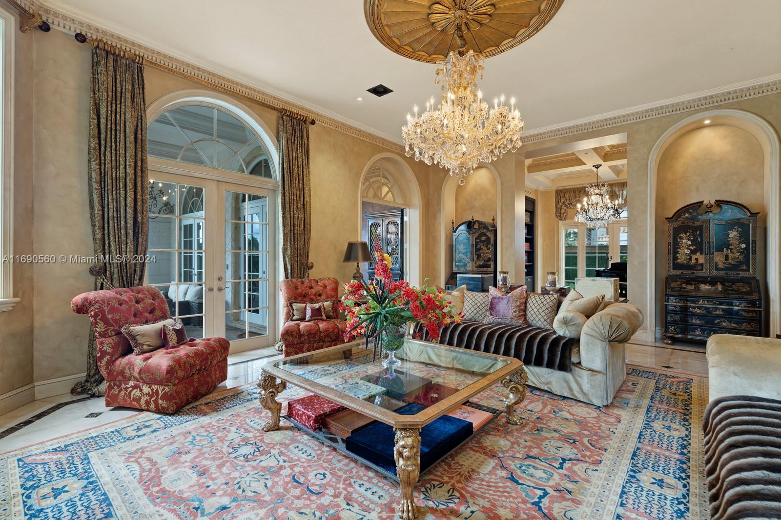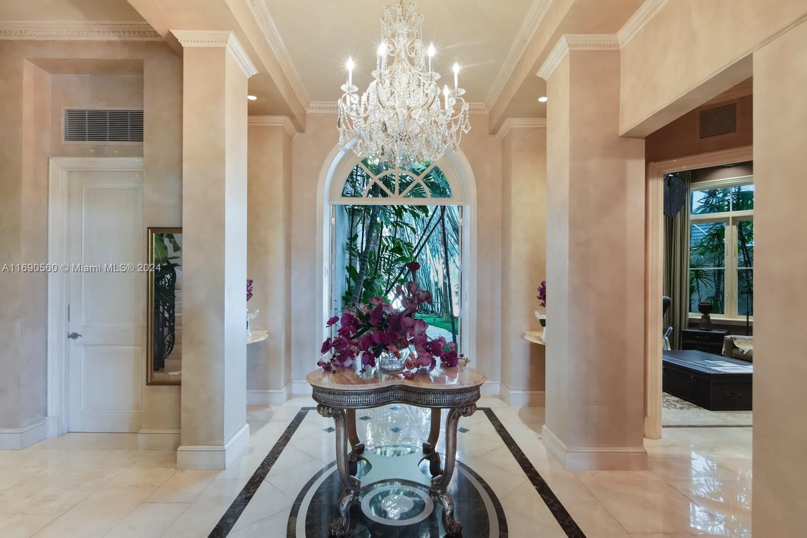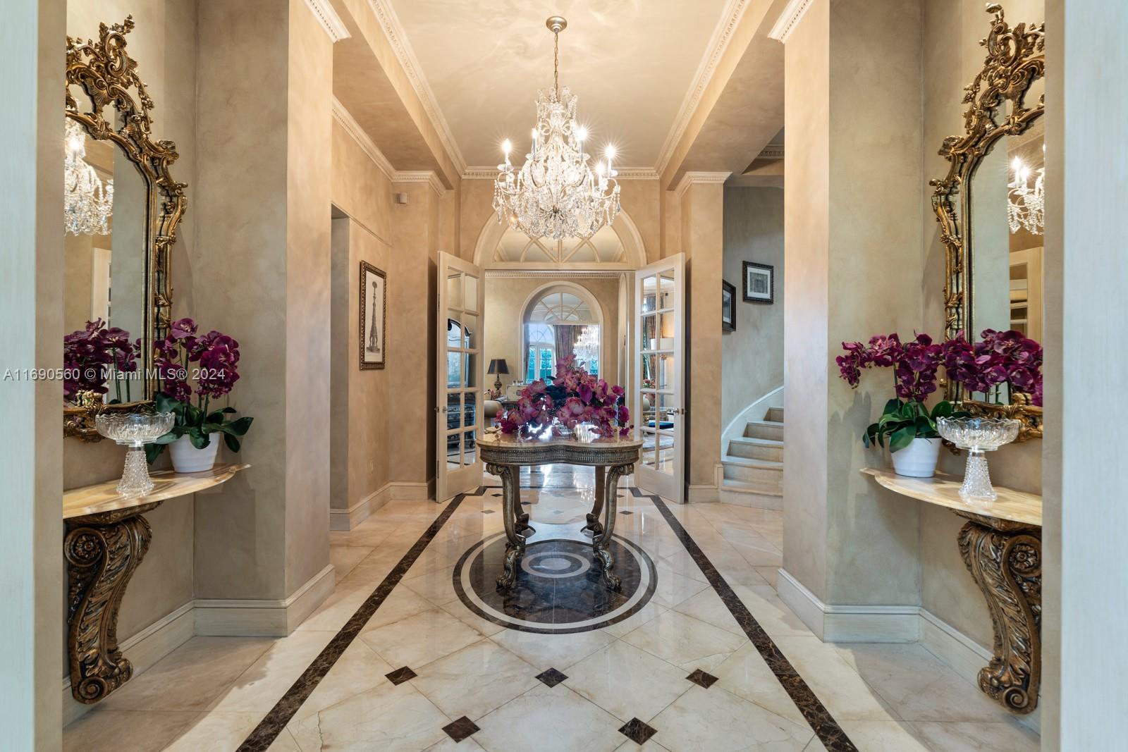 Welcome to your exclusive sanctuary on Fisher Island! Surrounded by lush tropical gardens, this home offers a serene escape into resort-style living. Enter into to a grand, light-filled space where sophisticated design meets comfort, highlighted by elegant crown moldings, and polished marble floors. An airy flow carries you through arched doorways into the inviting family room, where a beautiful fireplace and French doors reveal a picturesque poolside view. Outdoors, your private oasis awaits with a sparkling pool, spa, and expansive coastal views that capture the essence of relaxed, refined living. Spanning approximately 7,137 sq ft, with 6 bedrooms and 6.5 bathrooms, this residence embodies the ultimate island lifestyle.