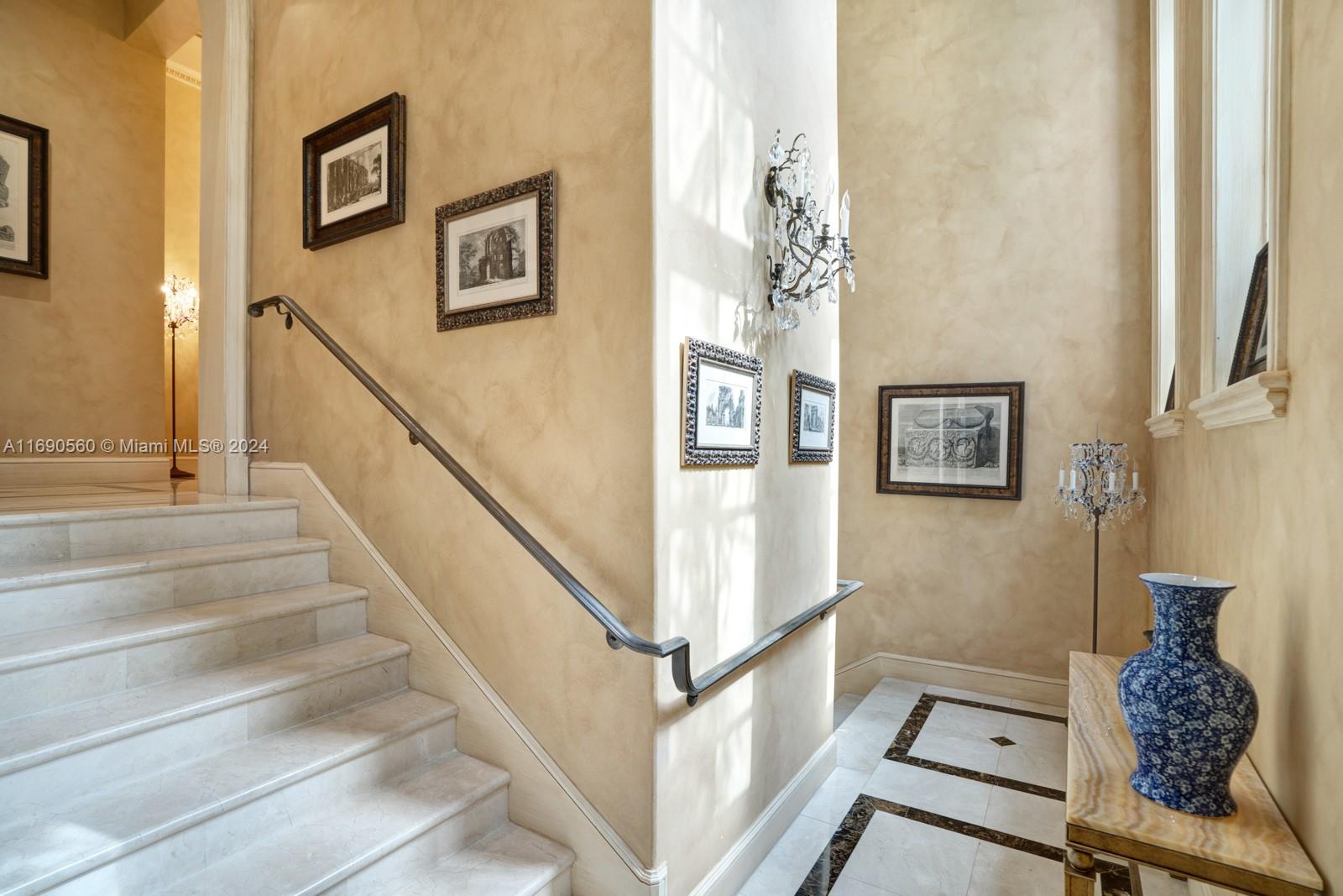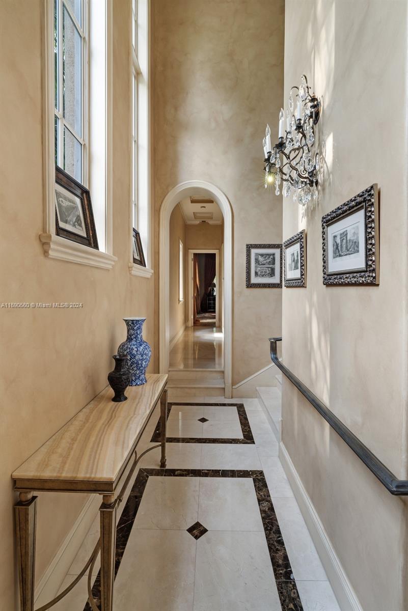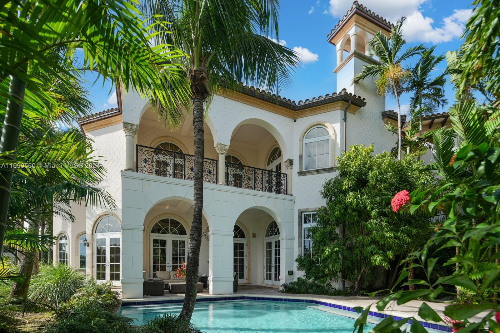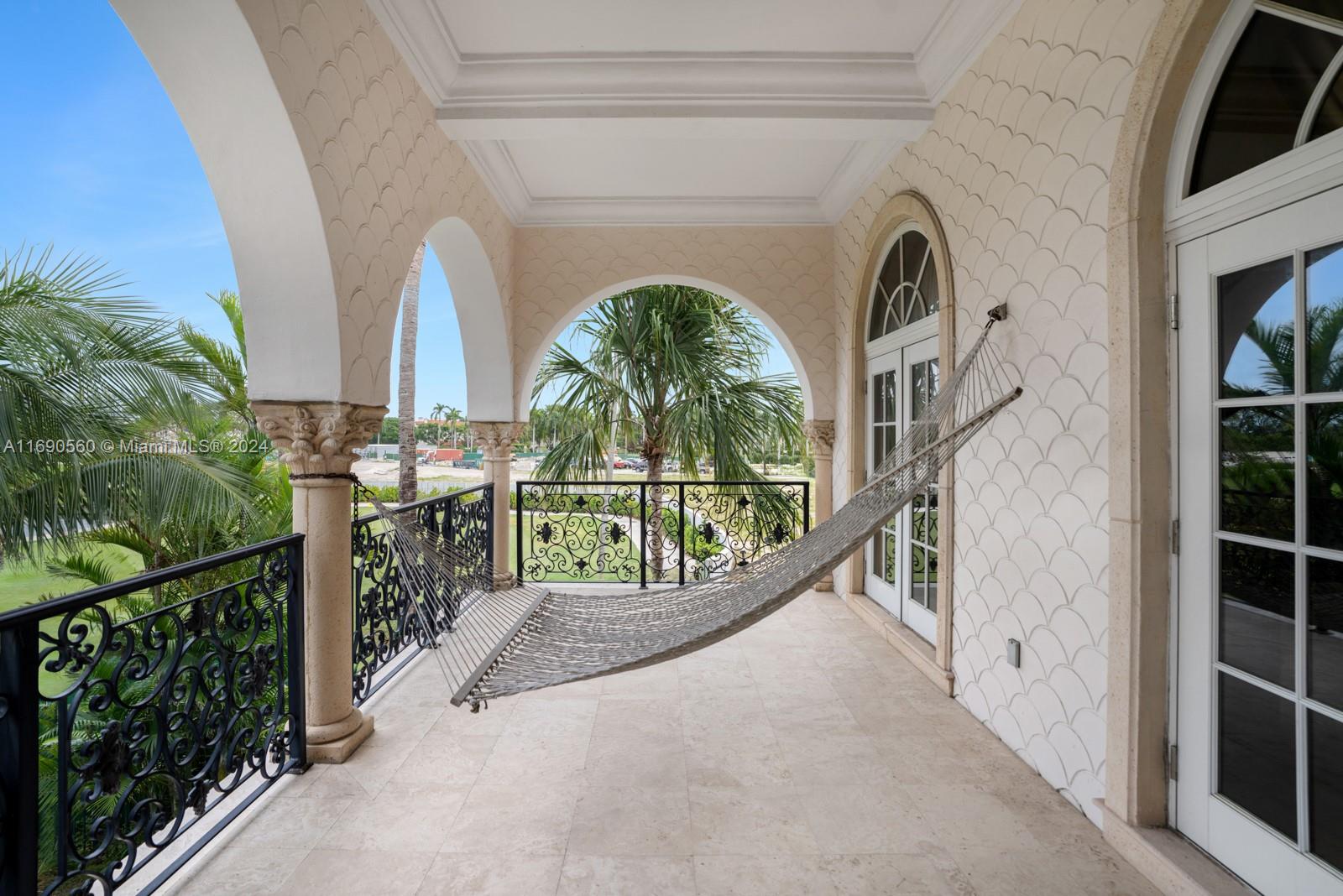 Welcome to your exclusive sanctuary on Fisher Island! Surrounded by lush tropical gardens, this home offers a serene escape into resort-style living. Enter into to a grand, light-filled space where sophisticated design meets comfort, highlighted by elegant crown moldings, and polished marble floors. An airy flow carries you through arched doorways into the inviting family room, where a beautiful fireplace and French doors reveal a picturesque poolside view. Outdoors, your private oasis awaits with a sparkling pool, spa, and expansive coastal views that capture the essence of relaxed, refined living. Spanning approximately 7,137 sq ft, with 6 bedrooms and 6.5 bathrooms, this residence embodies the ultimate island lifestyle.