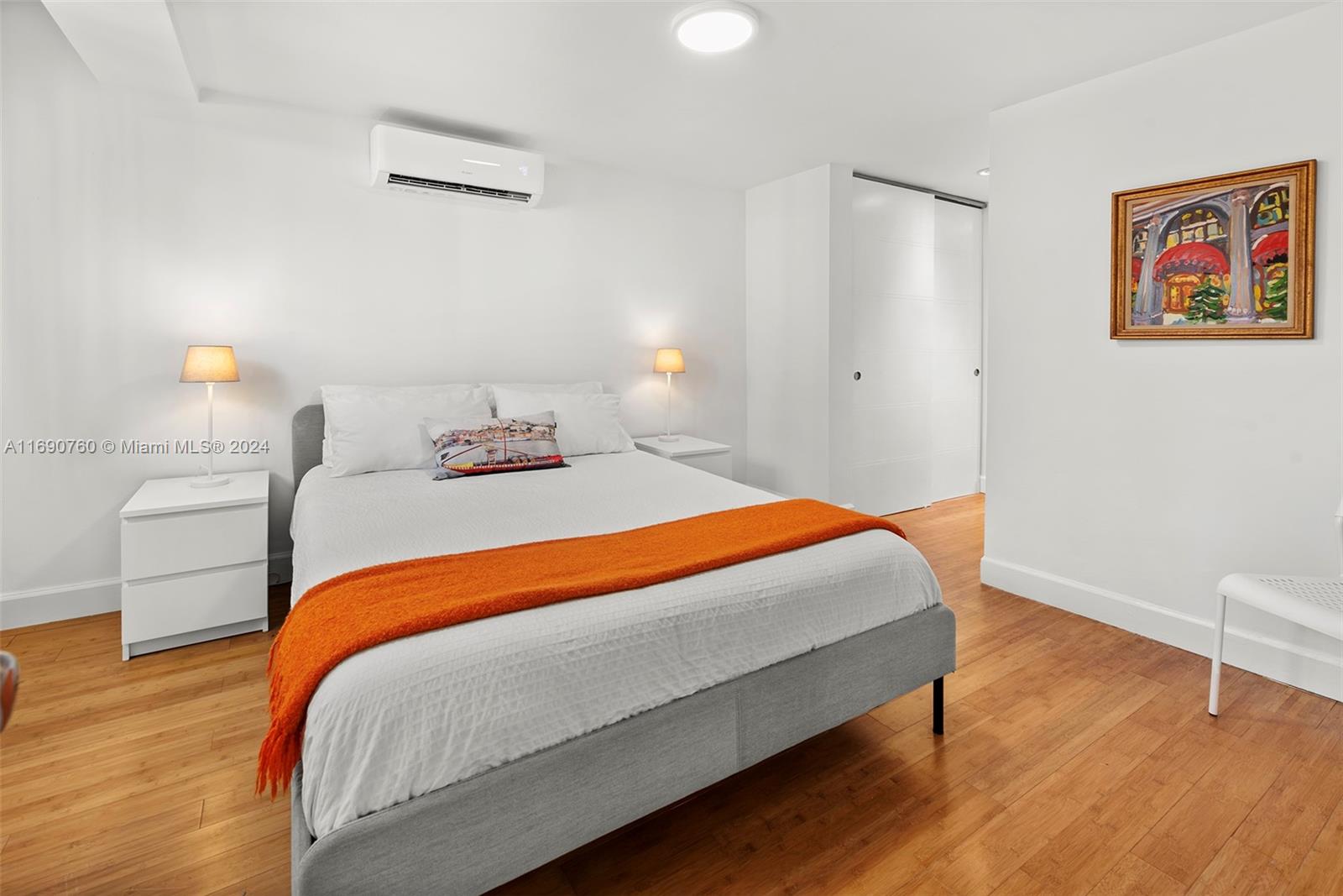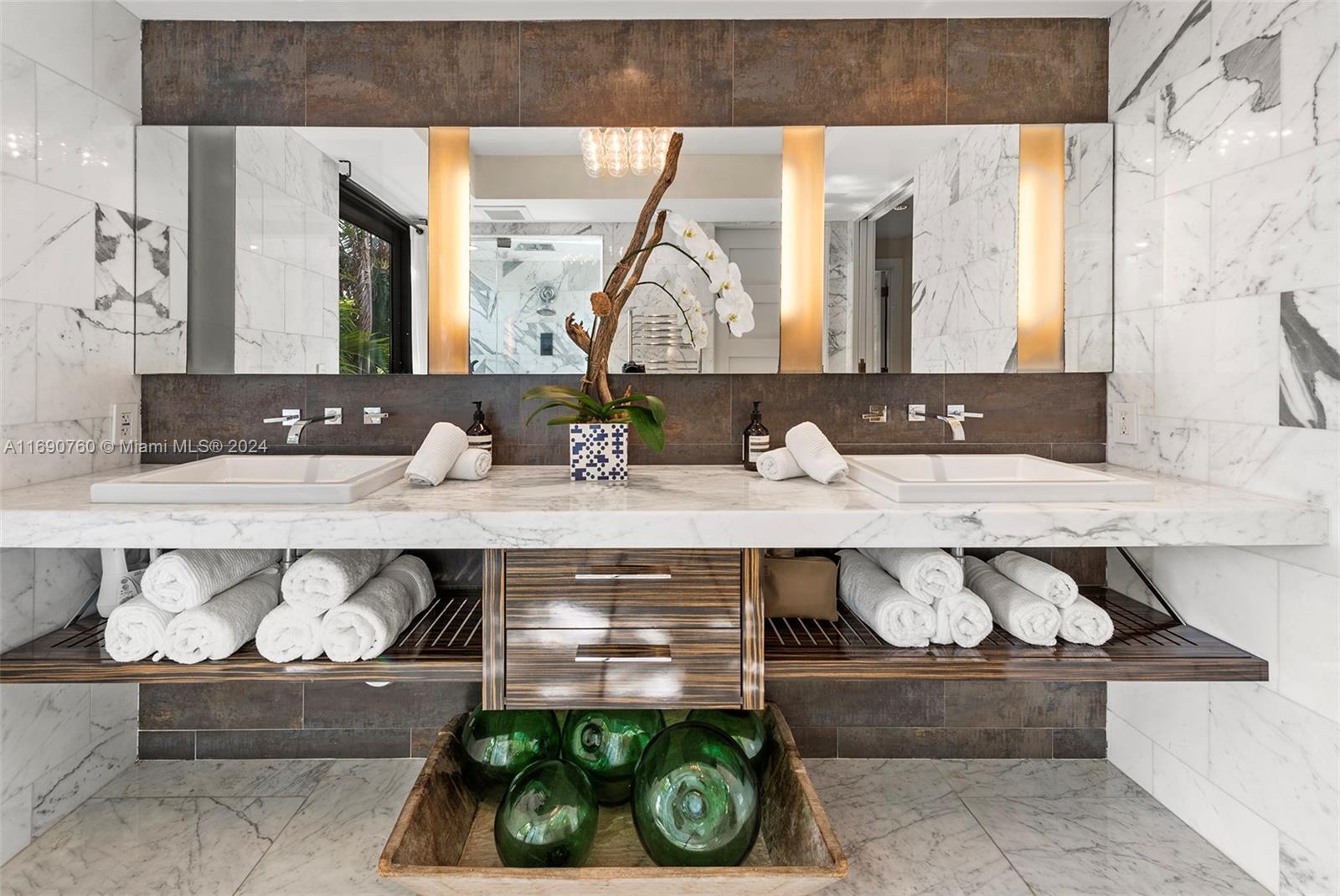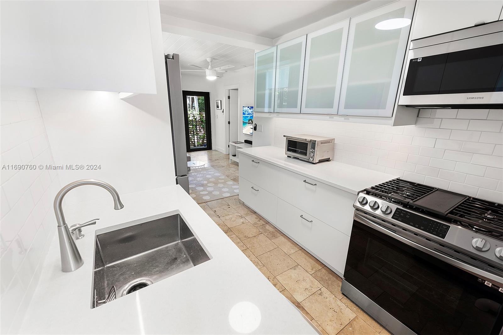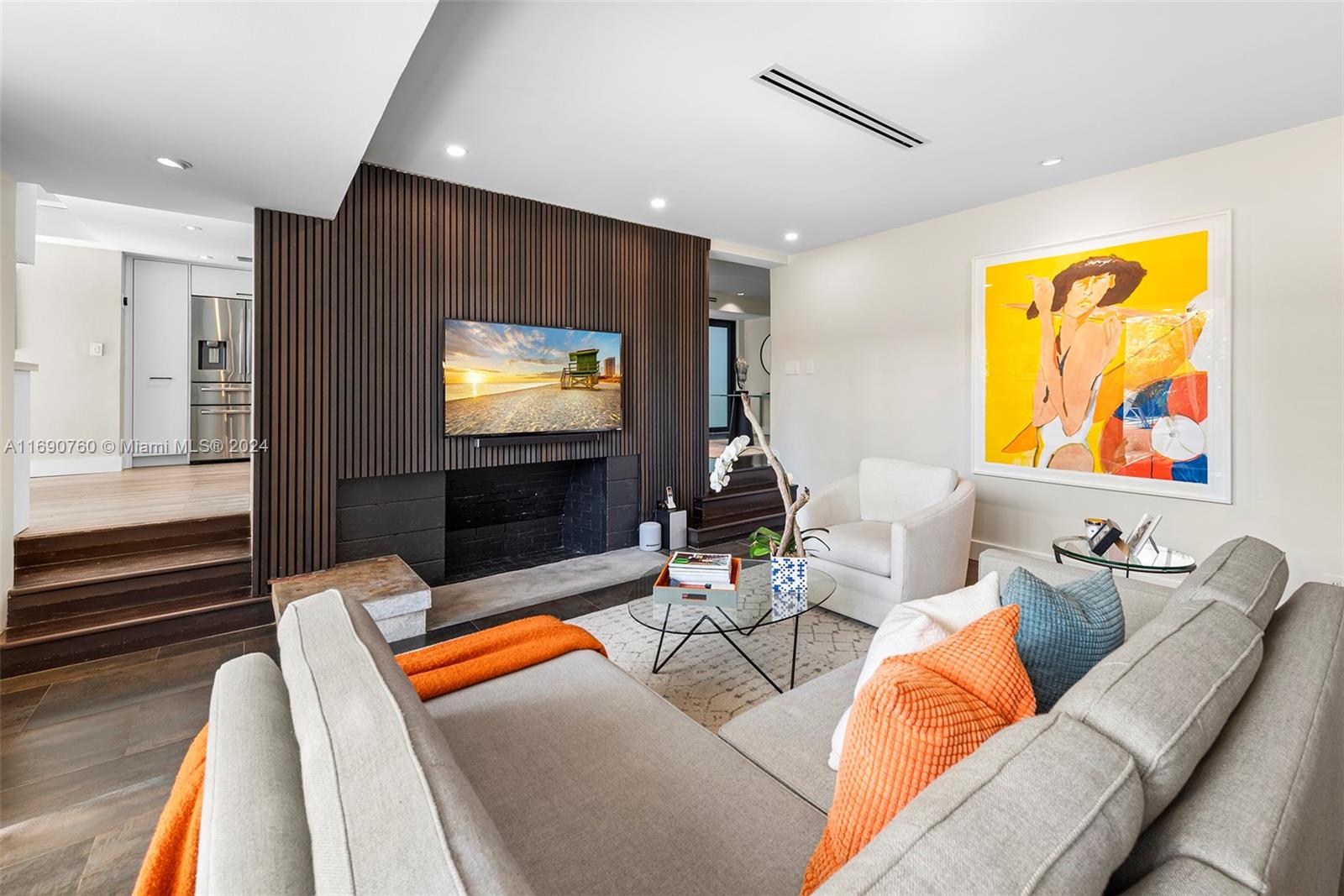 Impeccably crafted, zen-chic home built by a Frank Lloyd Wright protégé and upgraded by Nuhouse Design to amplify the quintessential Miami Beach lifestyle. An expansive entry and open staircase set the stage for the sophisticated interior. Spanning over 2,400 SF of refined living space, the main house encompasses a gourmet kitchen, a modern wood-paneled living room, 3 designer-quality baths and 3 generous bedrooms -including a decadent, spa-like primary ensuite with a spacious walk-in closet. The detached guest house (1 bed/1 bath) adds an additional 600 SF of privacy for guests, nanny or even an income producing tenant. Low-maintenance, landscaped grounds include a large, gated carpark for multiple cars, a sun-drenched pool+spa, and a tropical palm-shaded courtyard for alfresco dining.