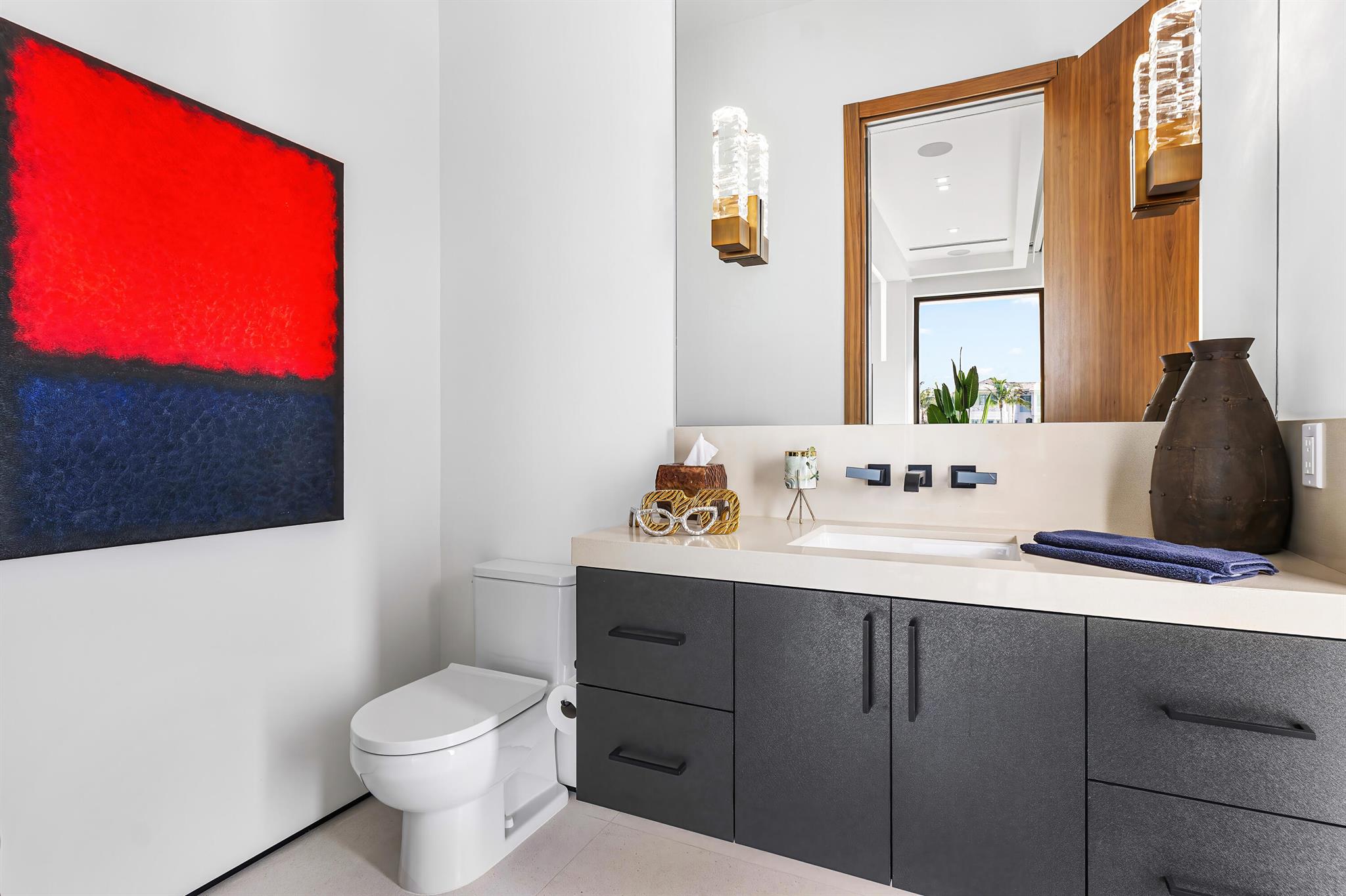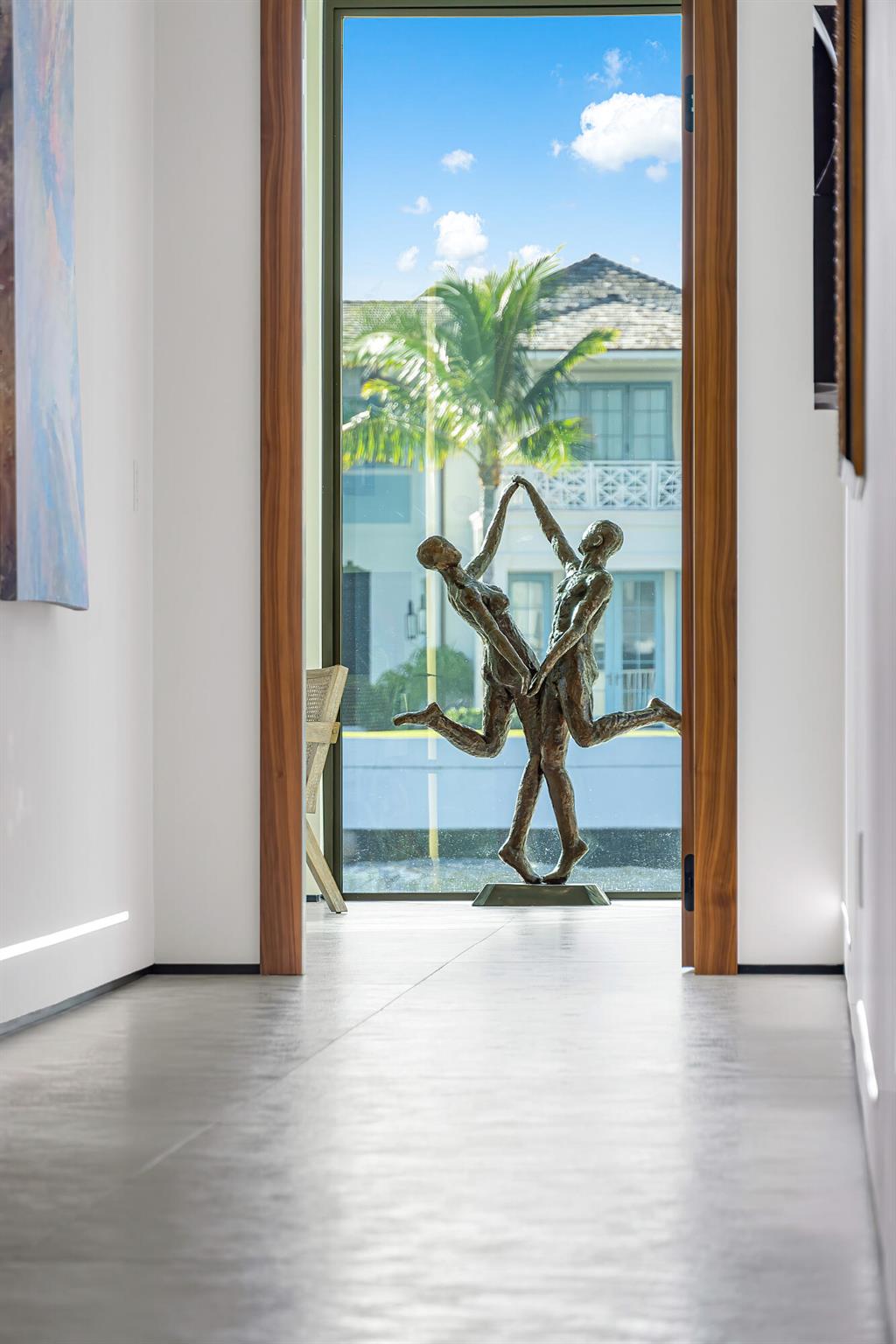 Introducing 1801 Spanish River Road - A Modern Seaside Masterpiece on the Intracoastal. This stunning, single-story estate combines sleek design with waterfront luxury, offering 109 feet of prime water frontage and sweeping views of Boca Raton's exclusive Intracoastal waterways. Step through the private, gated courtyard over a bridge flanked by serene reflecting ponds and arrive at a masterpiece encased in glass. The residence features sophisticated design elements throughout, including a grand 10-foot-tall pivot entry door, soaring ceilings, and a transparent 168-bottle wine wall. The great room dazzles with a backlit fireplace and a 26-foot-long Eurowall folding door that seamlessly connects indoor and outdoor living on the rear lanai. The custom Poggenpohl chef's kitchen
