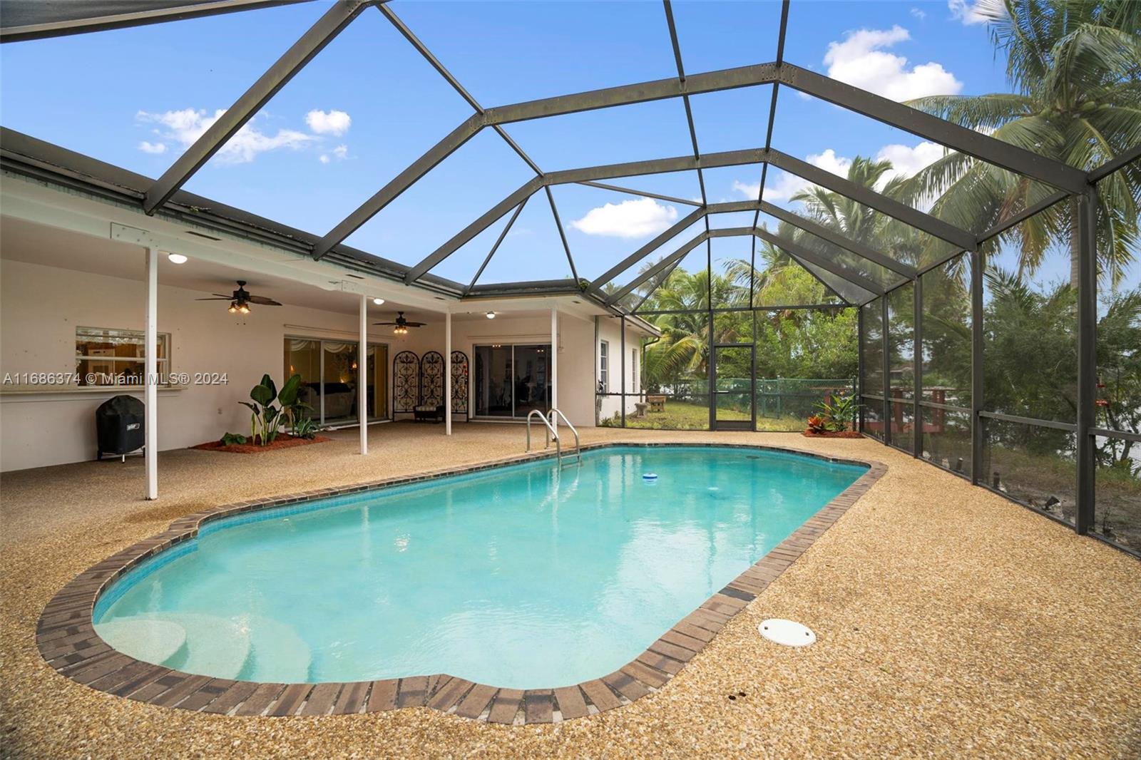 Paradise awaits! High demand unique Weston 4/3 lake-front pool home (with 4, 738 Total SF) features a rare Indoor Atrium with Fountain and Tropical Garden. Relax and unwind in a beautiful natural setting on panoramic lake with an expanded screened patio and large pool on an oversized 1/3 acre lot. Upgrades include Chef's Kitchen, New Black Glass Panel 3-door Refrigerator, Double Oven, Wood Cabinets, & Reverse Osmosis Water. Large Master Bath has Giant Shower, Bidet, etc.; 8,000 Watt Generator, 9 ceiling fans, Newer A/C, oversize 2-car garage, plus more. A special place to live with Top-Rated Schools, Vibrant Community events, Sport Complexes, Great Shopping, Fine Dining and Easy Access to I75 and Places of Interest. Fish from your own dock at this fantastic home and excellent location!