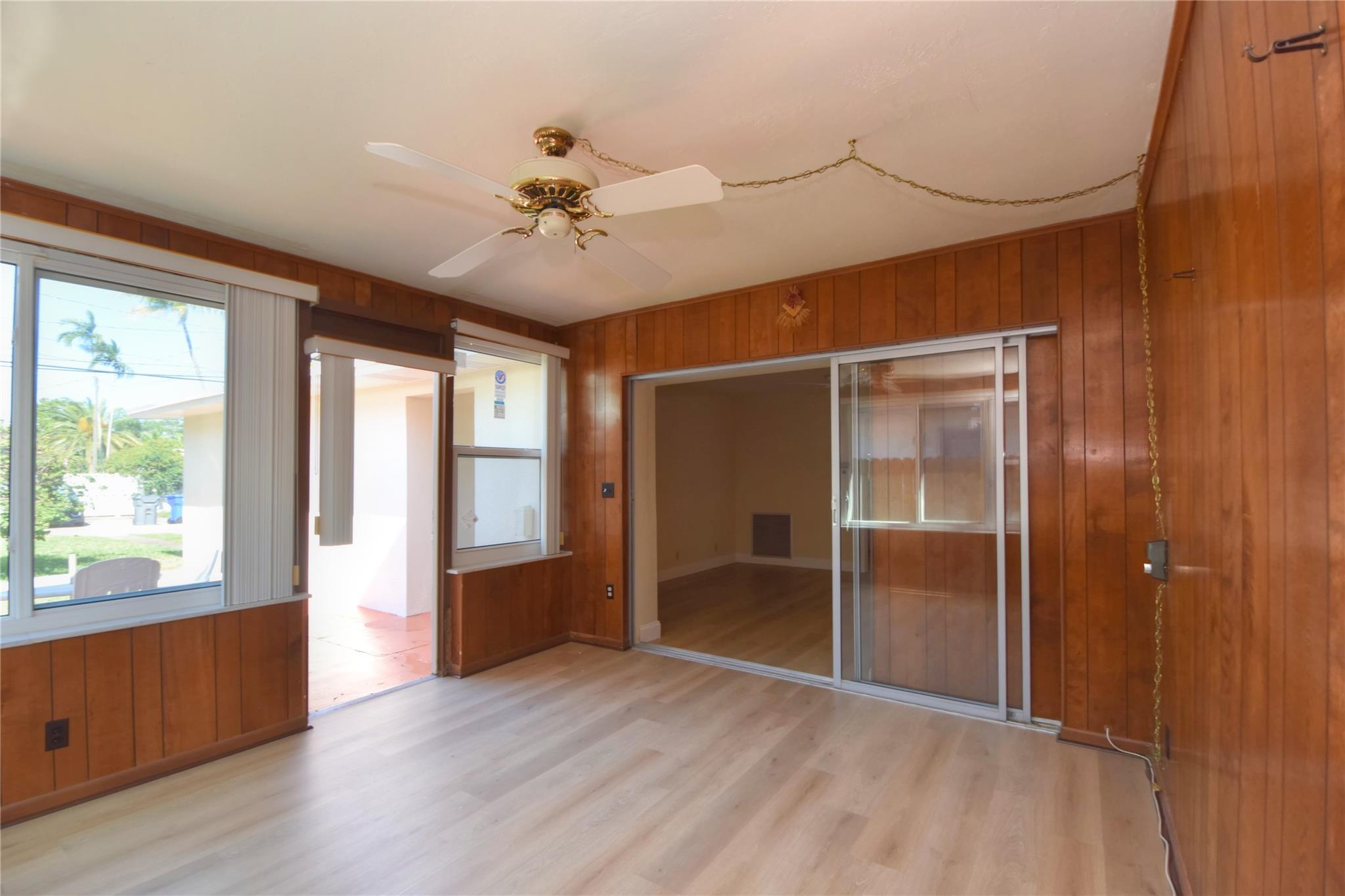 This is a charming home in a wonderful neighborhood in East Hollywood! The spacious home has a split bedroom plan perfect for a primary suite or in-law's quarters. The home has an open floor plan and includes a family room and a wood-paneled den. This is a true sunny Sofla home with lots of windows. The kitchen has plenty of space for a breakfast nook. One of the appealing features of Hollywood is the alley that allows for easy access to the large 2-car garage and ample parking with 2 driveways. This terrific home is nestled on a tree-lined street just a few steps from Jefferson Park and an easy stroll to all the action in downtown. The home features impact glass or shutters. Freshly painted, new flooring & waiting for your personal touches. Today is the day to view this great property.