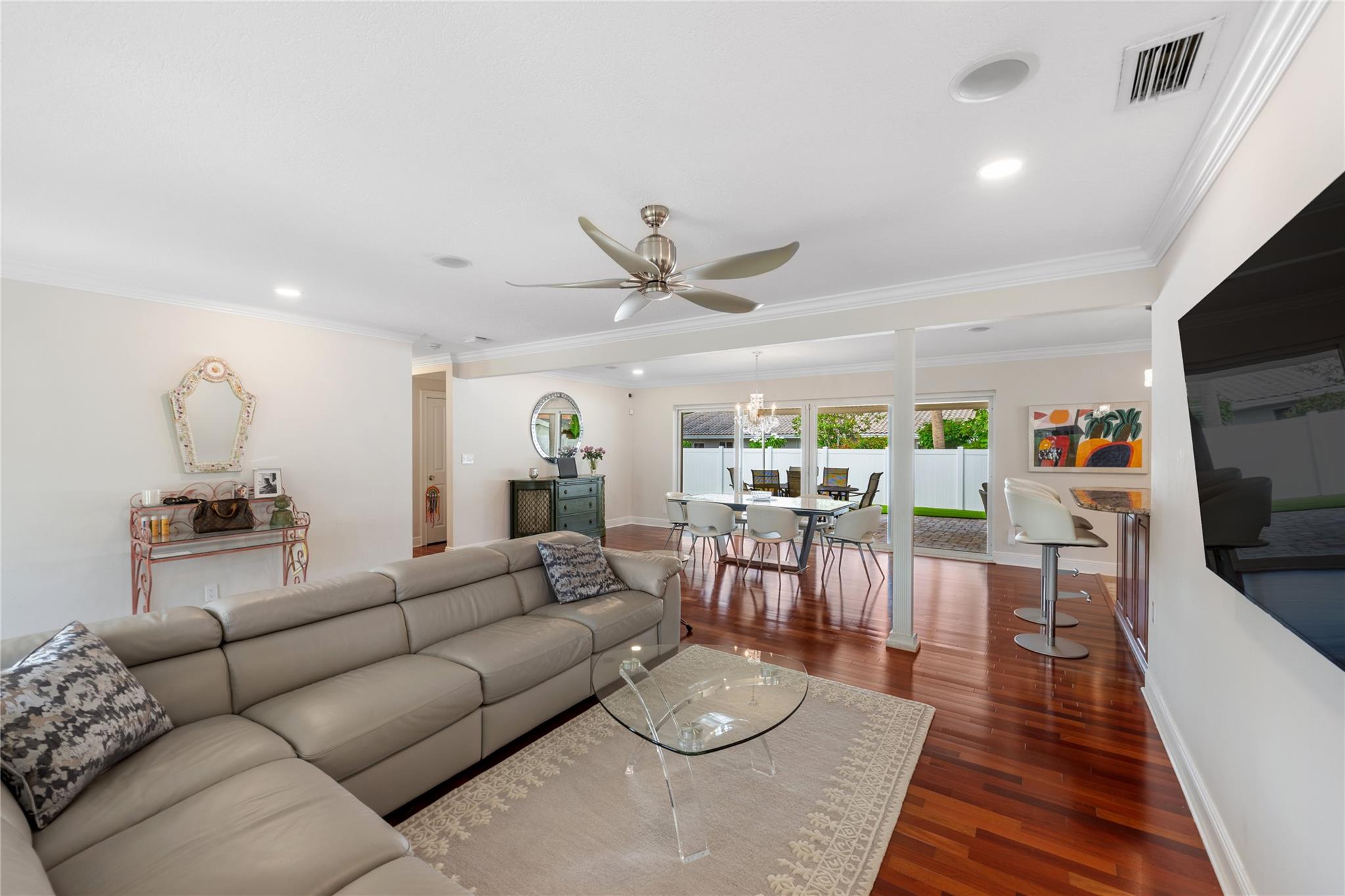 Beautiful home that is pristine, located in the sought after Coral Ridge. This 3 bedroom and 2 bath has Brazilian cherry wood floors throughout. Gourmet kitchen. All new updated bathrooms. The garage was converted to a large family room with Jerusalem flooring. All impact windows and doors. Security system, with cameras throughout the house. Large back yard with salt water heated pool and new fence. Beautiful landscaping very clean and easy to maintain. This is a must see.