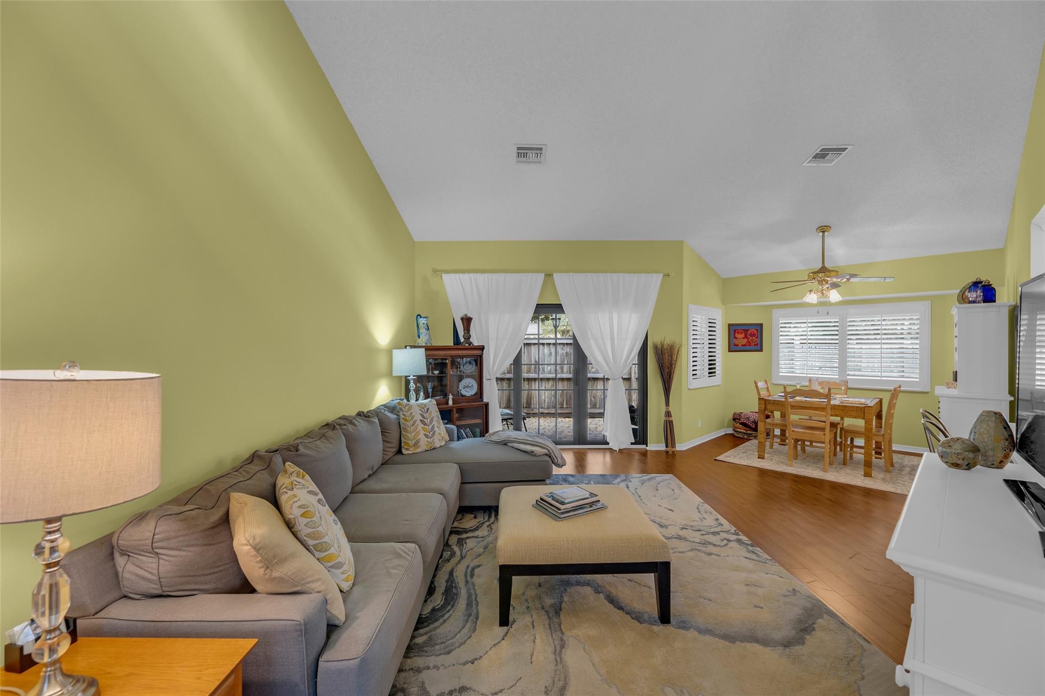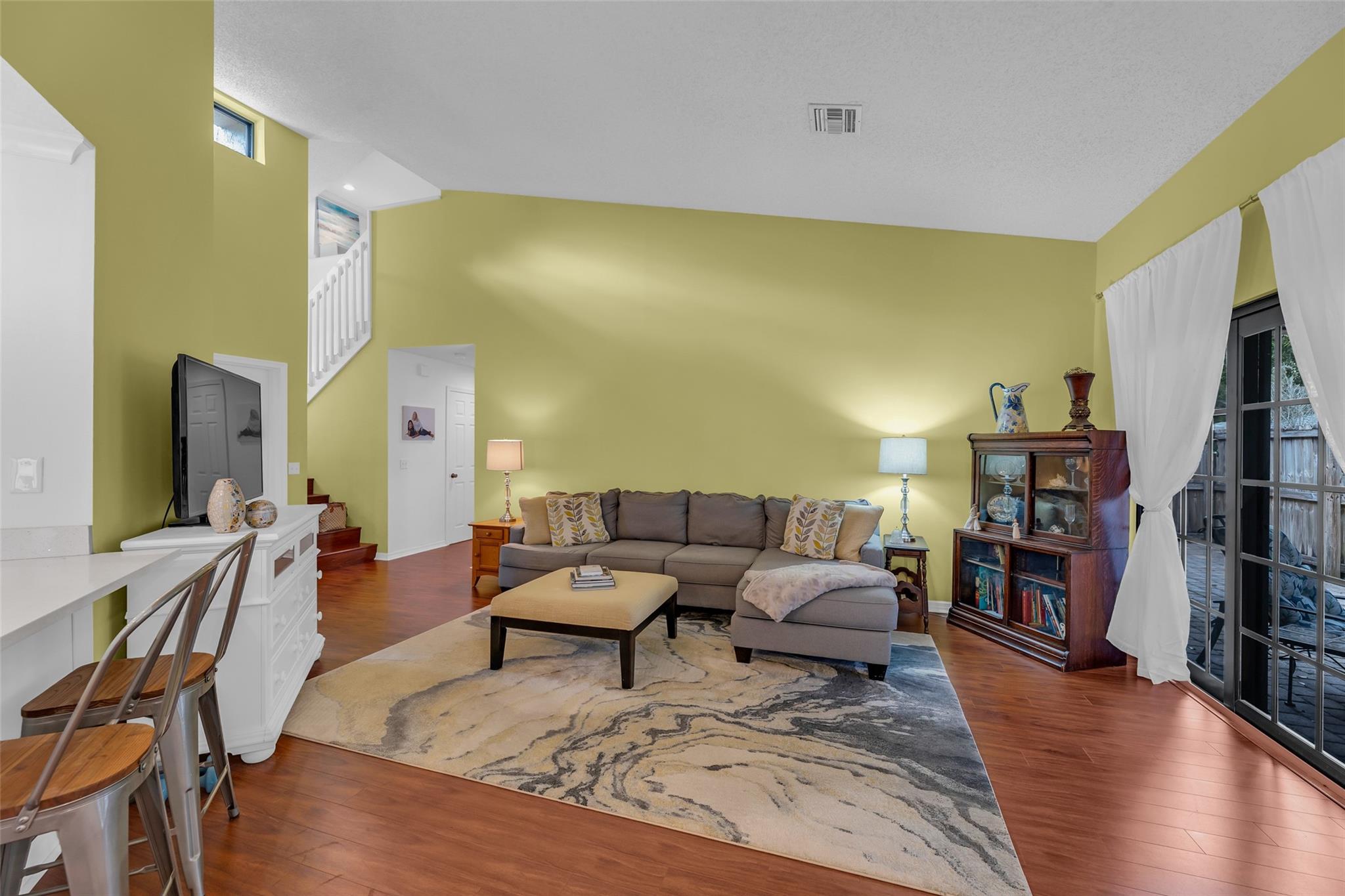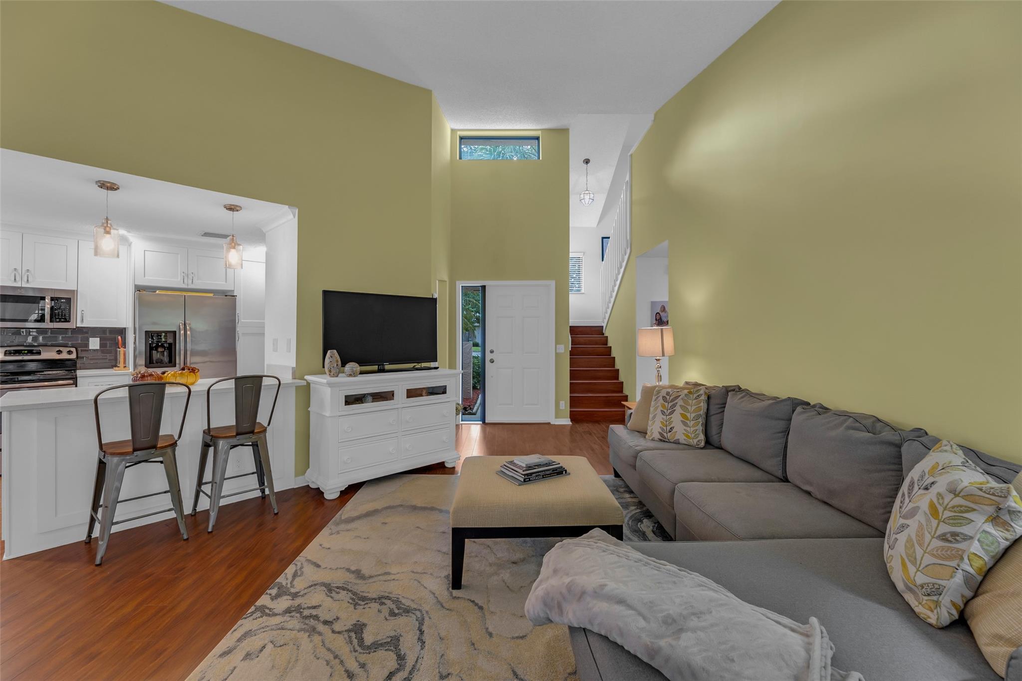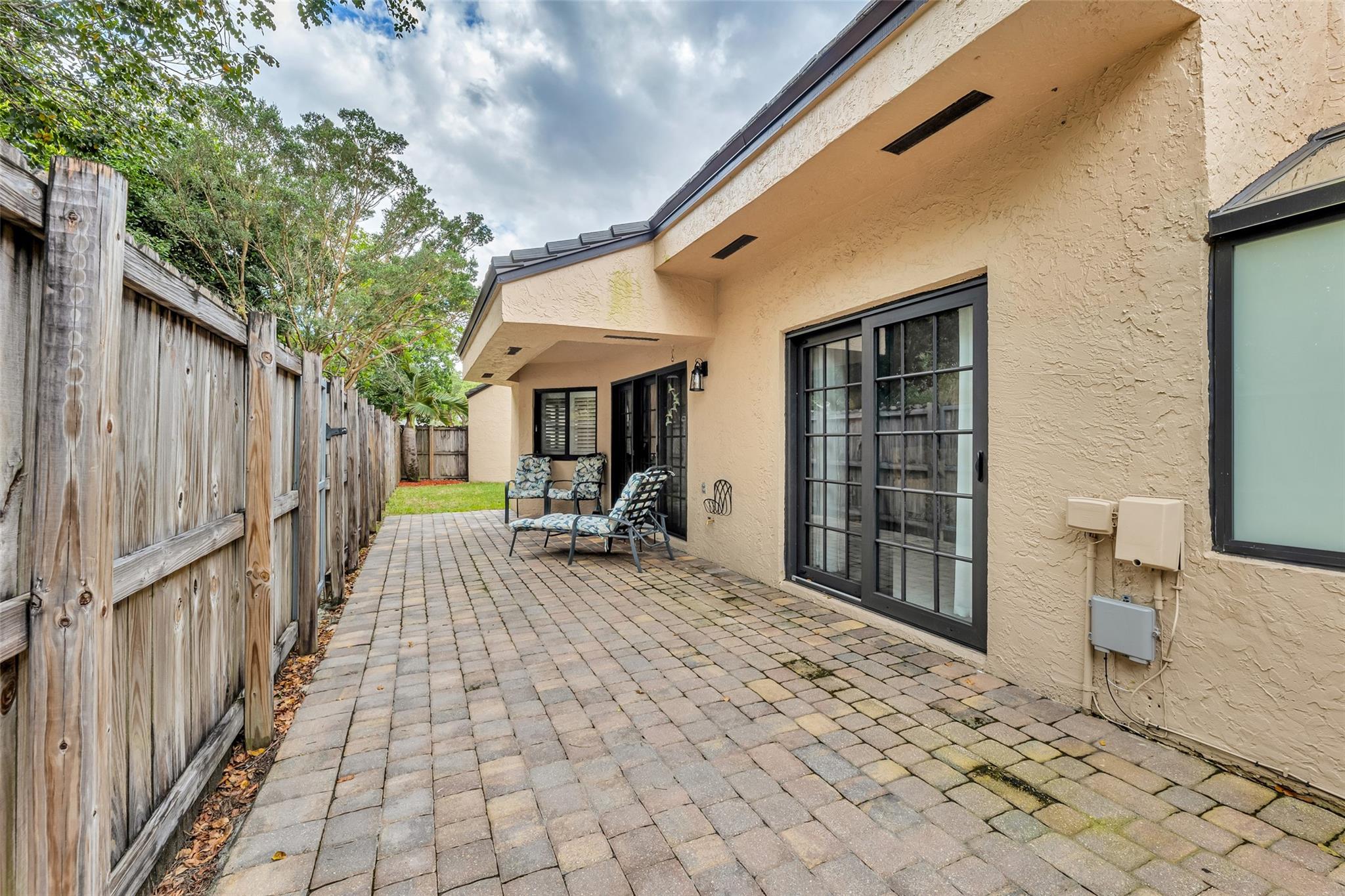 Welcome to Chelsea I. This adorable townhouse has a new eat-in kitchen, impact windows & doors, brand new carpet in bedrooms, laminate flooring throughout the main house, 2024 A/C unit, all new plumbing(no poly pipes), an oversized living room, dining room with bay windows to the yard & a 1 car garage. This home has 2 master bedroom options. Larger master is on the first floor with french doors to the fenced in yard. Second master/open loft area is upstairs. Both masters have walk in closets & lots of natural light. A big bonus is the private fenced in yard with a brick paver patio for outdoor entertaining. Washer & dryer are in the garage, half bathroom off the main hallway, ample storage & vaulted ceilings. Walking distance to Central Park, close to Sawgrass, 595, restaurants & more!