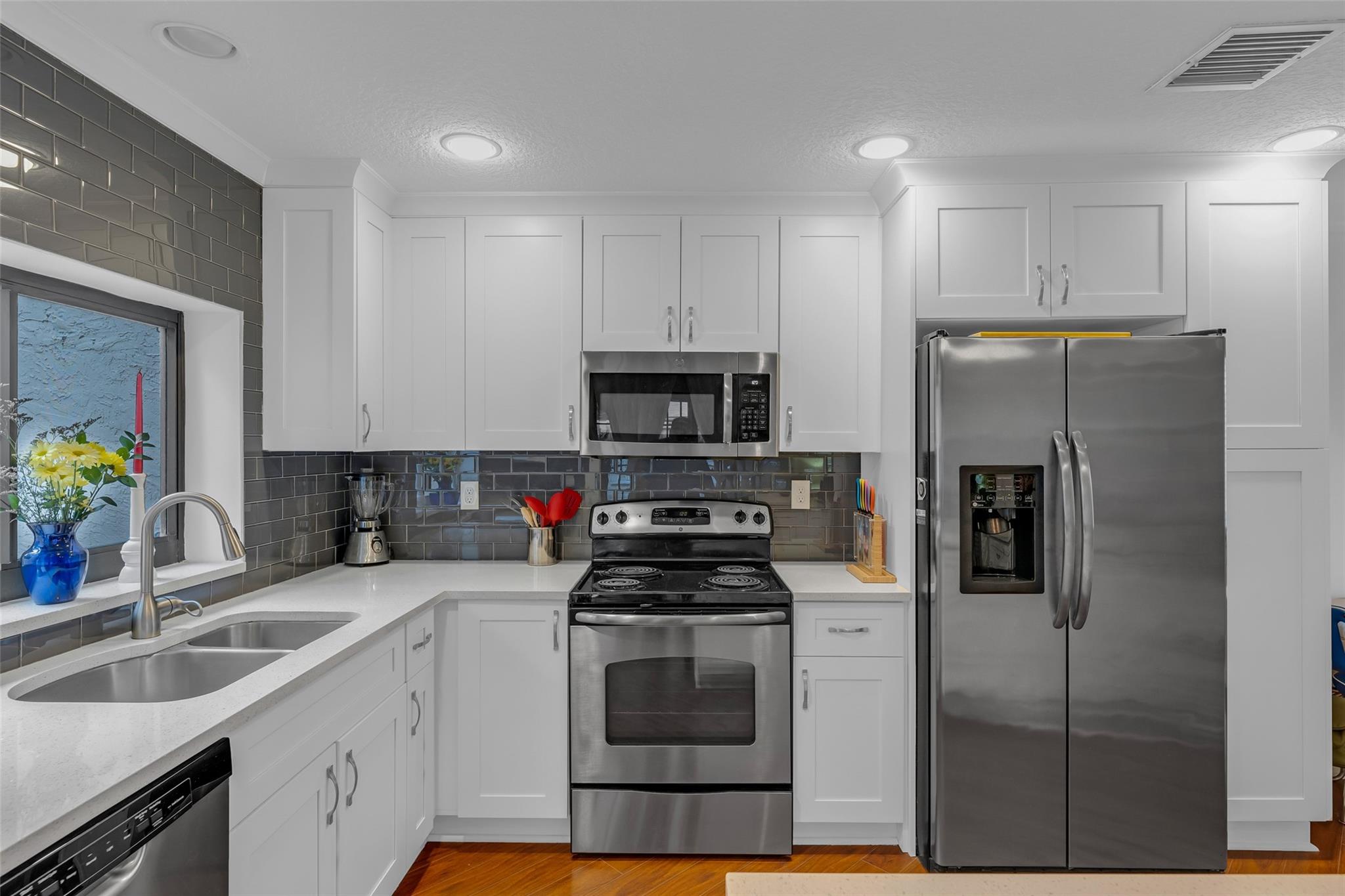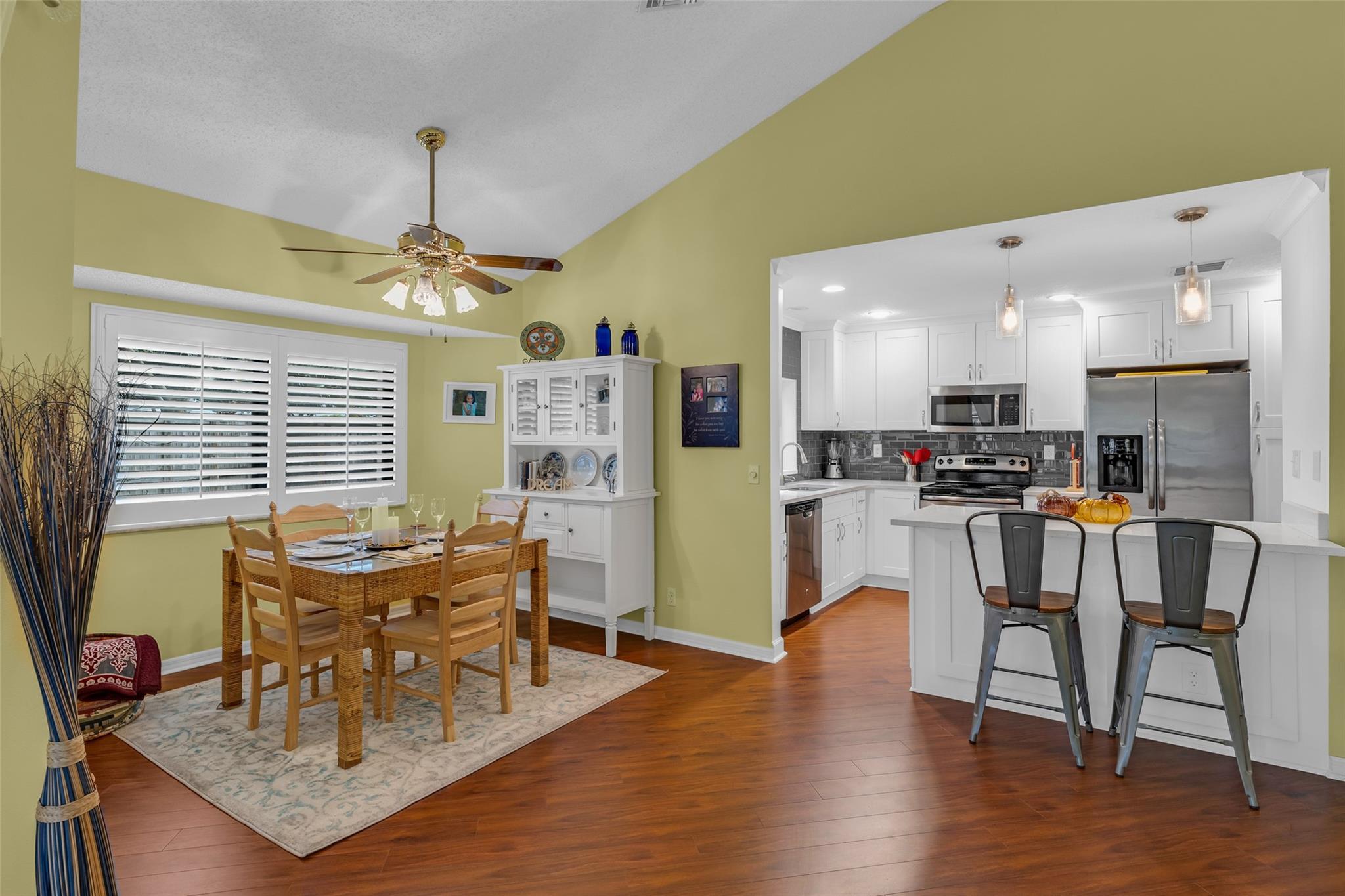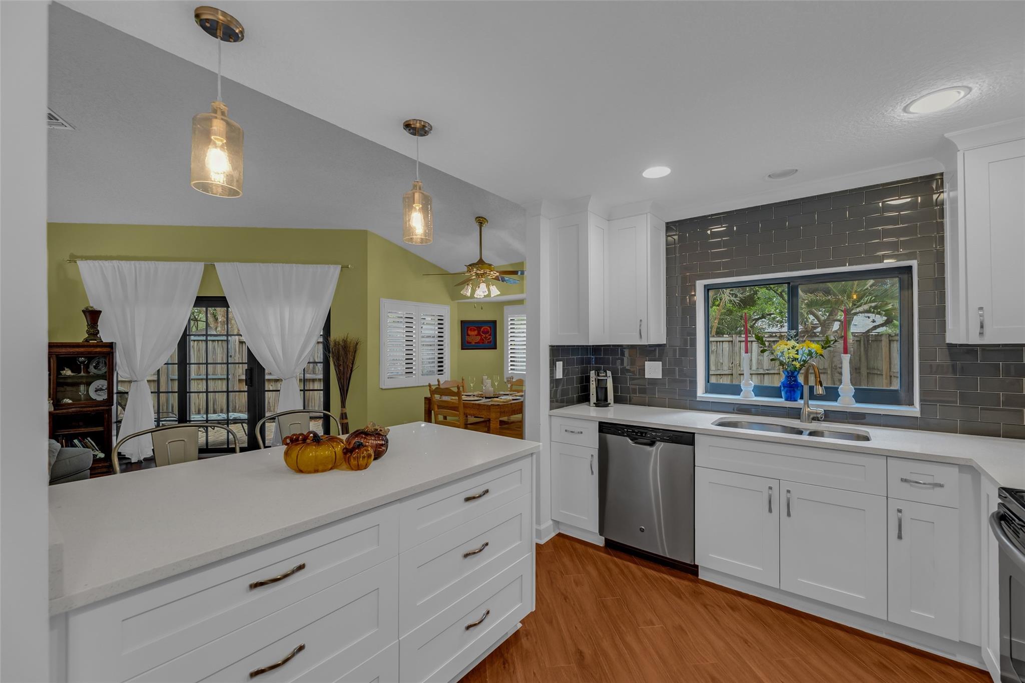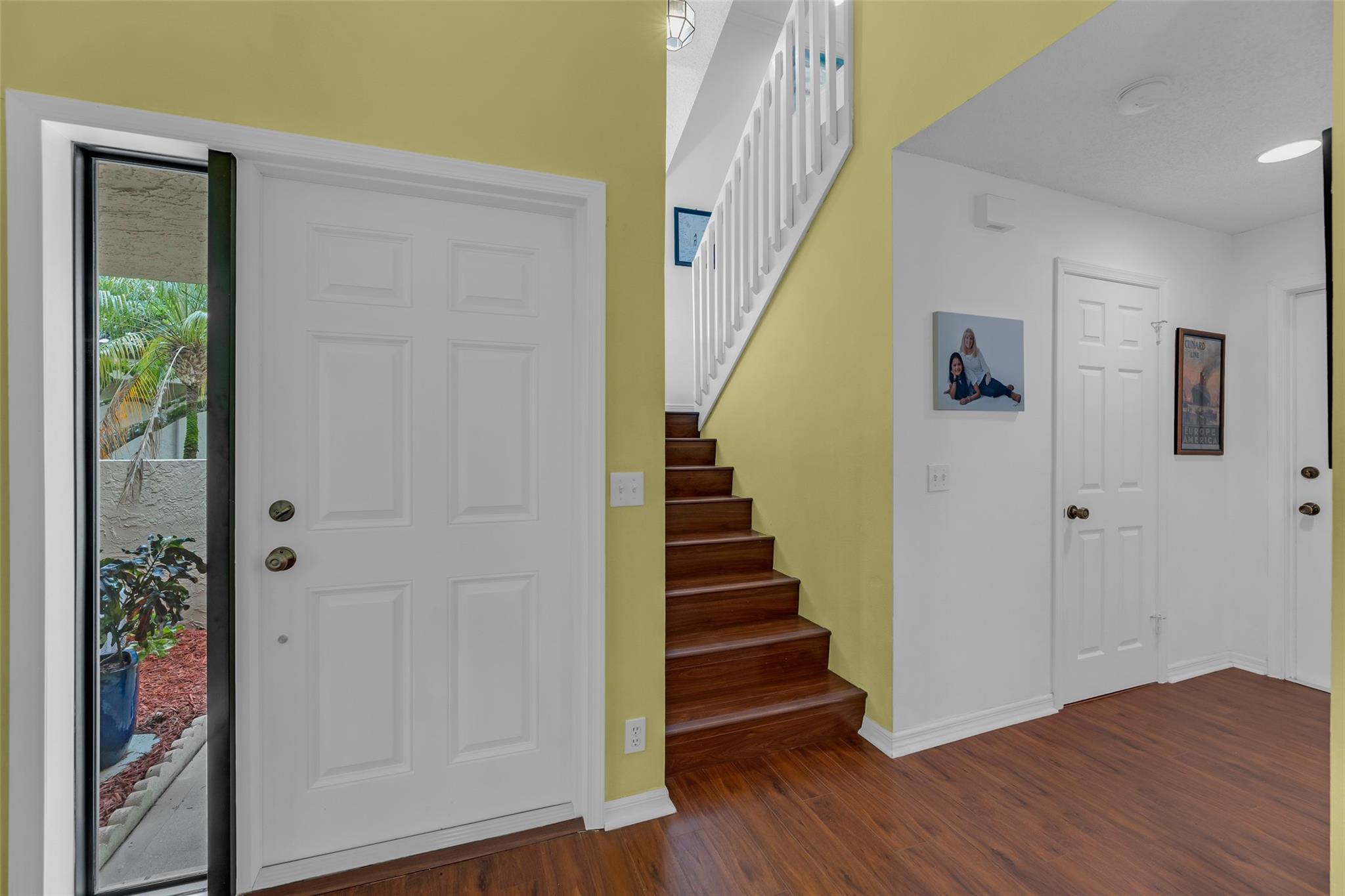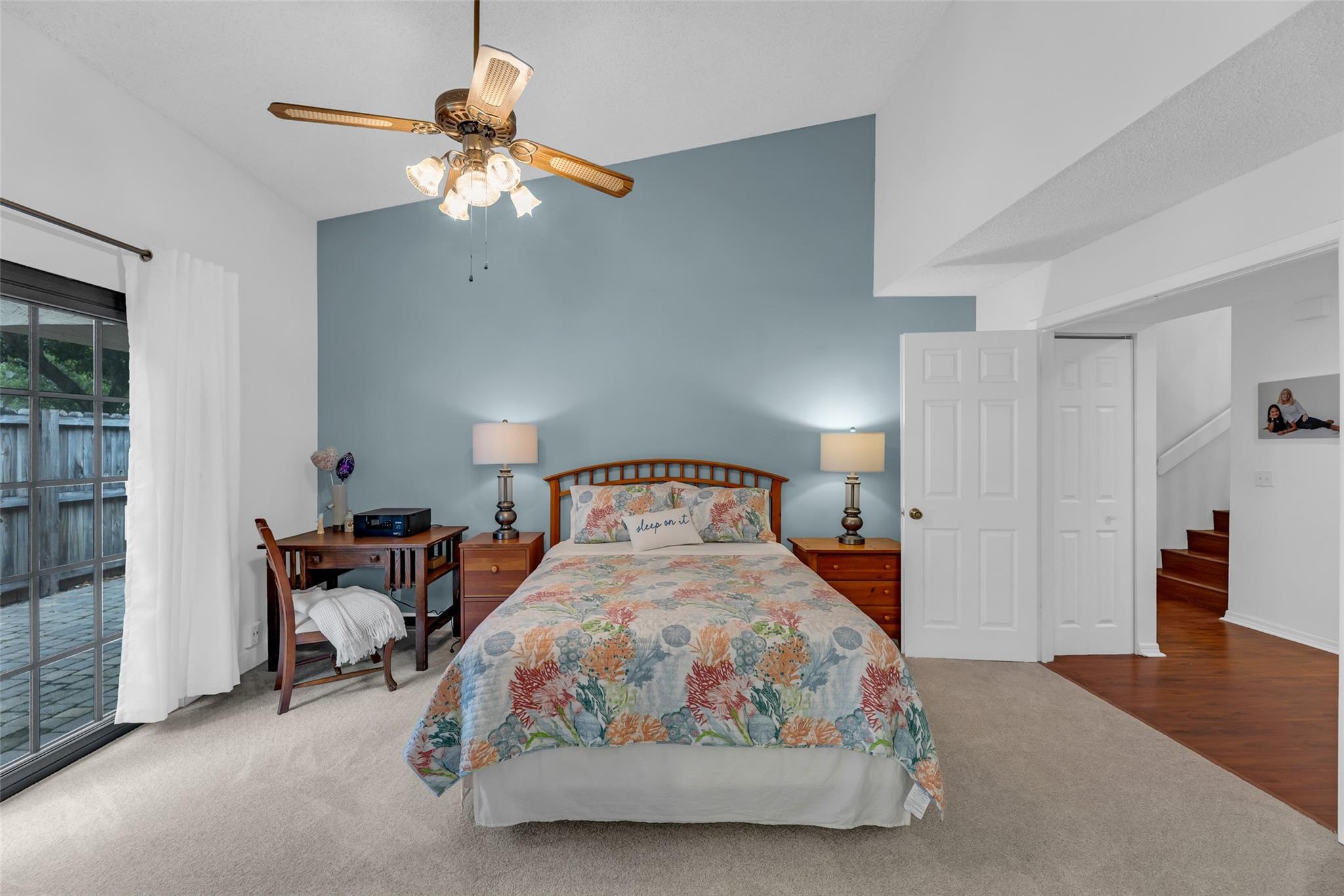 Welcome to Chelsea I. This adorable townhouse has a new eat-in kitchen, impact windows & doors, brand new carpet in bedrooms, laminate flooring throughout the main house, 2024 A/C unit, all new plumbing(no poly pipes), an oversized living room, dining room with bay windows to the yard & a 1 car garage. This home has 2 master bedroom options. Larger master is on the first floor with french doors to the fenced in yard. Second master/open loft area is upstairs. Both masters have walk in closets & lots of natural light. A big bonus is the private fenced in yard with a brick paver patio for outdoor entertaining. Washer & dryer are in the garage, half bathroom off the main hallway, ample storage & vaulted ceilings. Walking distance to Central Park, close to Sawgrass, 595, restaurants & more!