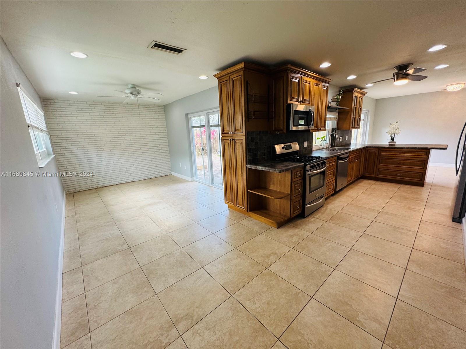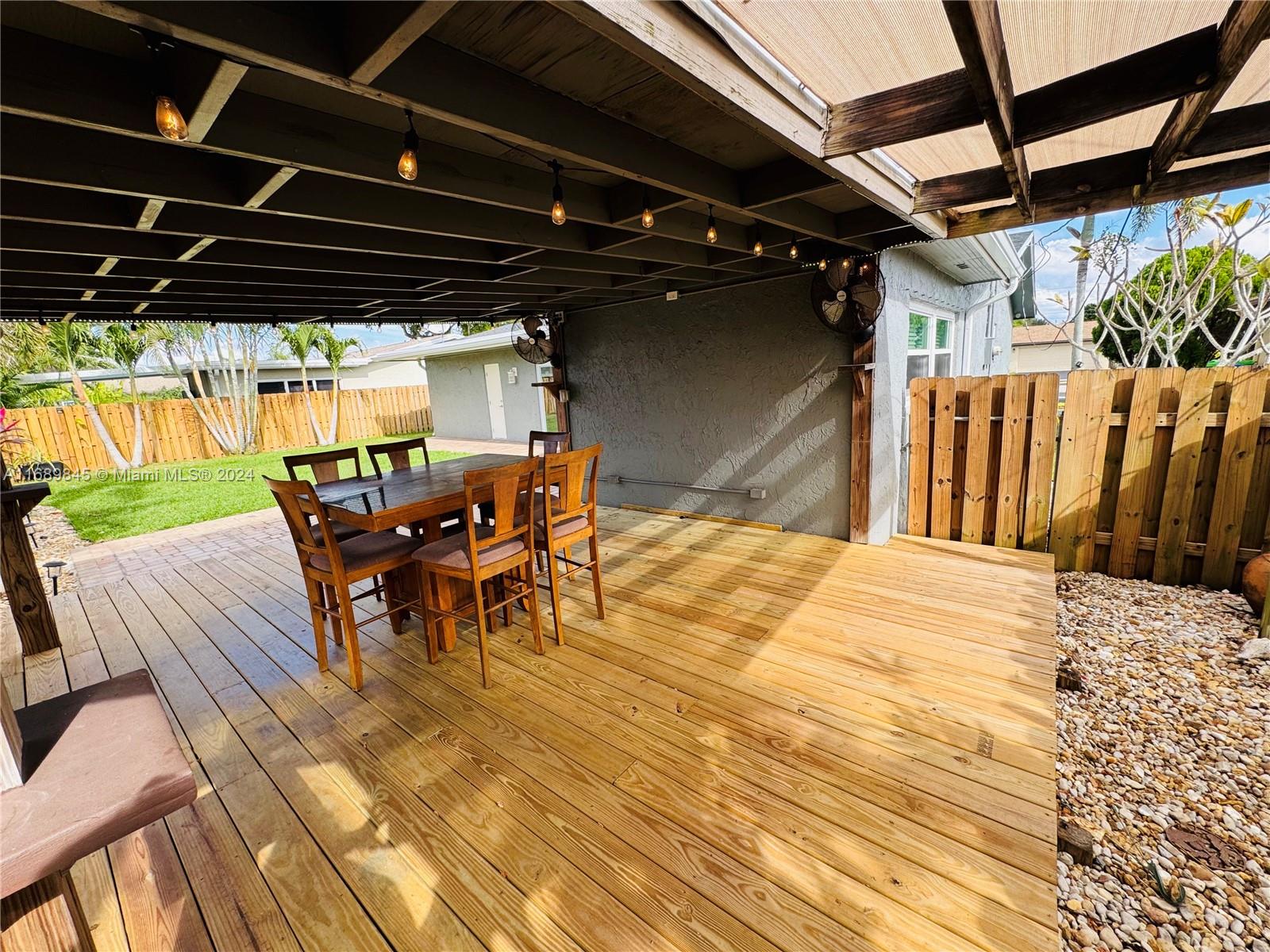 Discover this perfect and affordable home in Sunrise with no HOA! Situated on a quiet street, this home offers easy access to major highways, shopping, schools and dining.With a meticulously maintained backyard with plenty of room for a pool. Covered fully lit wooden deck (deck redone 2024) perfect for entertaining. Recent upgrades include, new laminate flooring in the bedrooms, complete impact windows and doors(2023), brand new roof(November 2024), new water heater ventilation system, new gutters (November 2024), 2015 A/C w/HVAC system replaced(2018),recessed lighting, SS kitchen appliances including new(2022) washer and dryer in the garage along with tons of storage. New(2023) automatic rain-sensing sprinkler system, newer blown attic insulation (2022),wired security camera system.
