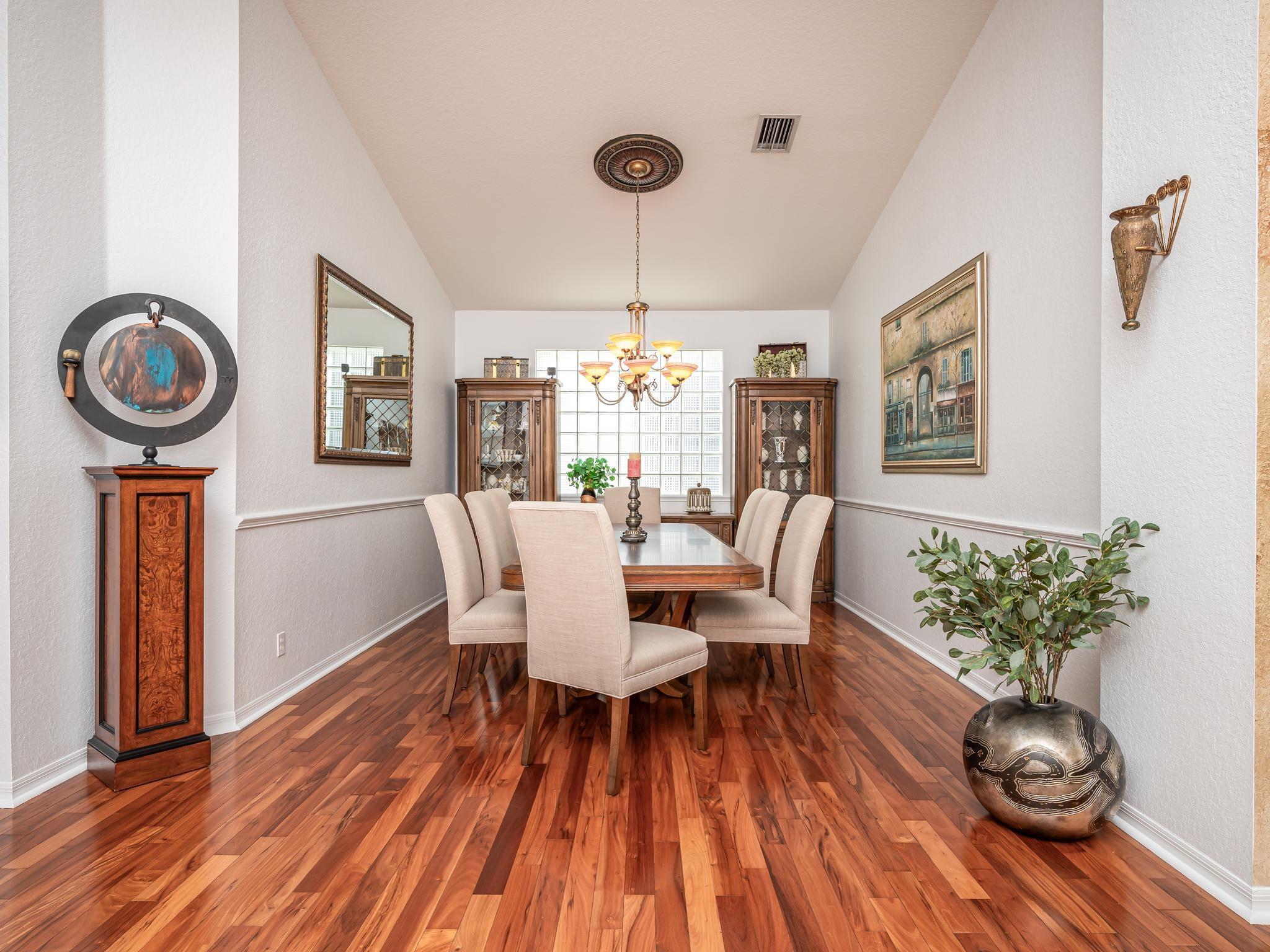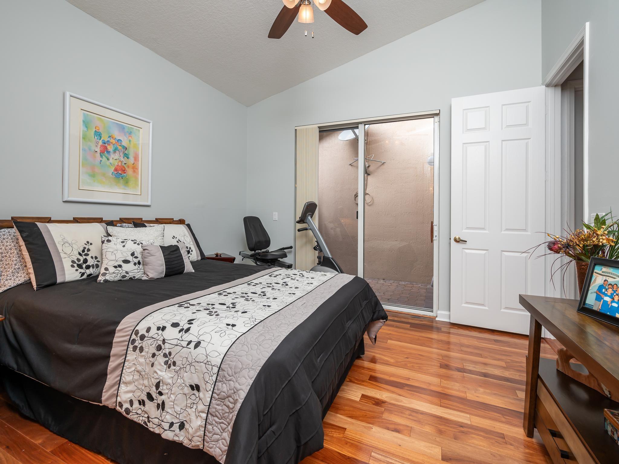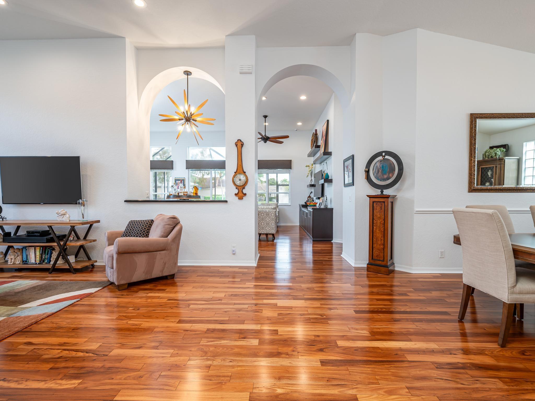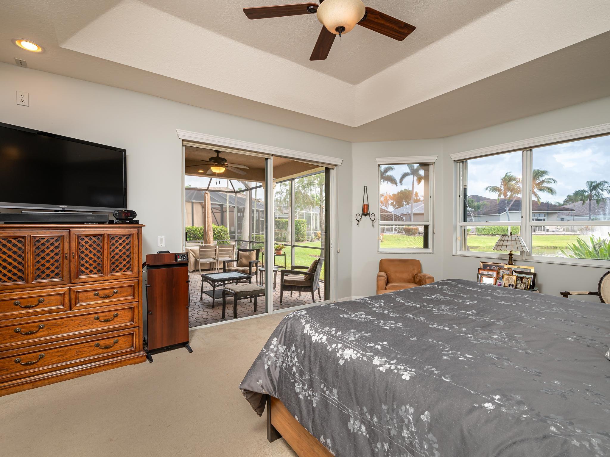 Model condition with a touch of class around every corner on this oversized waterfront lot. Major updates including kitchen, baths, flooring, Roof 2023 & more. 3 car garage with oversized driveway. Grand open feel, high ceilings, & tons of light. Extended screened patio overlooking water. Included is Irrigation from lake which helps keep water consumption down. Wood floors throughout main areas. All appliances newer and well maintained. Accordion Hurricane Shutters. Located in the Pointe of Heron Bay where lawn care, trees trimming, fertilization, and weeding are included along with exterior painting. Guard Gated with the best amenities - Children’s water park, 12 clay tennis courts, 3 hard courts, 6 pickleball courts, 2 heated pools, 2 clubhouses, 2 Gyms, & more