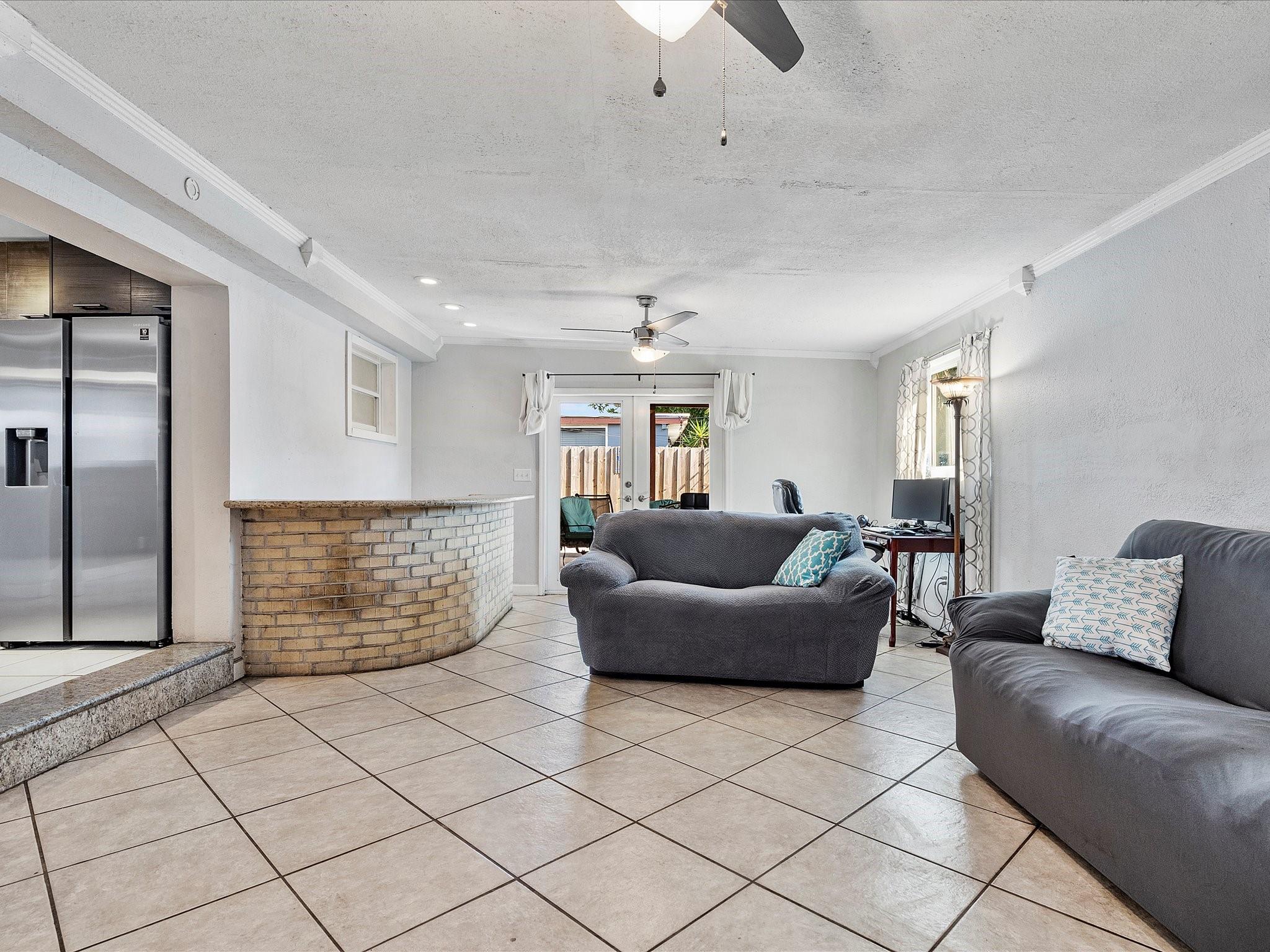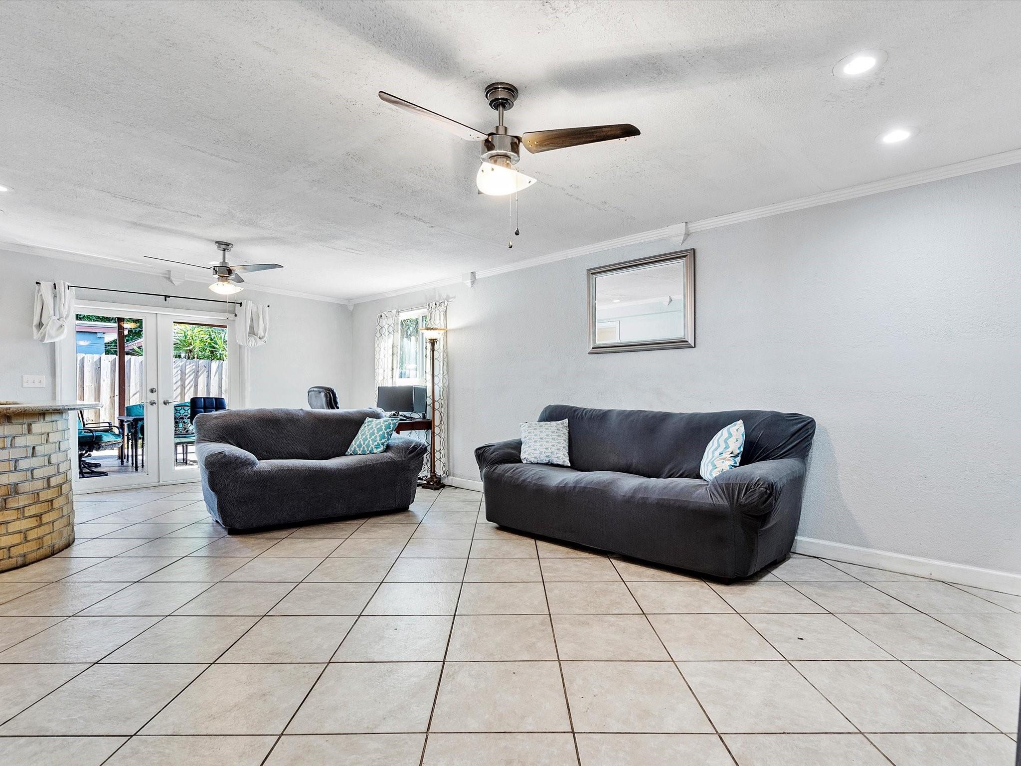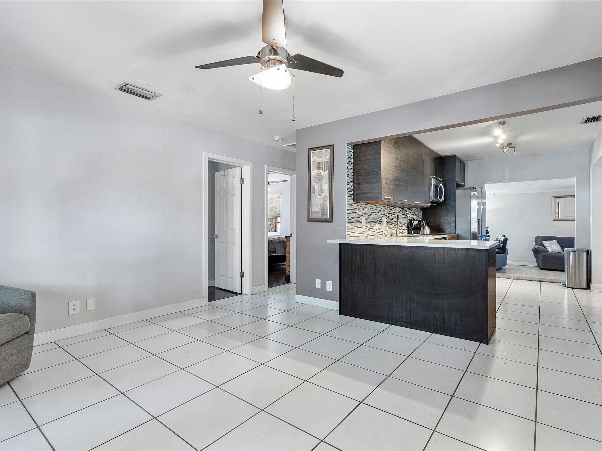 Discover charm in this oversized 2-bedroom, 1-bath home located on a quiet, tree-canopied street in Oakland Park’s desirable North Andrews neighborhood. The home features an inviting living room with an open-concept kitchen and dining area, flowing into an expansive family room complete with a built-in bar—ideal for lounging and entertaining. Modern updates include a renovated kitchen and bathroom with quartz countertops, stainless steel appliances, and a newer washer/dryer. Notable upgrades: 2013 roof, 2014 A/C, and all impact windows/doors for insurance savings. Enjoy a spacious 15x25 Florida room and a fully fenced backyard with a storage shed on a concrete slab. Plenty of room for pets, activities, or a future pool—plans from a pool company are available. Don't miss this gem!