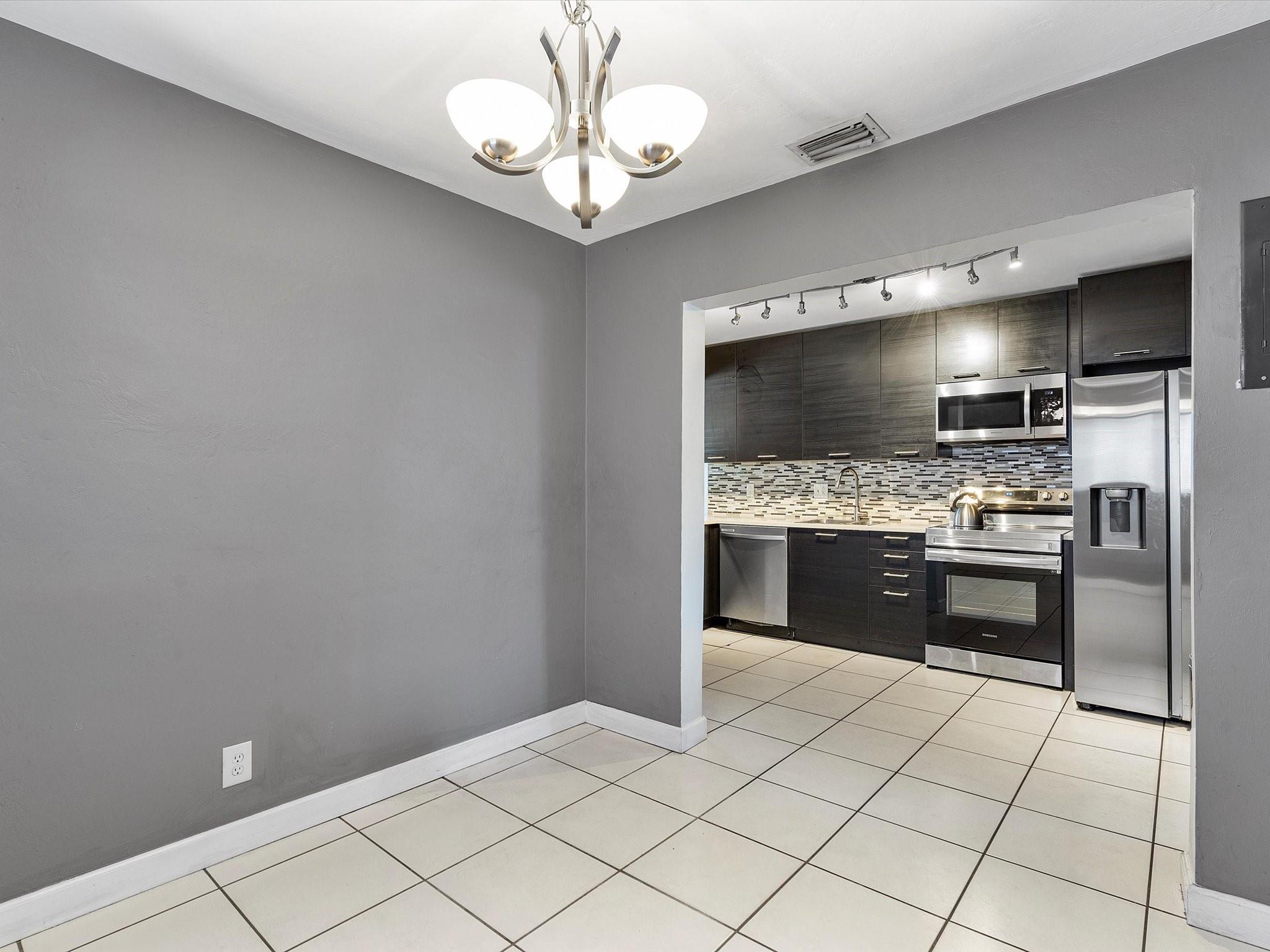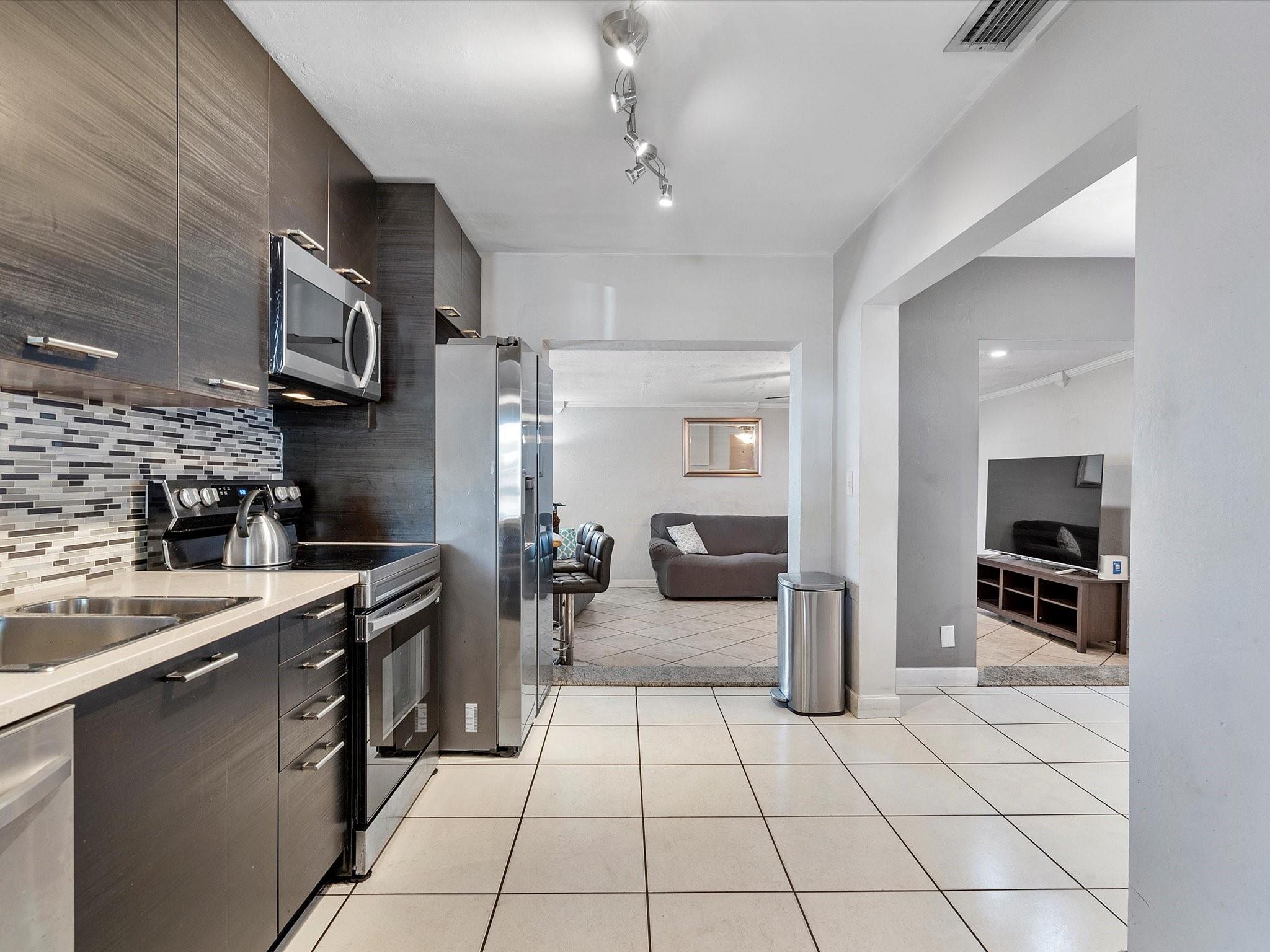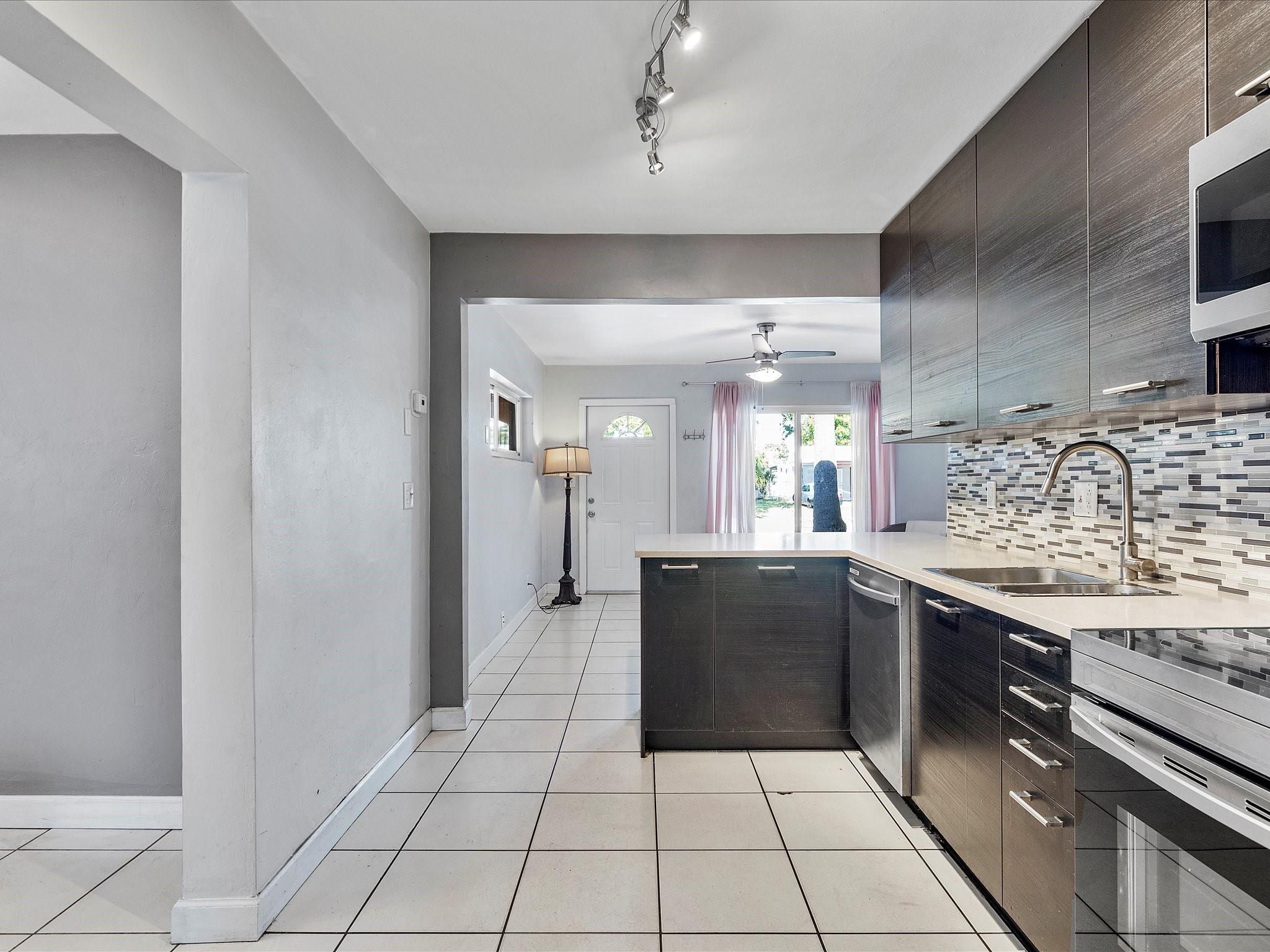 Discover charm in this oversized 2-bedroom, 1-bath home located on a quiet, tree-canopied street in Oakland Park’s desirable North Andrews neighborhood. The home features an inviting living room with an open-concept kitchen and dining area, flowing into an expansive family room complete with a built-in bar—ideal for lounging and entertaining. Modern updates include a renovated kitchen and bathroom with quartz countertops, stainless steel appliances, and a newer washer/dryer. Notable upgrades: 2013 roof, 2014 A/C, and all impact windows/doors for insurance savings. Enjoy a spacious 15x25 Florida room and a fully fenced backyard with a storage shed on a concrete slab. Plenty of room for pets, activities, or a future pool—plans from a pool company are available. Don't miss this gem!