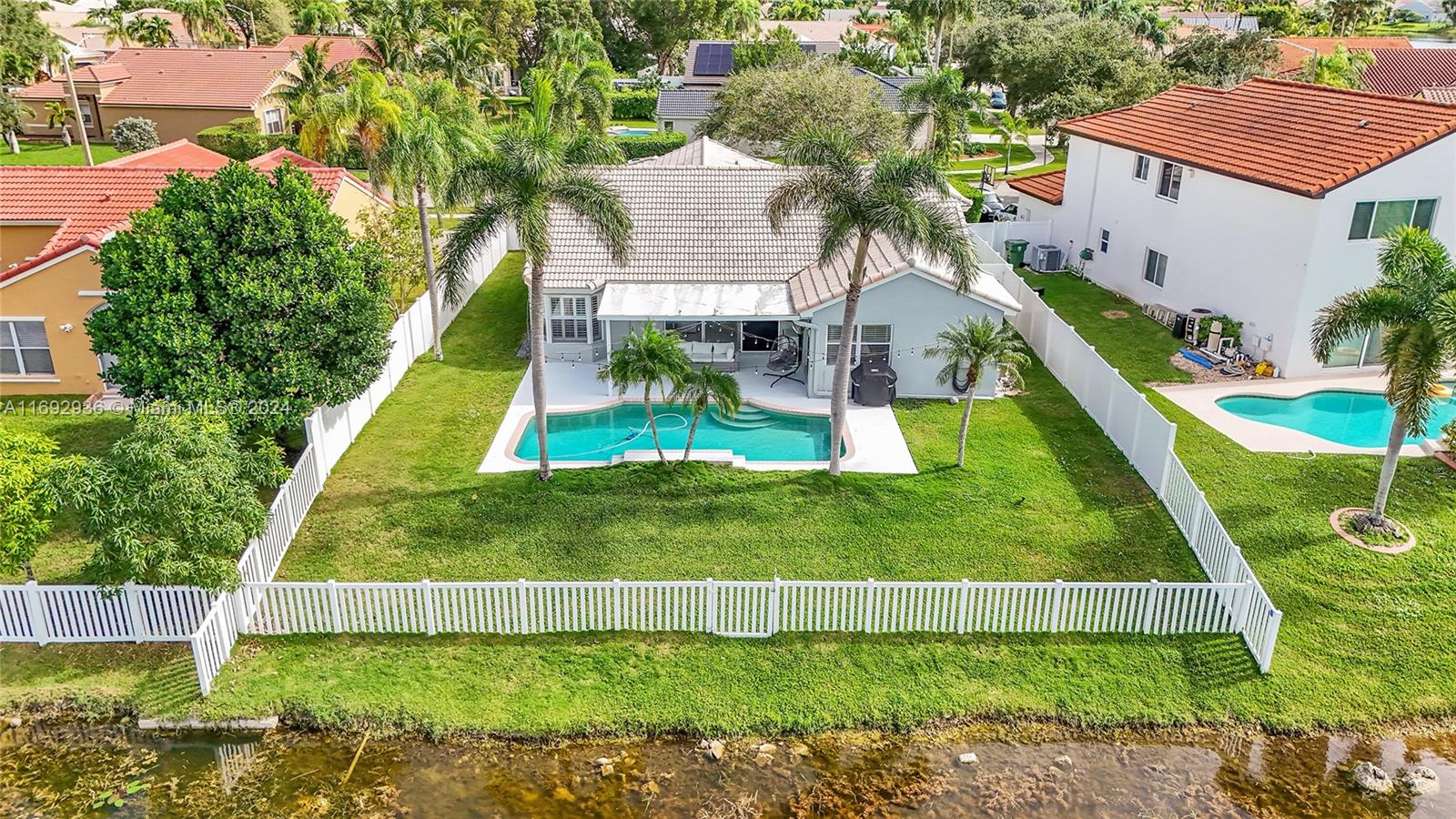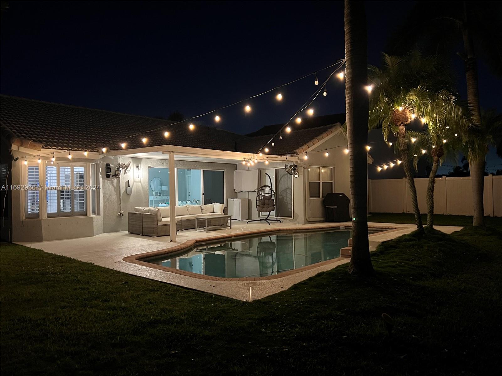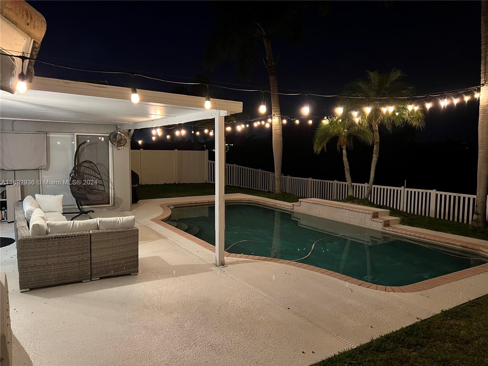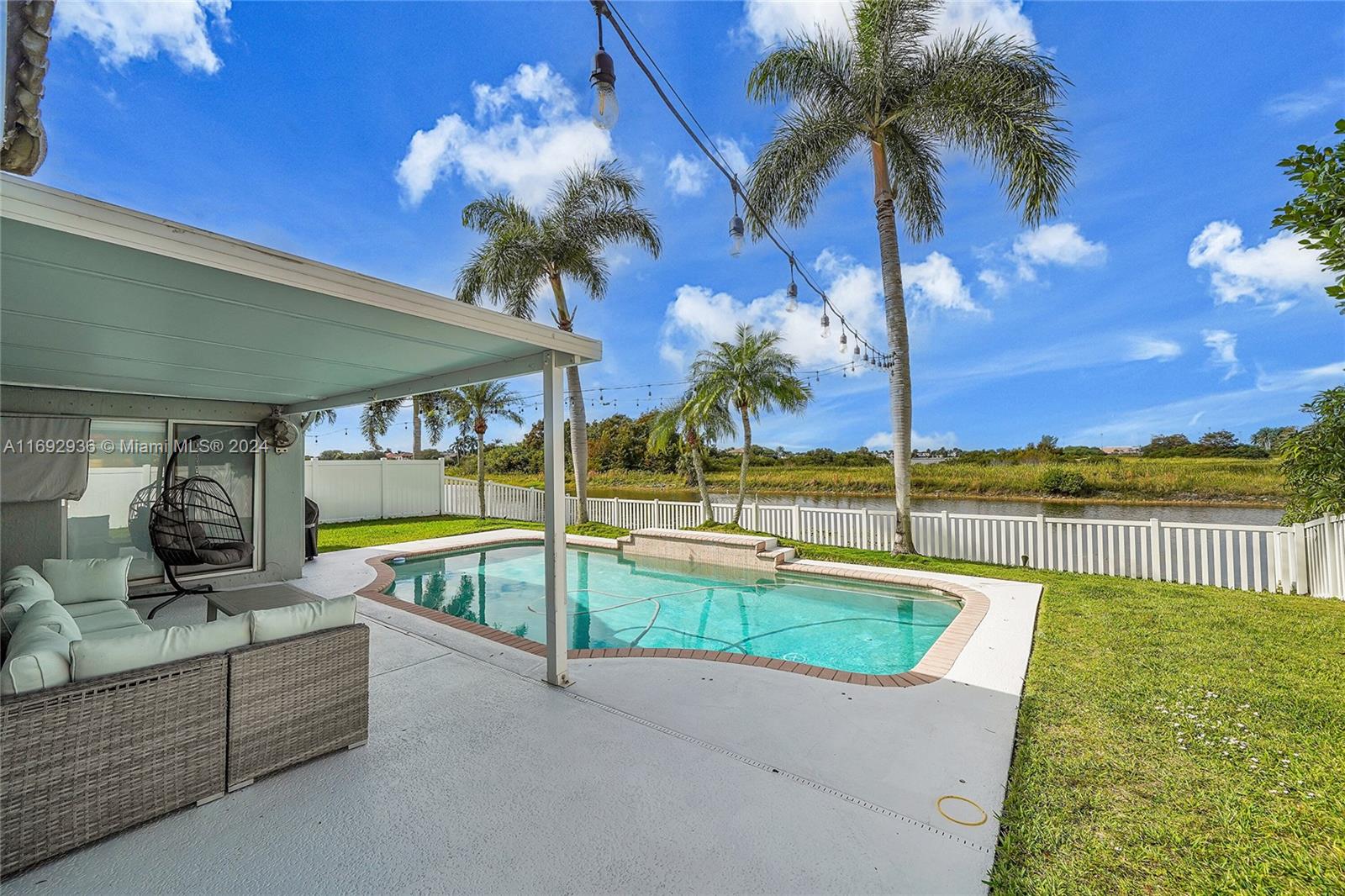 Welcome to this stunning 3/2 single-family waterfront home, offering unobstructed picturesque sunset views and a luxurious heated pool. With polished white porcelain tile throughout and matte finishes in remodeled bathrooms, this home combines elegance and comfort. Inside, you’ll find a brand-new A/C with WiFi and UV protection for clean air, while dimmable LED lighting and WiFi-enabled features create modern convenience. Backyard boasts a 6' PVC fence, baby gate around the pool, patio fans, and outdoor lighting. The kitchen and laundry include WiFi appliances, many with extended warranties. Upgraded with a new pool heater, pump, sprinkler system, this home is ready for seamless indoor-outdoor living. A perfect retreat for those who value quality, privacy, and smart functionality!