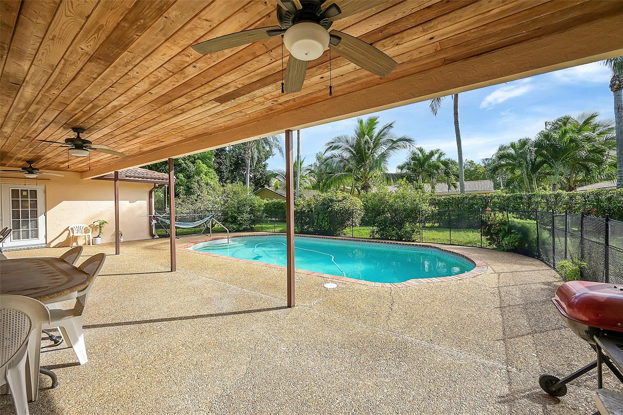 Step into the dream in this spacious four bedroom home nestled into a Coral Springs neighborhood full of mature trees and two nearby parks. Vaulted ceilings and an open floorplan. NEW AC IN 2023! The kitchen is a cook's delight overlooking the backyard. Charming breakfast area and a formal dining room for those special occasions. Extra large living room and a roomy family room. Perfect for entertaining. All bedrooms are a good size. Beautifully updated guest bathroom. Covered back patio that's perfect for morning coffee. Relax or swim in your own private sparkling pool. Walk to the high school that borders the neighborhood. The elementary and middle schools aren't far either. Ideal location close to shopping, dining and the bounty of amenities in Coral Springs.