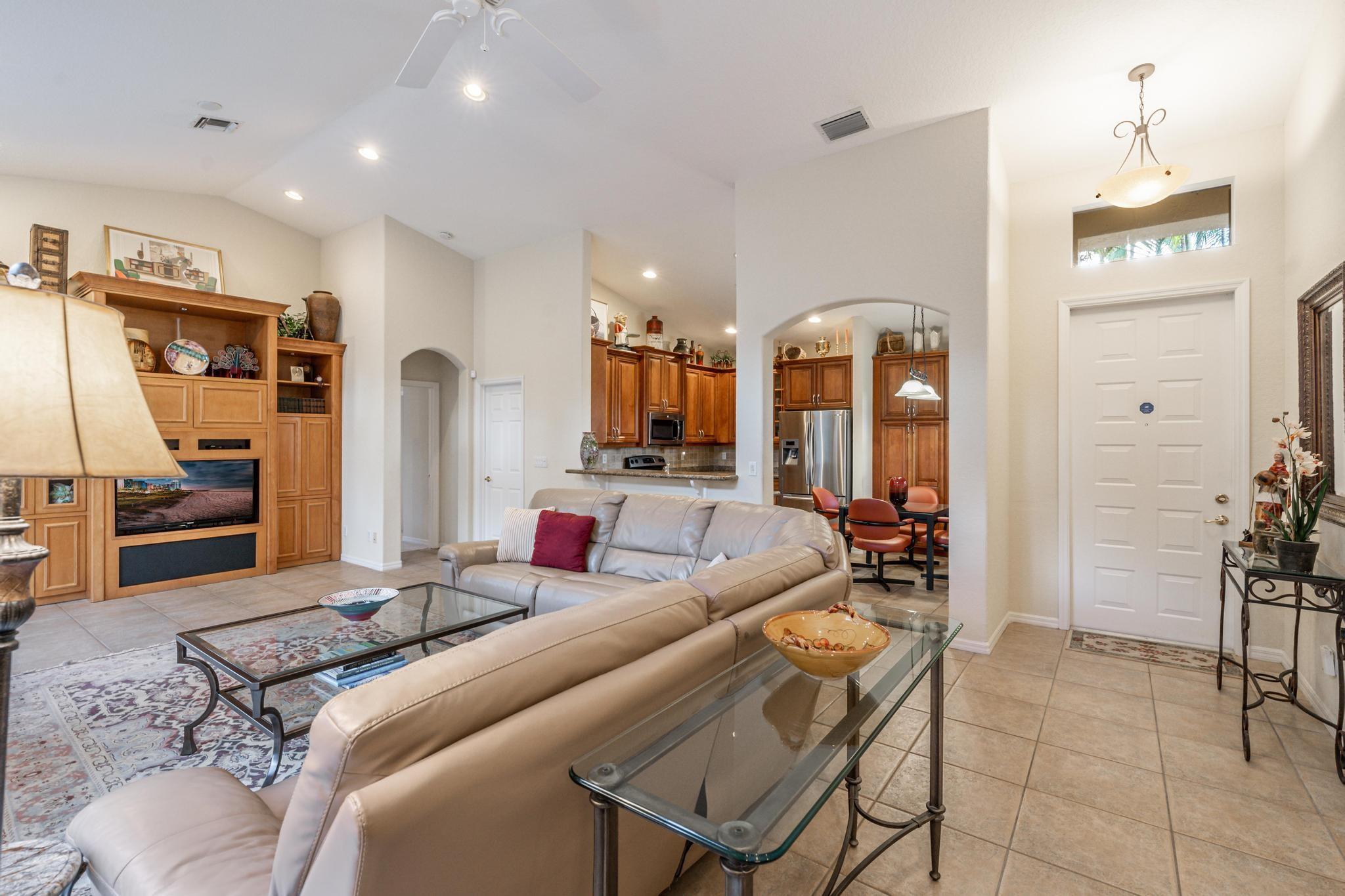 Amazing opportunity to own this meticulously maintained WATERFRONT home in the Tuscany subdivision of HERON BAY. The light, bright well thought out floor-plan boasts 2,230 SF, 3 bedrooms, 2 baths and a large great room, perfect for entertaining. Open kitchen, high ceilings, split bedrooms for privacy! All overlooking a large screened-in patio and serene, expansive lake for beautiful sunset views. Incredible opportunity in a guard-gated community with superior amenities that INCLUDES lawn maintenance, 2 clubhouses, expansive pools, playgrounds, tennis courts, gyms, walking trails, “A” rated school system and more. Show and sell.