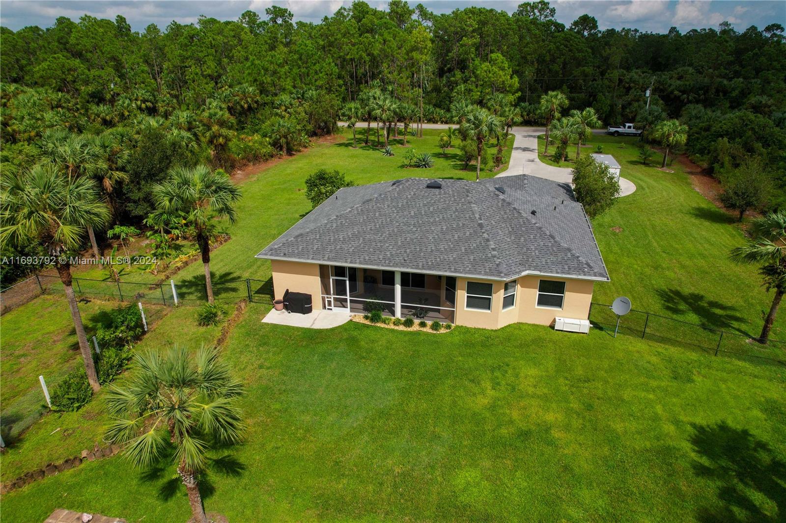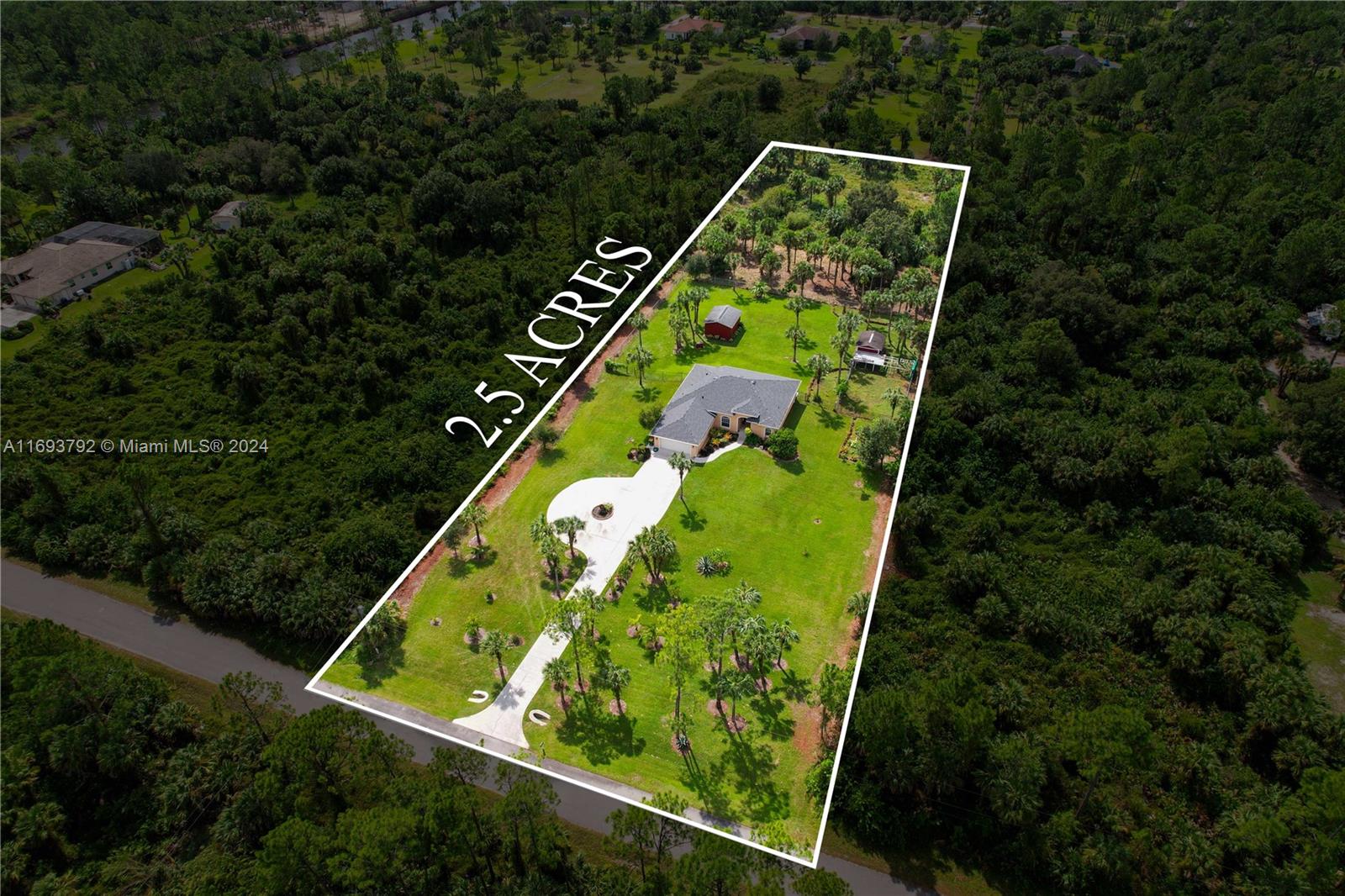 Golden Gate Estates Retreat on 2.5 Acres – This stunning 3-bedroom, plus den, 2-bathroom single-family home sits on a beautiful landscaped property, offering the perfect blend of privacy and convenience. With a NEW ROOF installed in 2023. A beautifully appointed kitchen with WOOD CABINETRY, GRANITE countertops, and stainless steel appliances. A CENTRAL VACUUM SYSTEM, IMPACT WINDOWS AND DOORS throughout. The property includes large OUTDOOR SHED, a chicken coop that is currently doubling as a shed, and FRUIT TREES; banana, papaya and plum trees, all producing. FENCED BACKYARD with a garden area that includes irrigation water, and WELL IRRIGATION SYSTEM for the entire property. A whole house REVERSE OSMOSIS water system and a LARGE CIRCULAR CONCRETE DRIVEWAY.
