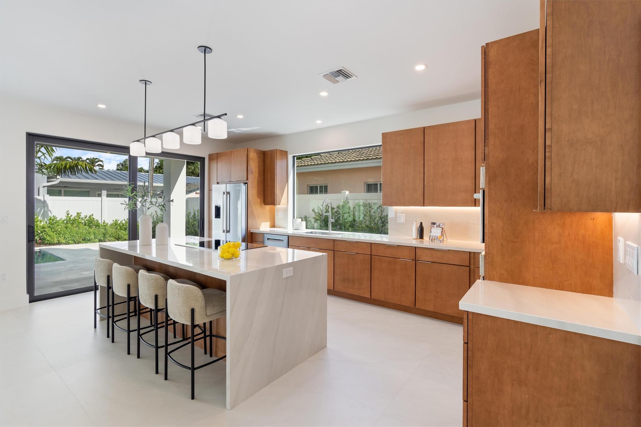 NEW CONSTRUCTION 2-story masterpiece in E. Ft. Lauderdale! The grand foyer welcomes you with voluminous windows and 20-ft ceiling, filling the home with natural light. Open-concept floor plan designed for effortless entertaining. Gourmet kitchen featuring a large center island and premium appliances. Walls of sliding doors seamlessly connect the main floor to the expansive covered patio and pool area - perfect for indoor-outdoor living. The upstairs primary suite offers a large balcony, luxurious bathroom, and generous walk-in wardrobe. Two additional ensuite bedrooms and a laundry room complete the upper level—a versatile 4th bedroom on main floor is ideal for a home office or guest bedroom. 2-car garage pre-wired for EV charging. Minutes away from beaches, markets, shopping and dining