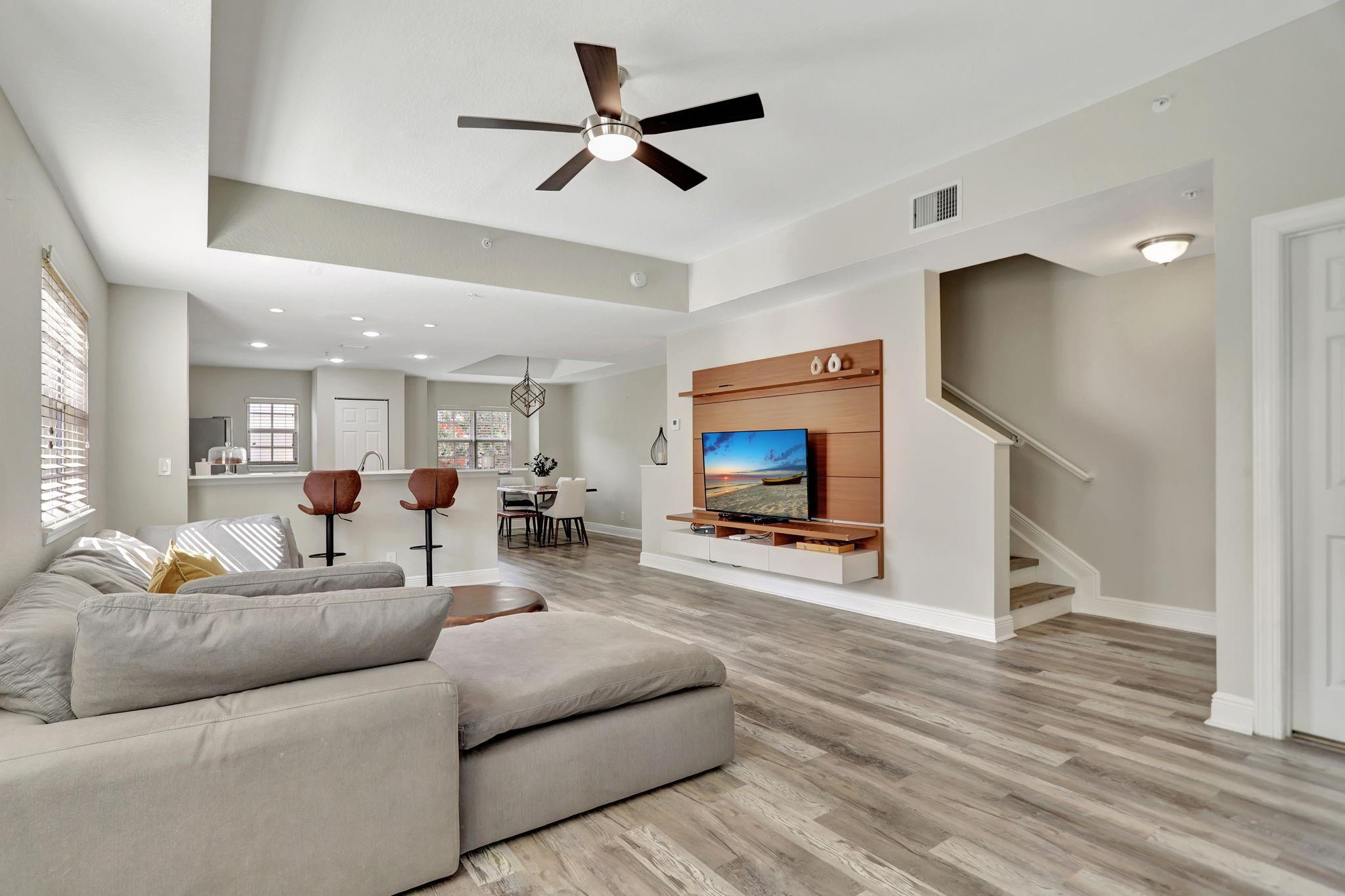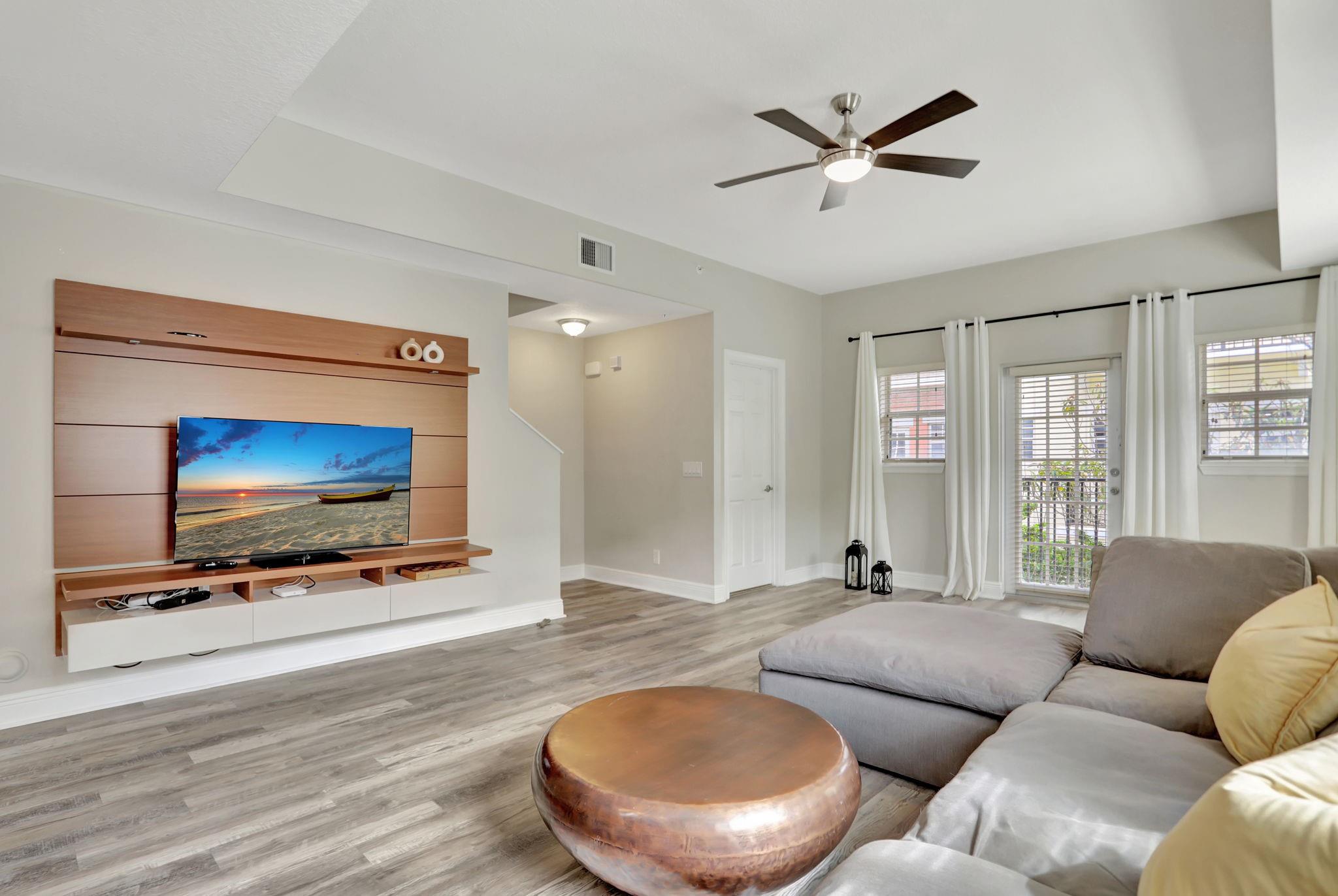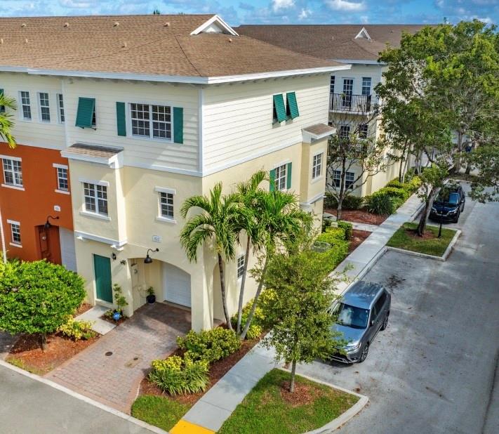 Move in ready 3 story CORNER townhouse. No assessments, HOA has great reserves! Home boasts an elegant kitchen with quartz counters, spacious rooms with ample closets, tile/LVP floors, high ceilings and lots of windows allowing natural light. Garage with added storage. Home equipped with sprinkler/alarm systems. Low HOA fee includes cable, fiber internet, landscaping, use of clubhouse, oversized pool overlooking stunning lake, fitness center. Pet friendly/Investor friendly. Owner can live upstairs rent downstairs. Community sits across a park with tennis courts and soon to be pickleball courts, a yoga studio, a preschool and lots of restaurants and Publix a short walk away. Short drive to beach. Your dream home awaits!