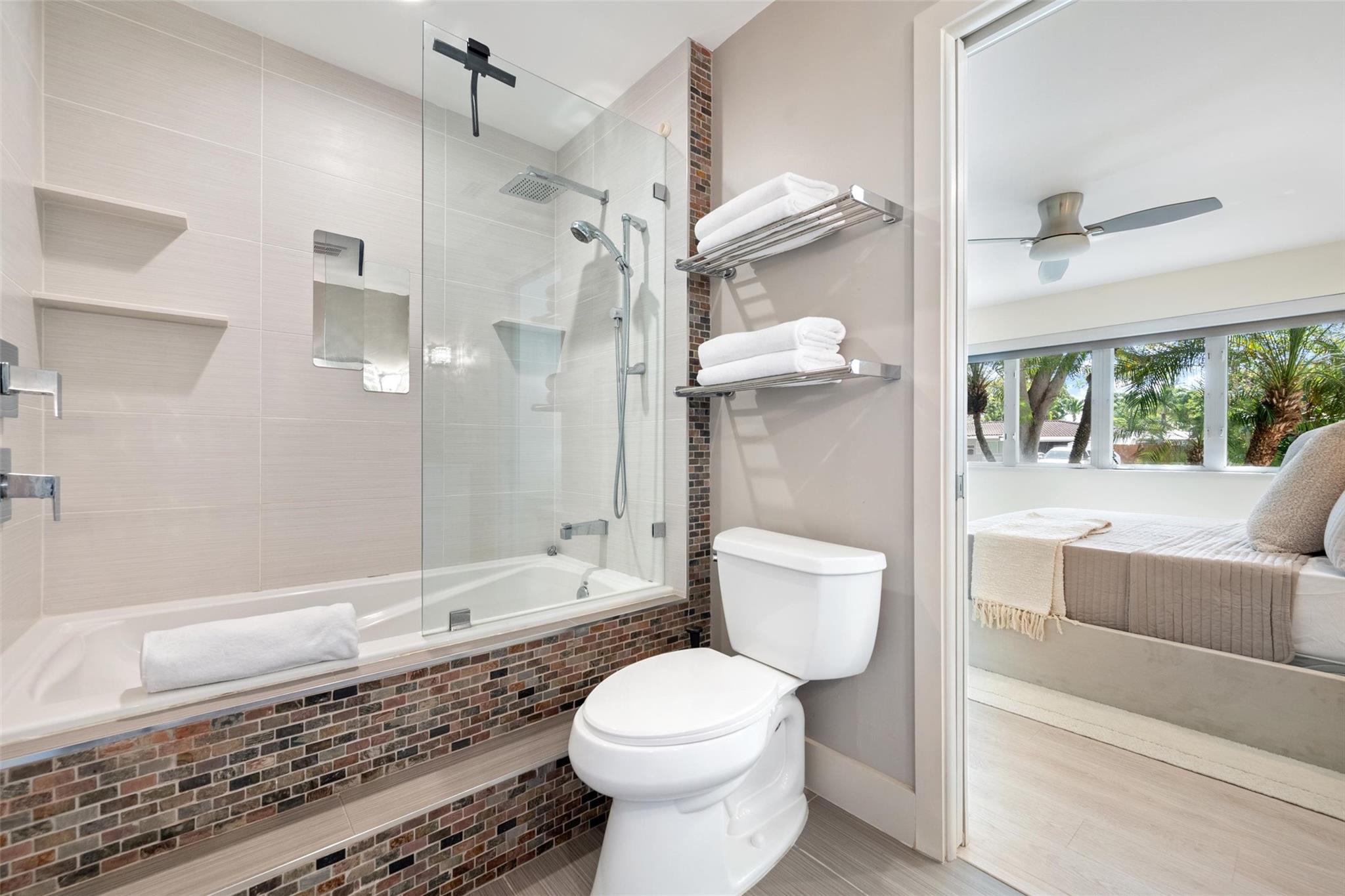 Located in Coral Ridge, this updated contemporary home in East Fort Lauderdale epitomizes the South Florida lifestyle. Just minutes from the beach, shopping, dining, fitness centers, and Bayview Elementary, it combines luxury and convenience. Lush tropical landscaping enhances the curb appeal and welcoming entry. New A/C, Inside, a spacious open floor plan with sliding glass doors seamlessly connects indoor and outdoor living spaces, perfect for entertaining. Relax in the screened lanai overlooking the saltwater pool, hot tub, patio, and garden. The gourmet kitchen offers ample counter space for any chef. The primary suite includes two walk-in closets and a luxurious bath, while the second and third bedrooms share a full bath.