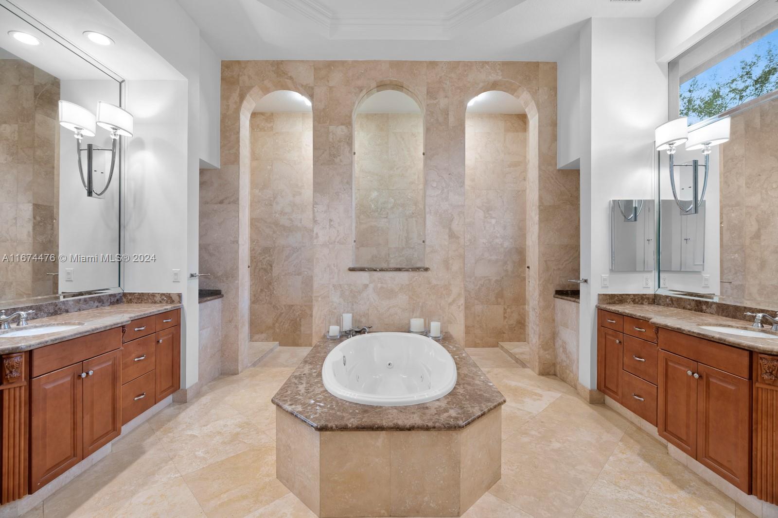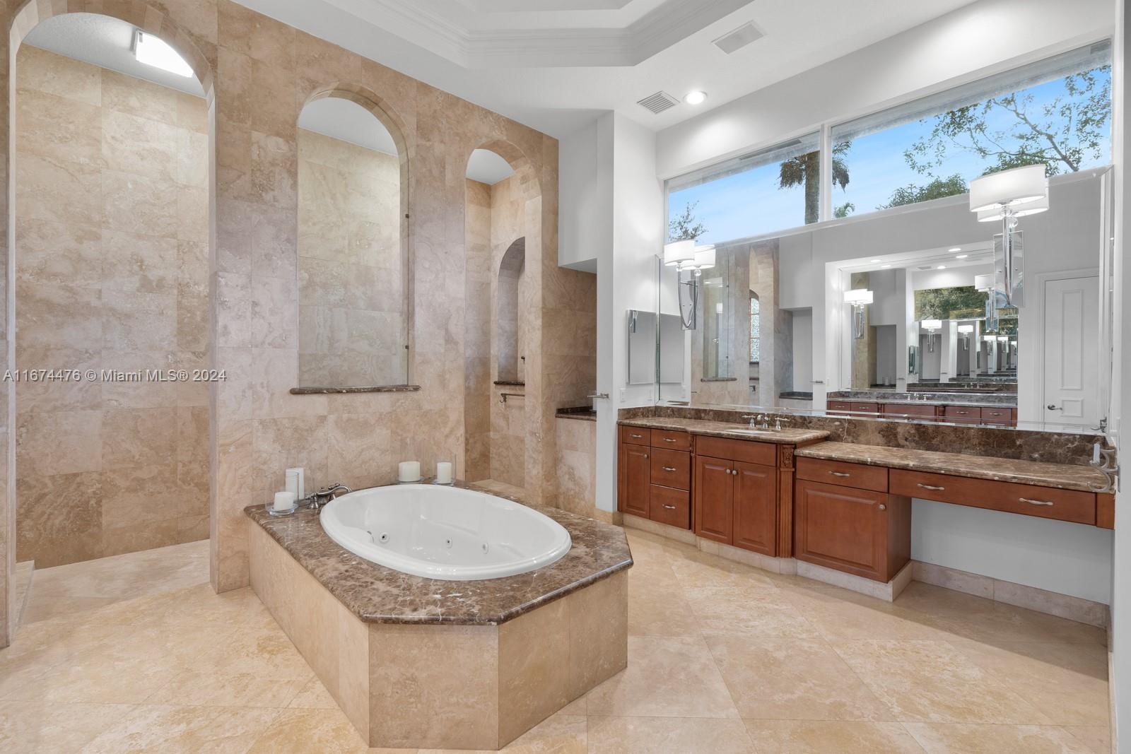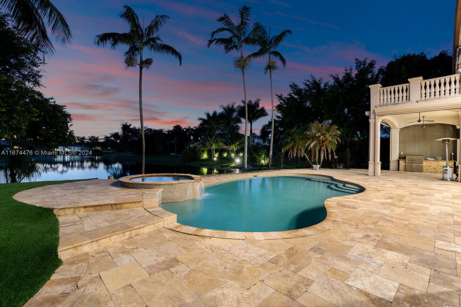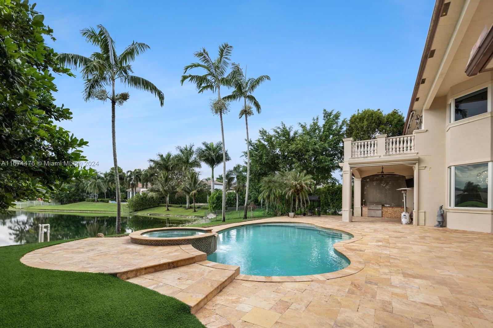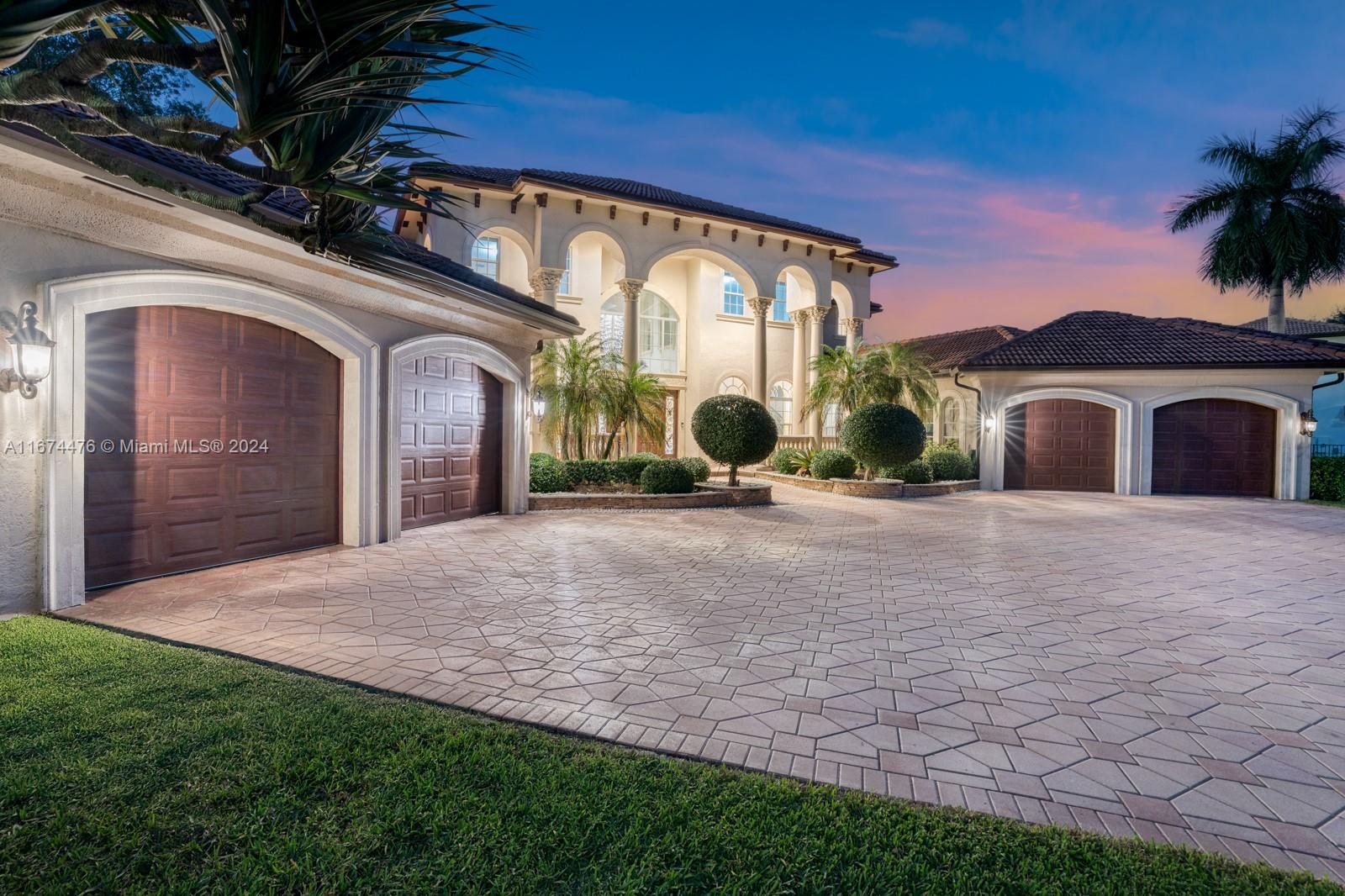 Stunning Custom Wellington model waterfront home in the prestigious, gated Stonebrook Estates community in Davie, Florida. This expansive residence offers 5 spacious bedrooms, 6 bathrooms, updated kitchen w/ butlers pantry & formal dining. The impressive double-height ceilings with panoramic lake views creates an open, inviting, elegant atmosphere. Featuring marble floors on the main level, custom wrought-iron railings, and rich wood floors upstairs, this well-maintained home also features a custom library/office plus a family media room with wet bar. The remodeled pool area with a hot tub & marble pavers offers a private, resort-like escape. The community offers tennis courts, pickleball, beach volleyball, clubhouse, playground, and 24-hour manned security. Truly pristine luxury living!