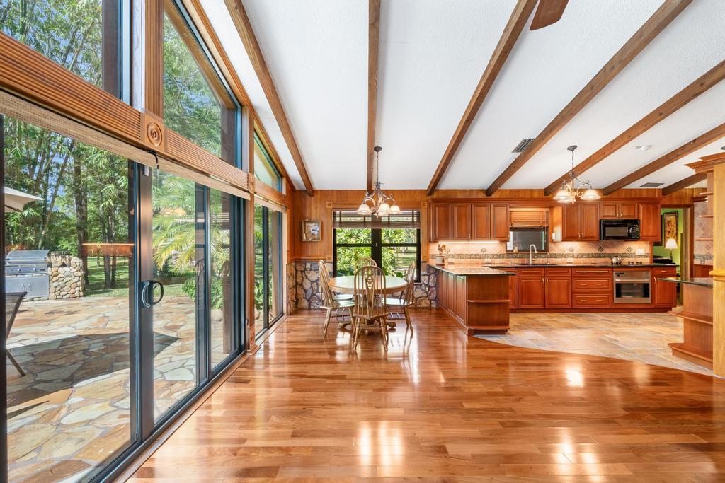 Welcome to your dream equestrian estate, set in a picturesque 10 ACRE PROPERTY in a coveted equestrian community of Homeland. With a manned gated entrance, scenic riding trails, and paved roads, this community offers security, tranquility, and convenience. Embrace the equestrian lifestyle in this beautifully maintained oasis, surrounded by canals on three sides, providing an ideal balance of privacy and accessibility.The **main home** offers 2,750 sq. ft. under air, featuring 4 spacious bedrooms, 3 full baths, and a bright, inviting layout. Enter into a cozy living room with a fireplace, formal dining area, family room, and an ultra-functional mudroom. The charming kitchen is well-equipped, complete with updated countertops, and includes classic touches like a trash compactor and