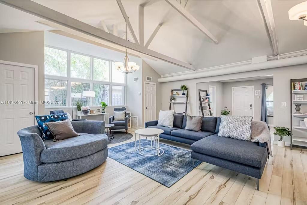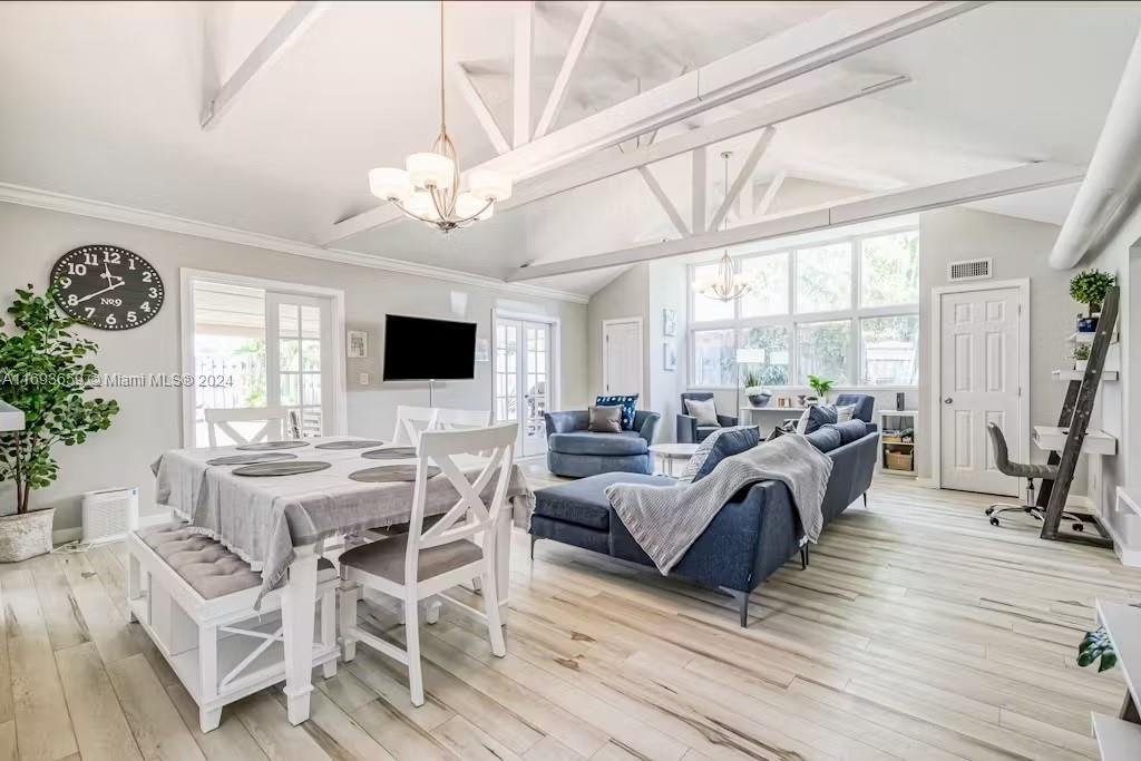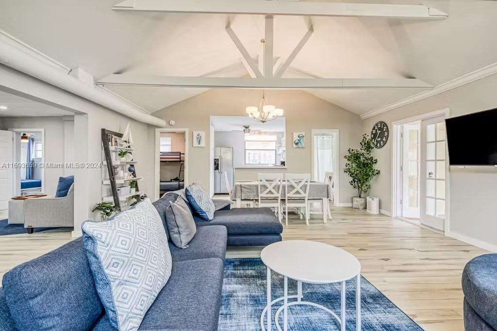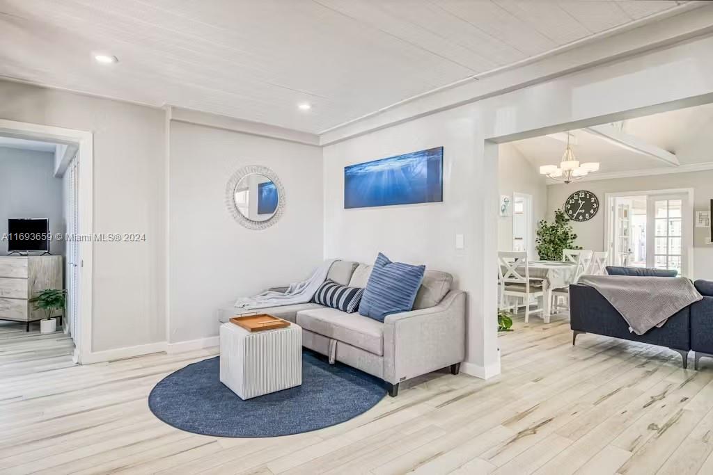 Welcome Home! 3 Bed / 2 Full Bath, This stunning single home located just east of US1 and only 1 mile from the beach, offers the perfect blend of comfort and charm. Step inside to find a beautifully designed kitchen with stainless steel appliances, and a living space featuring gorgeous exposed wood beam ceilings. The master bathroom is a true retreat, boasting a separate tub room with a skylight, creating a serene and spa-like atmosphere. Outside, enjoy a large with a room to make your pool, and a fenced backyard with lush landscaping—your private oasis. This is beachside living at its finest! New AC (2024), Roof (2016). Schedule your showing today!
