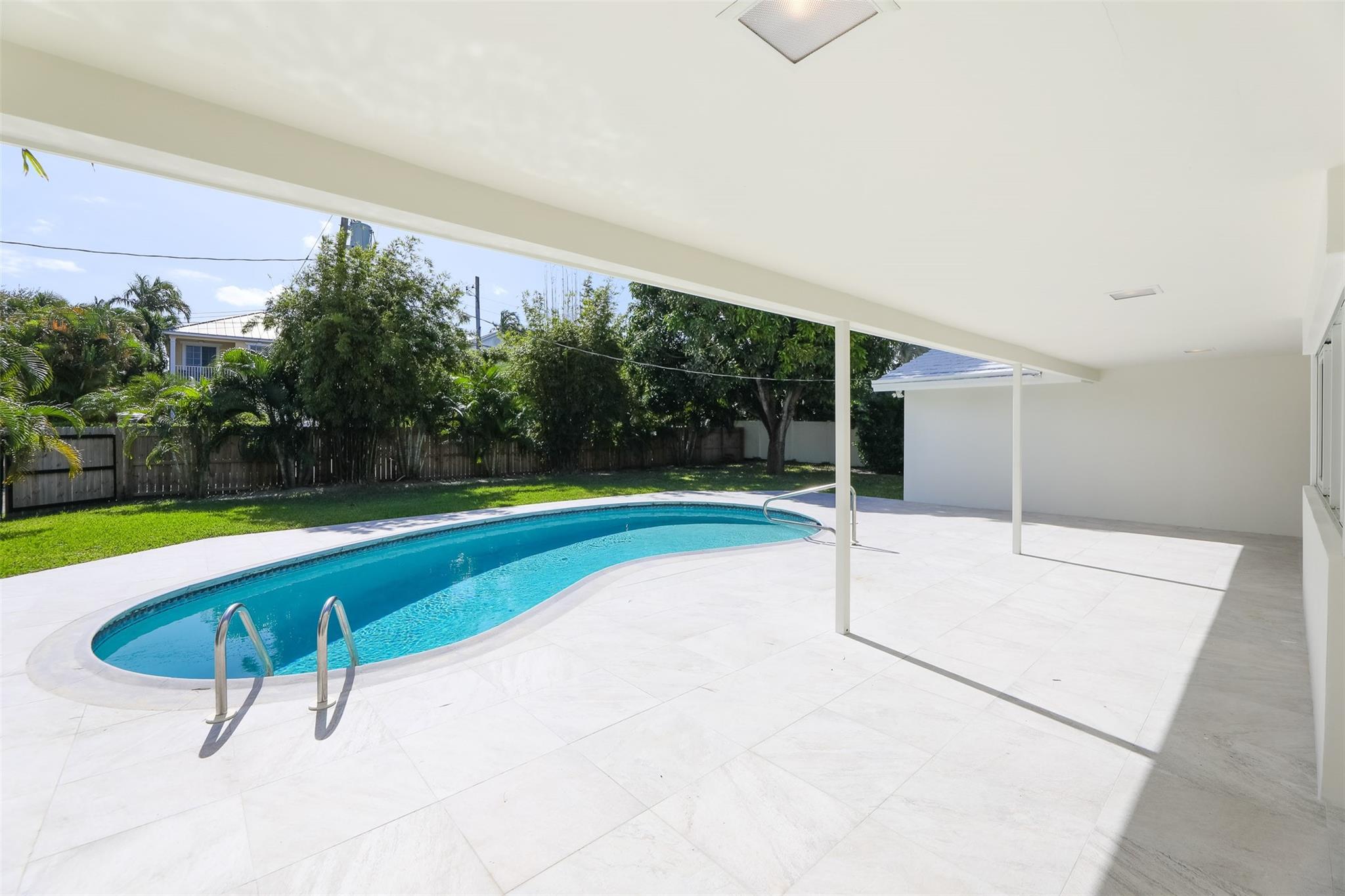 Situated on a generously sized corner lot, we welcome you to this beautiful 4-bedroom pool home. Boasting a modern open floor plan with a stunning kitchen that features an oversized island as its centerpiece. Pass through windows out to the large patio makes indoor-outdoor entertaining a breeze. The spacious living area also opens up to the great fenced in yard with a sparkling pool and large overhang. Sleekly remodeled bathrooms complement the home's contemporary aesthetic, while the generously sized bedrooms ensure comfort. Additional conveniences include a separate laundry room, 2 car garage and home is prewired for fiber optics, security cameras and tv's. Home is also equipped with impact windows and doors.