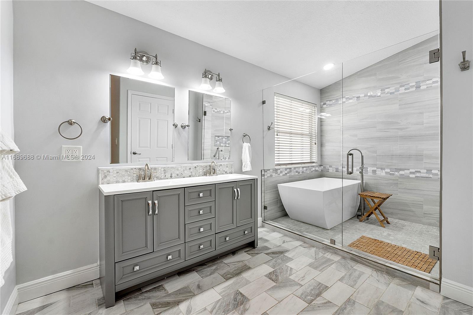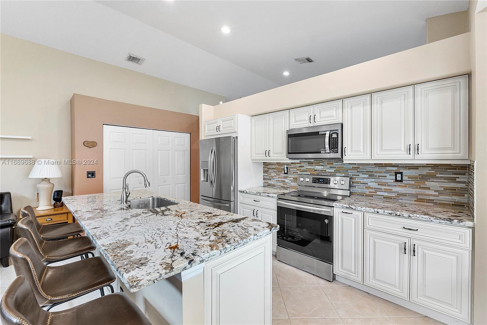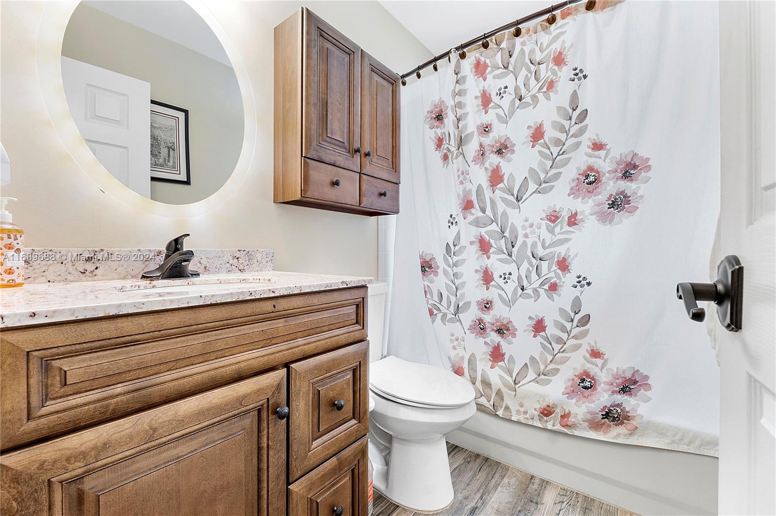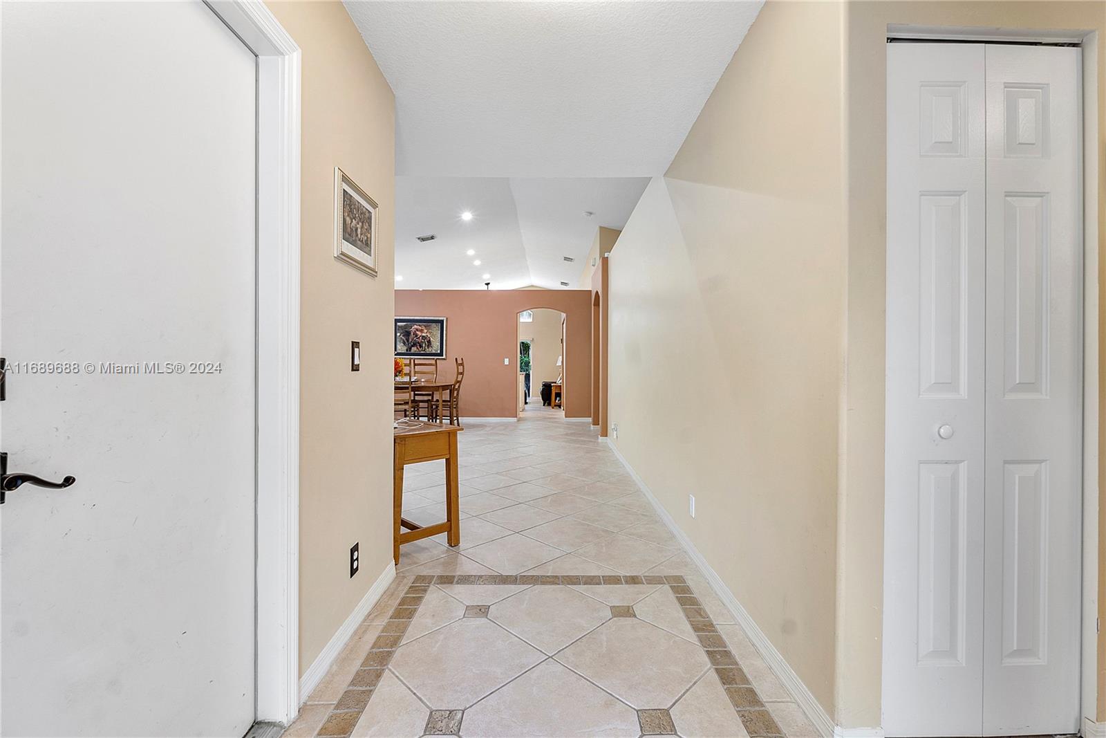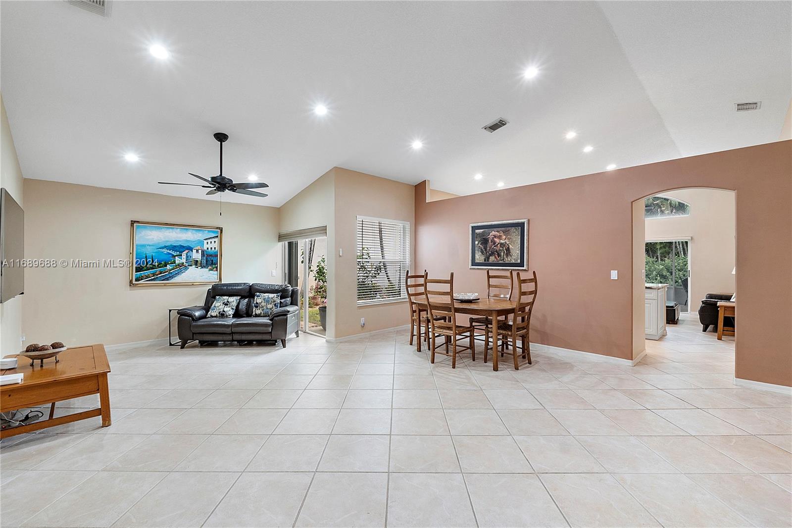 Beautiful 3 Bed 2 Bath Home With 2 Car Garage Located In Prestigious Gated Maple Ridge In The Heart Of Hollywood. Foyer Entrance. Living Room/Dining Room/Family Room. Tile In Common Areas, Laminate Wood Floors In Bedrooms. This Home Features Recessed Lights, Large Open Layout With Lots Of Natural Light. Large Updated Open Kitchen With Granite Countertop, Wood Cabinets With Pull outs And SS Appliances. Large Primary Suite With Walk-In Closet, Volume Ceilings & Ceiling Fan. The En-Suite Bathroom Has Double Vanity, Custom Large Shower With Free Standing Tub With Frameless Enclosure. 2 Other Bedrooms Have A Closet, Laminate Wood Floors, & Ceiling Fan. Upgraded Hall Bath With Wood Vanity & Push Button Toilet. A/C 2022. Screened Patio. White PVC Privacy Fence. Lavish Landscape & Community Pool.