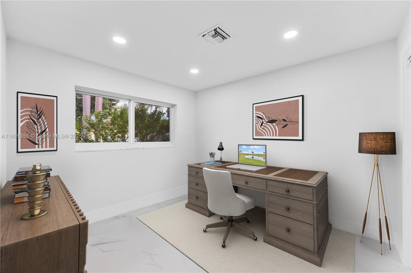 Welcome to this luxurious 4-bedroom, 3-bathroom corner home that perfectly captures the essence of South Florida living! Nestled in a quiet, prestigious neighborhood just 2 miles from the beach, vibrant shops, dining, and more. This stunning home offers an open-concept layout bathed in natural light, with sleek modern finishes throughout. The gourmet kitchen, complete with premium appliances, quartz countertops, flows effortlessly into spacious living, ideal for entertaining. Bedrooms provide comfort and privacy, while the primary suite features a spa-inspired bathroom and custom walk-in closet. Featuring a New 5 Ton A/C unit. New Impact Windows. Expansive corner lot offers opulent landscaping with a glistening pool creating your own backyard oasis. Price Adjustment! Bring in your offers!