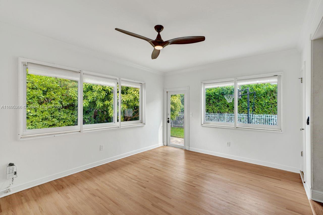This 3-bedroom, 2-bathroom, 1,998 sq ft charming home is located on a quiet tree-lined street in sought-after South Gables. The bright and airy split-bedroom floorplan boasts a blend of classic details and modern potential, with spacious living areas, family room, updated bathrooms, high impact windows/doors, and beautiful polished hardwood floors. The sizeable kitchen offers a pantry closet, breakfast area, custom wood cabinetry and stainless-steel appliances leading directly to a one car garage. Crowning this lovely home, perched on the area's highest elevation, is an inviting private backyard with a large stone paver patio, perfect for entertaining and space for a future pool. Make this gem yours and live in close proximity to top rated schools, fine dining, shopping and entertaining.