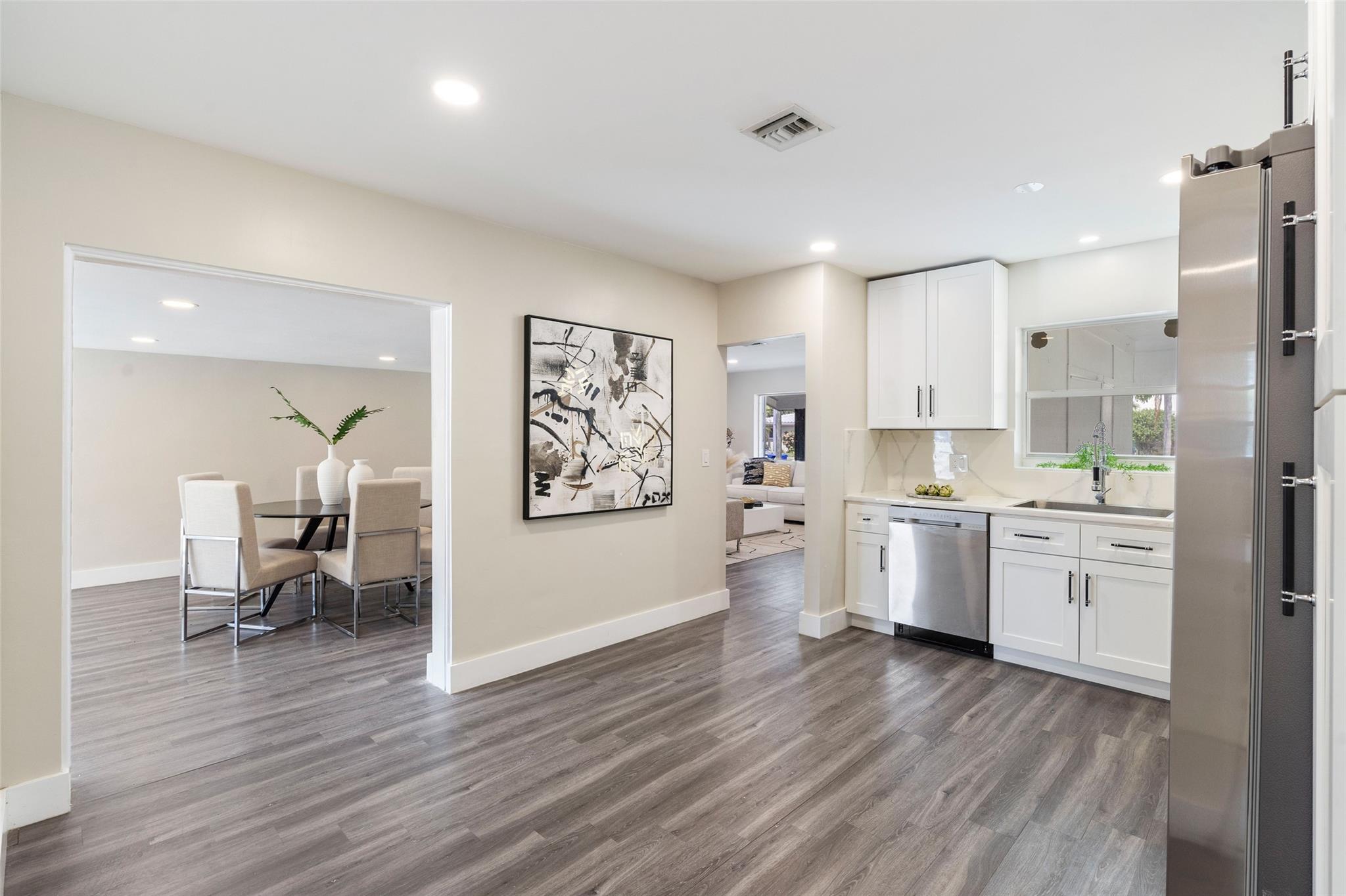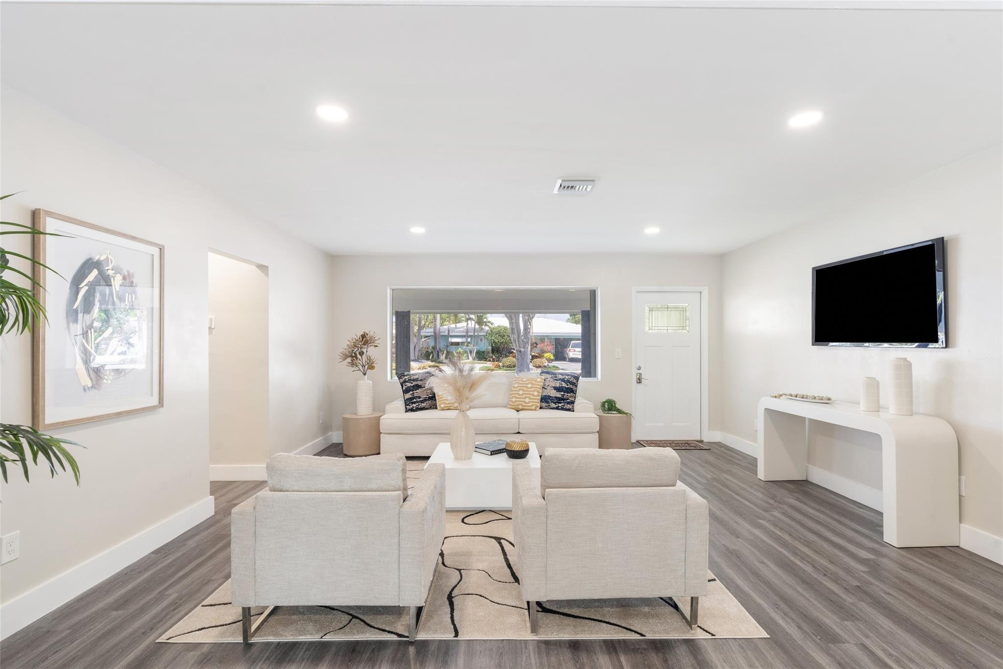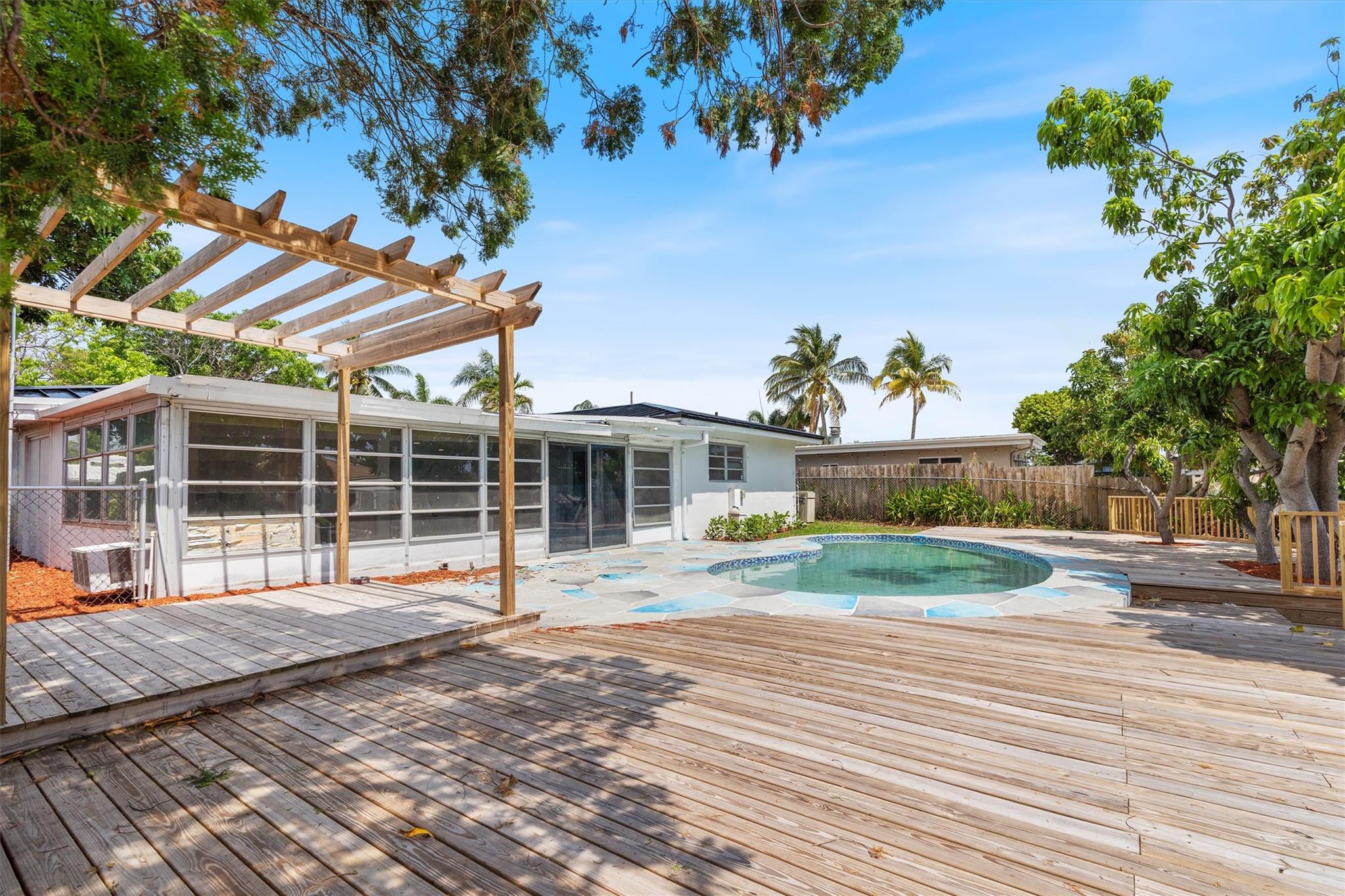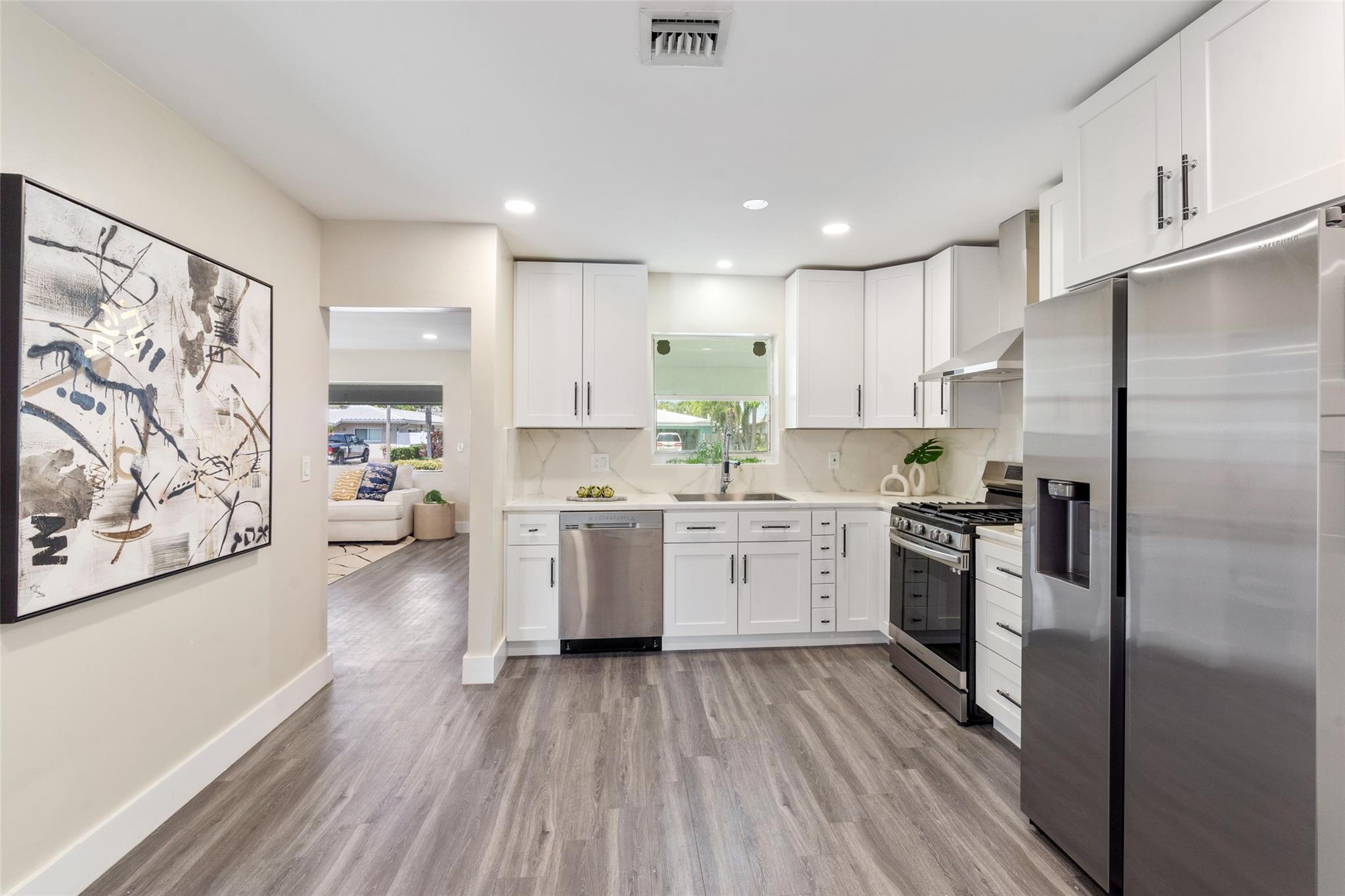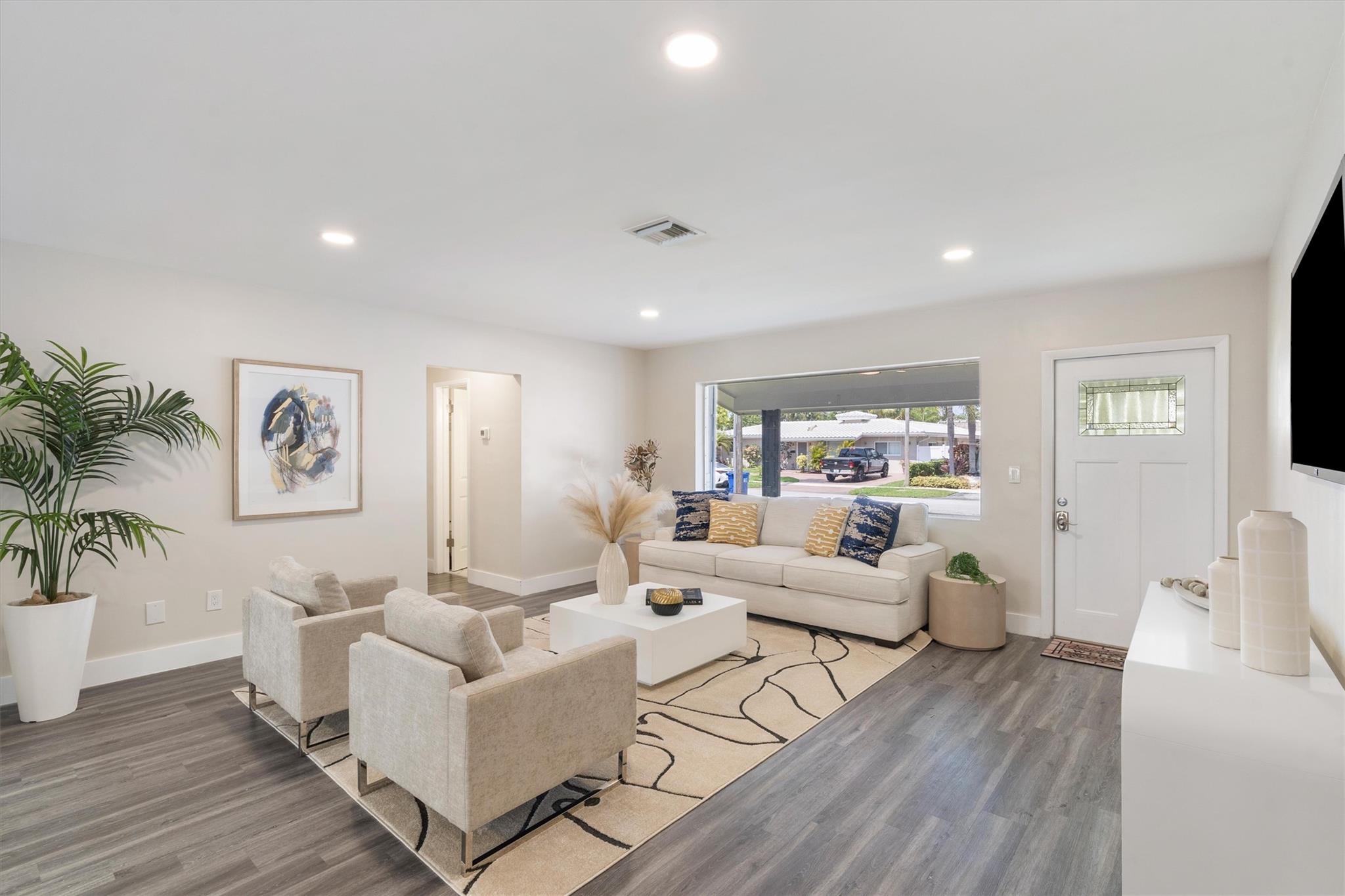 NO HOA! COMPLETELY REMODELED, UPSCALE 3 BEDROOM 2 BATH GARDEN ISLES FAMILY FRIENDLY WATERFRONT HOME. FEATURED WITH FRUIT TREES, AVOCADO, FIG AND MANGO. NEW METAL ROOF 2024. NEW KITCHEN, STAINLESS APPLIANCES, GAS STOVE WHITE CABINETS TO CEILING. NEW SPRINKLER SYSTEM ALONG WITH NEW LAWN. WALK IN CLOSETS, LAUNDRY ROOM OFFERS TOP OF THE LINE APPLIANCES ALONG WITH A PANTRY SINK . NEWER DECK ON 75FT OF WATER. 11TH ST BRIDGE AND FEDERAL HWY BRIDGE.