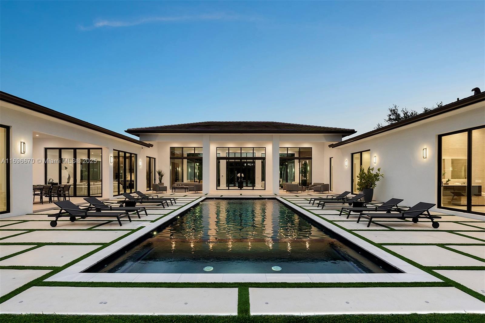 Discover this newly completed one-story transitional estate, a masterpiece of elegance & sophistication. Featuring soaring ceilings, natural light thru impact windows, & impeccable finishes, this home is designed to impress. The luxurious master suite offers two walk-in closets, floating tub, rainfall shower, & dual vanities. The custom Italian kitchen includes Sub-Zero appliances & a butler’s pantry. Perfect for entertaining, enjoy seamless indoor-outdoor living with two terraces, a summer kitchen, & a stunning large pool. Additional highlights include for the car enthusiast a three-car garage plus a two-car carport, & a separate versatile bedroom for a guest suite, gym, or office. Located in Pinecrest near top schools, parks, & shopping, this home blends luxury & convenience.