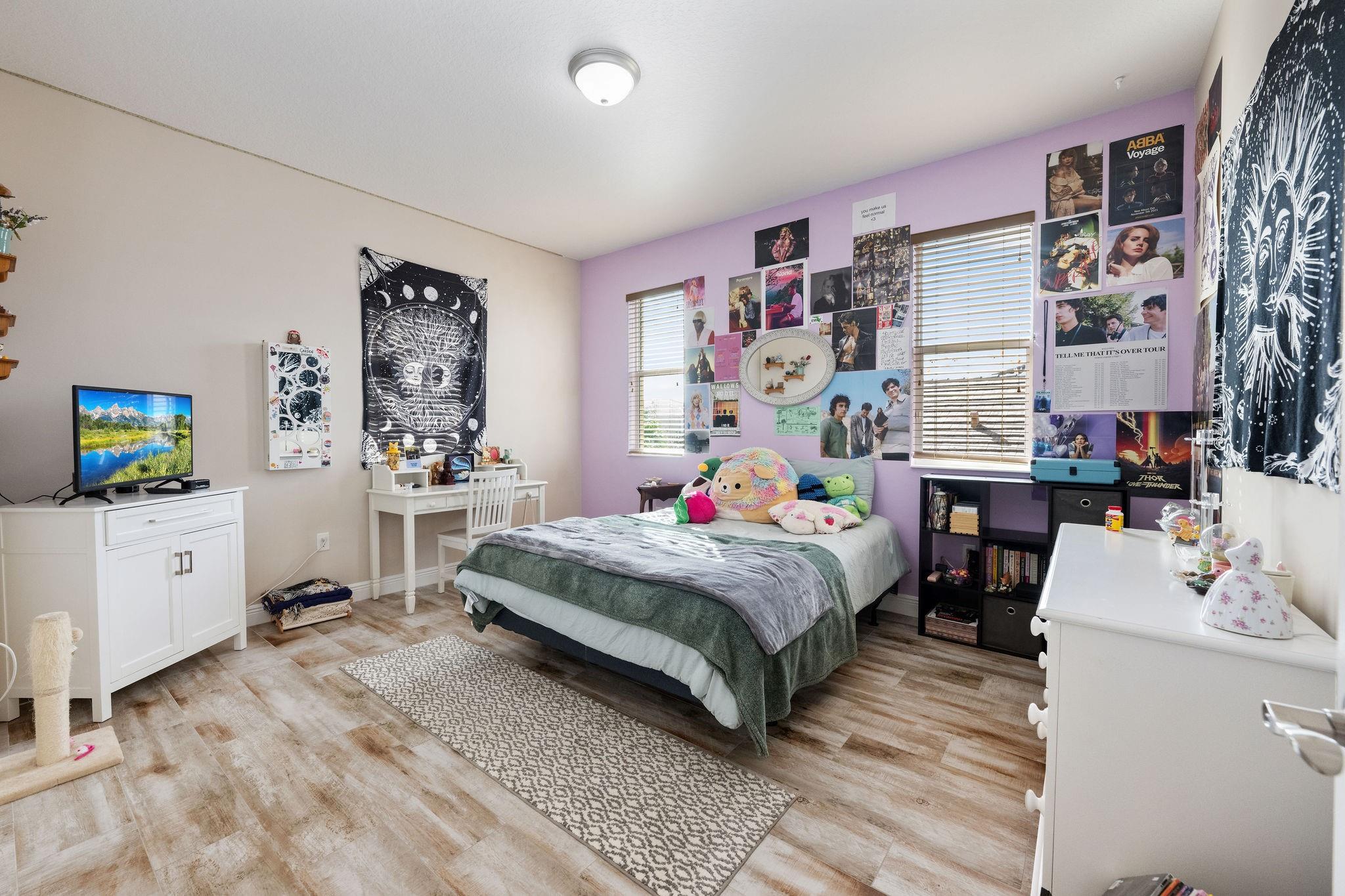 Stunning 4-bedroom, 3.5-bath pool home with expansive lake views, located in a gated community. This home features a screened pool, 3-car garage, and a spacious open kitchen with custom wood cabinets, stainless steel appliances, and a double oven. Enjoy the bonus loft, perfect as a 5th bedroom, wood-look tile flooring, and walk-in closets throughout. The private fenced yard offers tranquility, while the paver driveway and travertine patio add to the home's charm. Impact windows for added security and outdoor lighting to create the perfect outdoor ambience. Community features include: Clubhouse with amenities that include: pool, gym, pool table and ping pong.