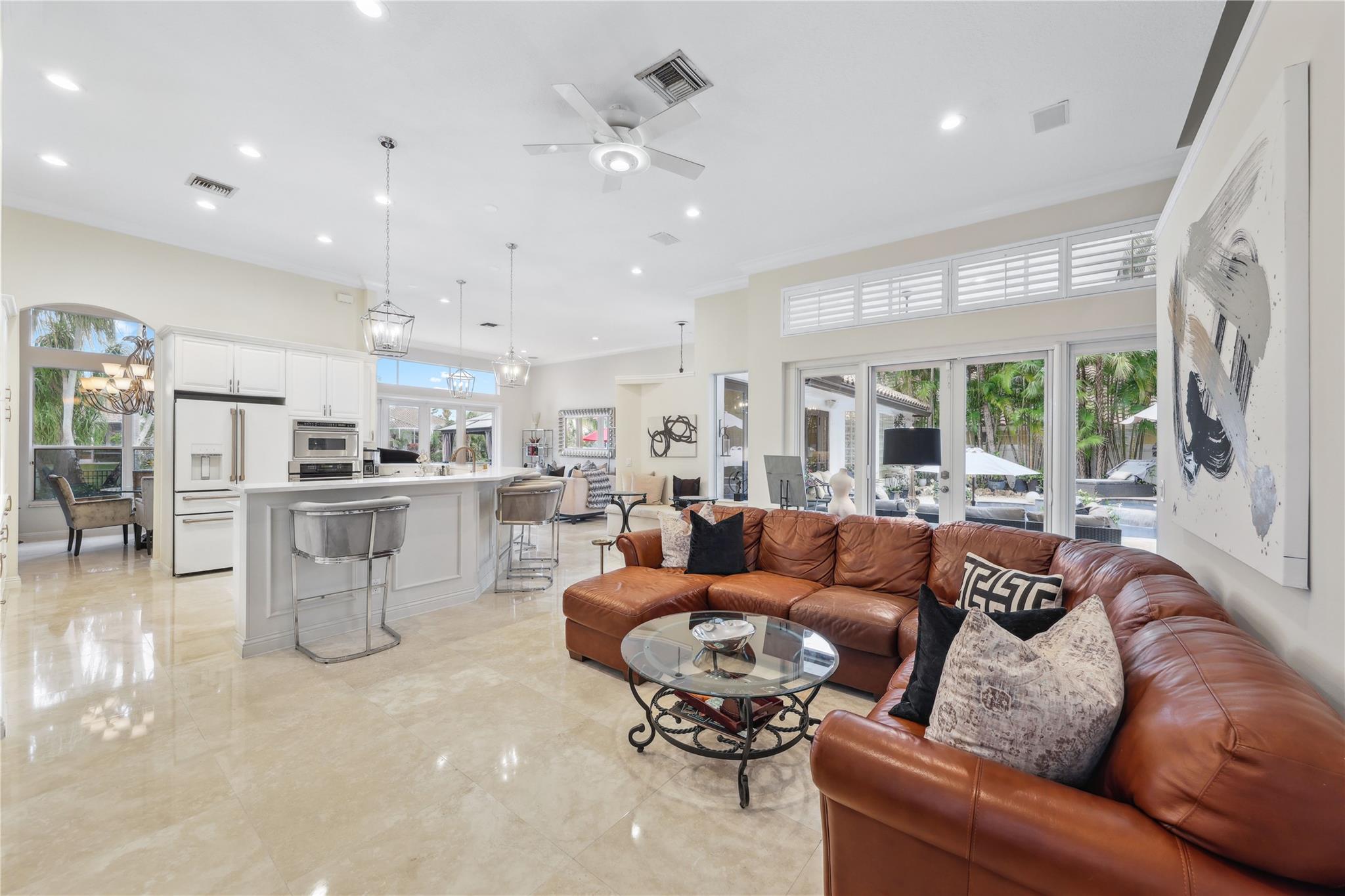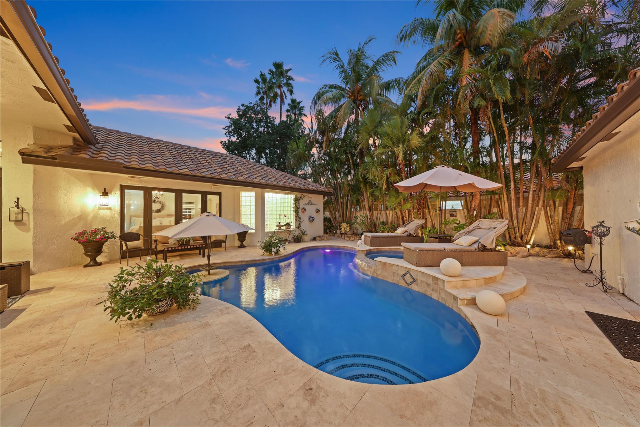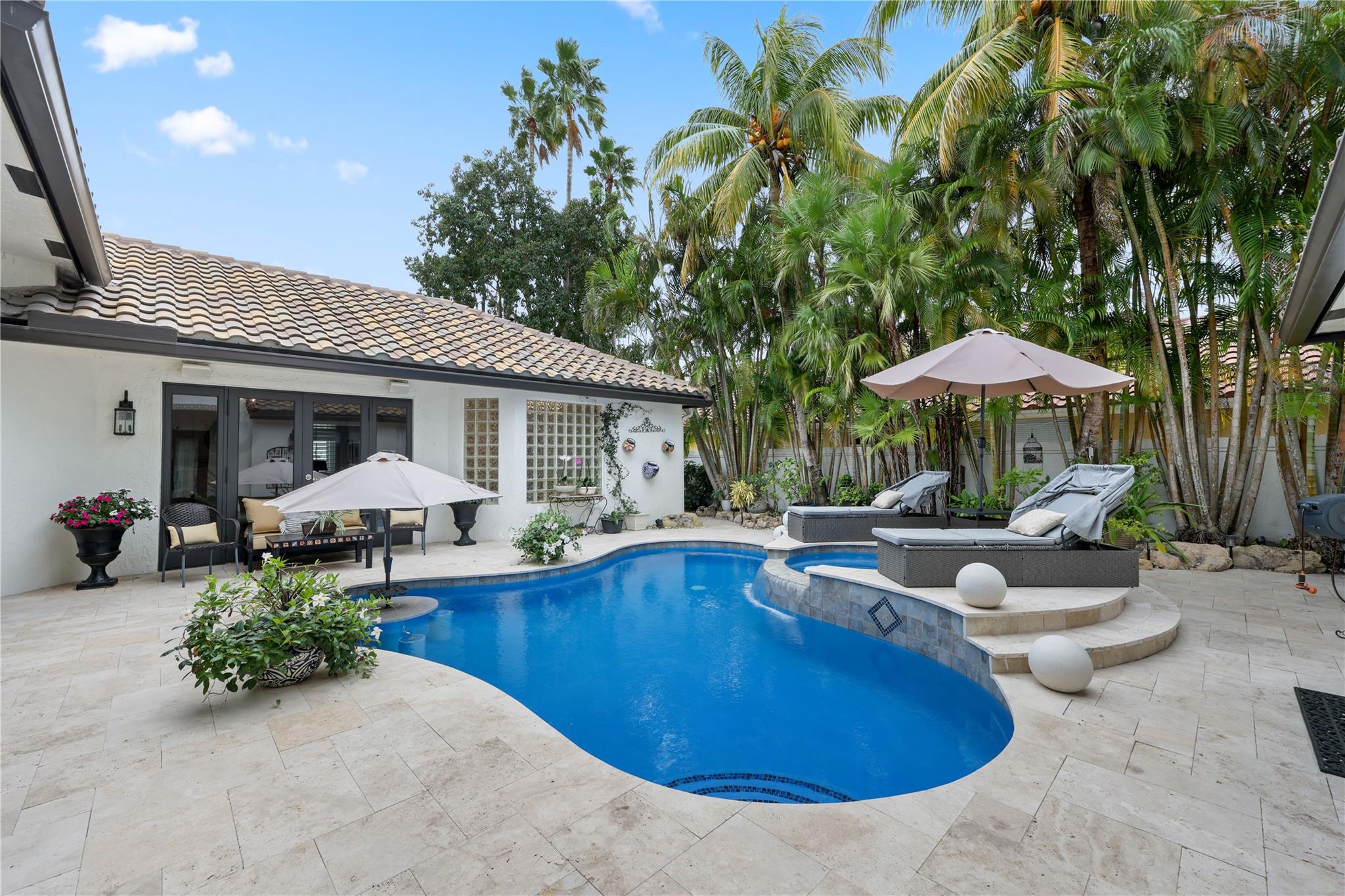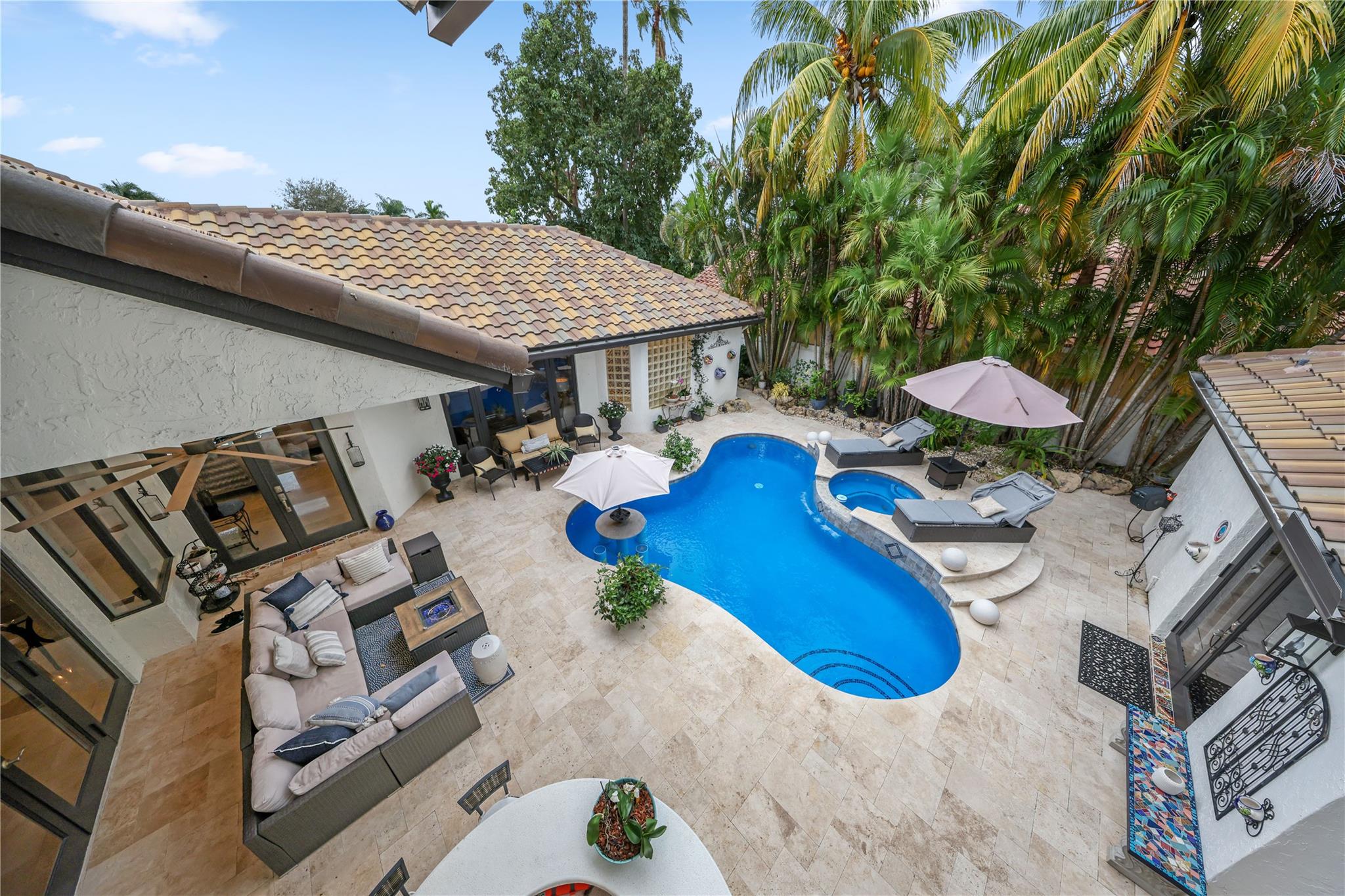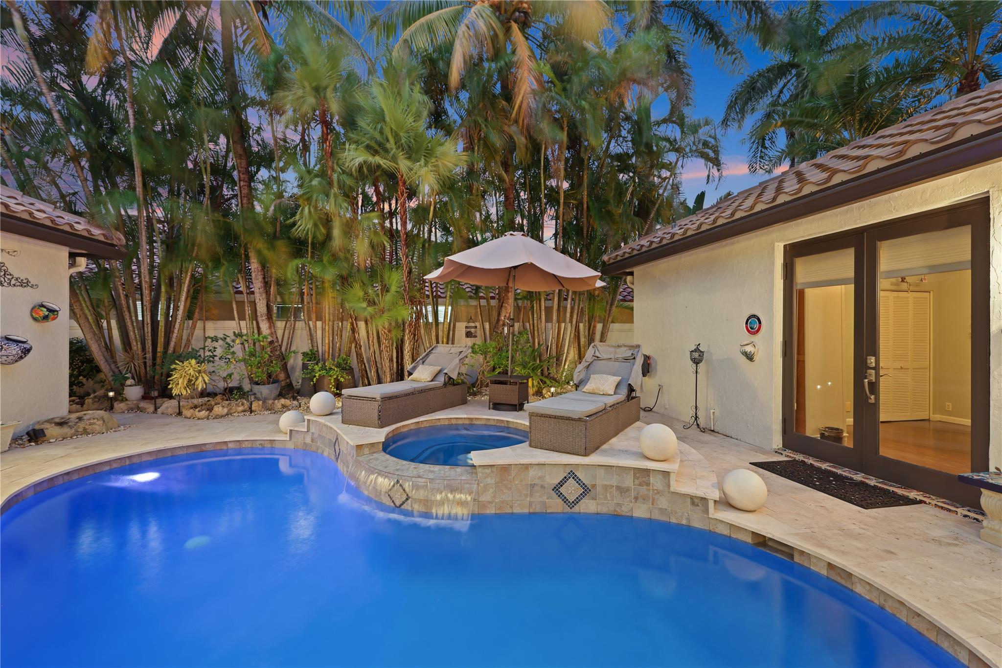 This is your rare opportunity to own a stunning 5-bedroom courtyard pool home with guest house. This beautifully renovated property sits within a gated community zoned for all A schools. Enjoy the large, fenced backyard with serene lake views and a newly updated pool & decking (2021). Other recent upgrades include a new roof (2021), impact French doors (2019), fresh interior (2024) & exterior paint (2023). At the heart of the home, the updated chef’s kitchen (2021) is perfect for hosting. This ideal layout includes a 1st-floor primary suite, 3 upstairs bedrooms, separate guest house, & a 3-car garage. Boca Isles South recently underwent a beautiful clubhouse renovation, offering social opportunities for the whole family & primely located next to South County Park