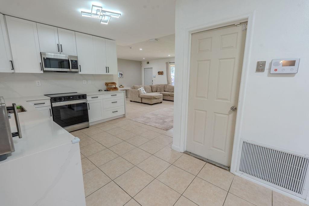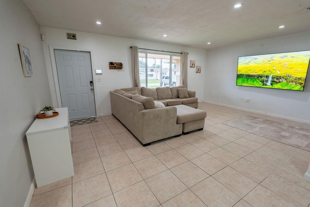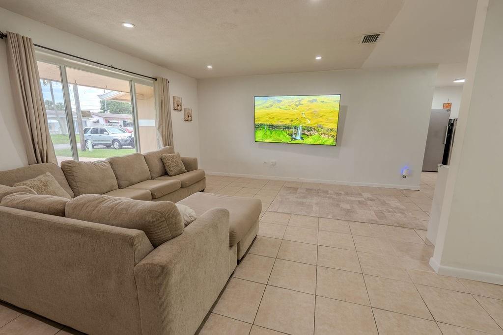 Gorgeous Fully Upgraded Single Family Home with 3 Beds/2 Baths/1 Car Garage, **PLUS A BONUS Spacious Family Room** (easily convert to 4th bedroom) Freshly painted exterior perfectly matches new enlarged driveway, Impact Windows & Doors, Solar Panels (Save $$$ instantly), Gutters, Newer AC. Nice sized living room with an Open renovated kitchen with white custom cabinets & countertops with lots of space & storage, ALL stainless-steel appliances, Primary bed on-suite bath & 2nd bath beautifully remodeled. Relax in your family room & enjoy the amazing water view. Entertain in your backyard! Nestled in a quiet neighborhood, Extremely Low Association fee, Covers lawn, Community Pool. Close to shopping, parks, schools.