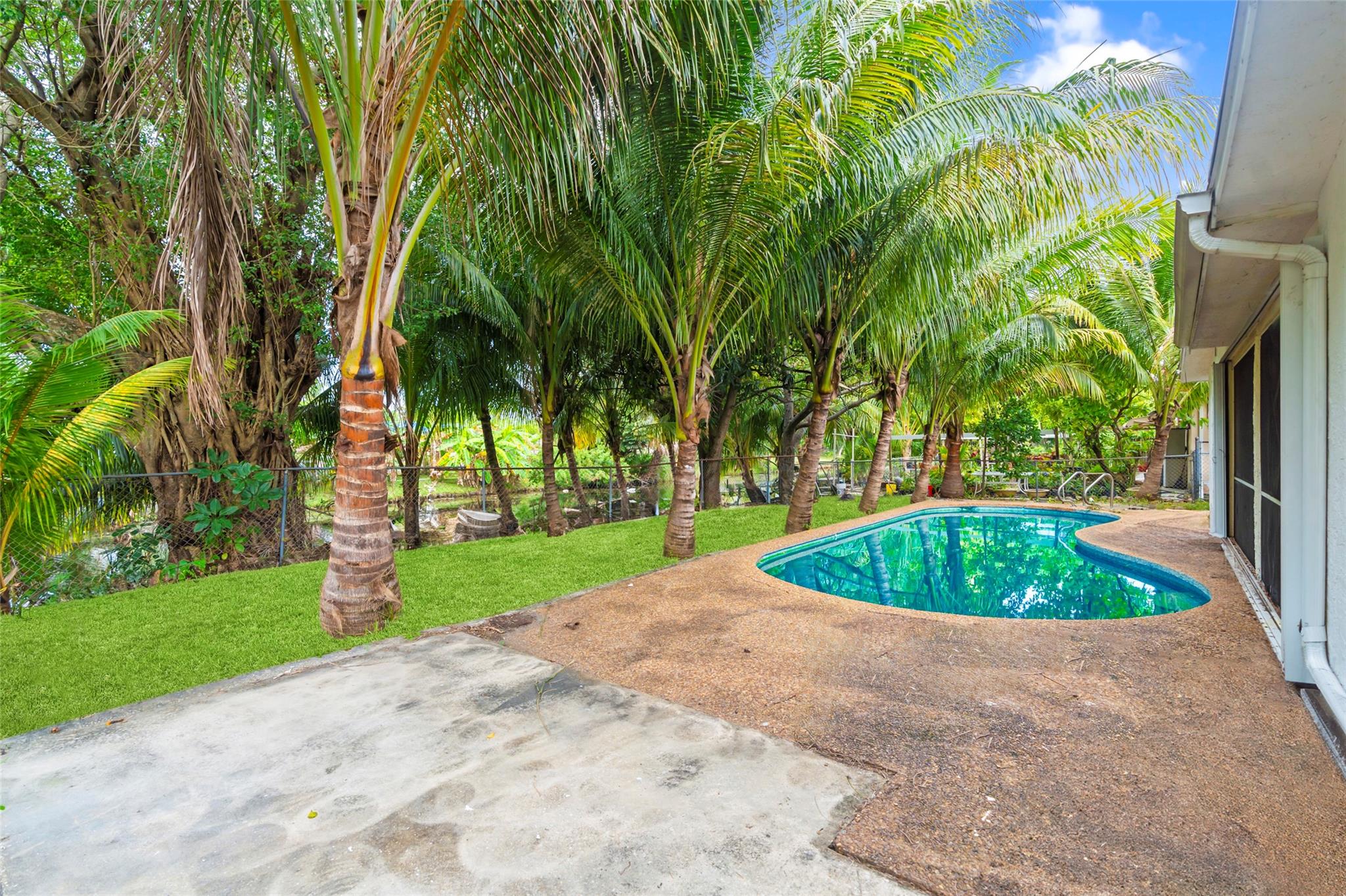 This charming 4-bedroom, 2-bath single-family home, allows you to step into your private, fully gated backyard, with a pool and water view. Beautifully updated primary bathroom, AC is less than 4 years old and has a 1 car garage. The house does need TLC. Perfect home for an investor or a family wanting to design their dream home.