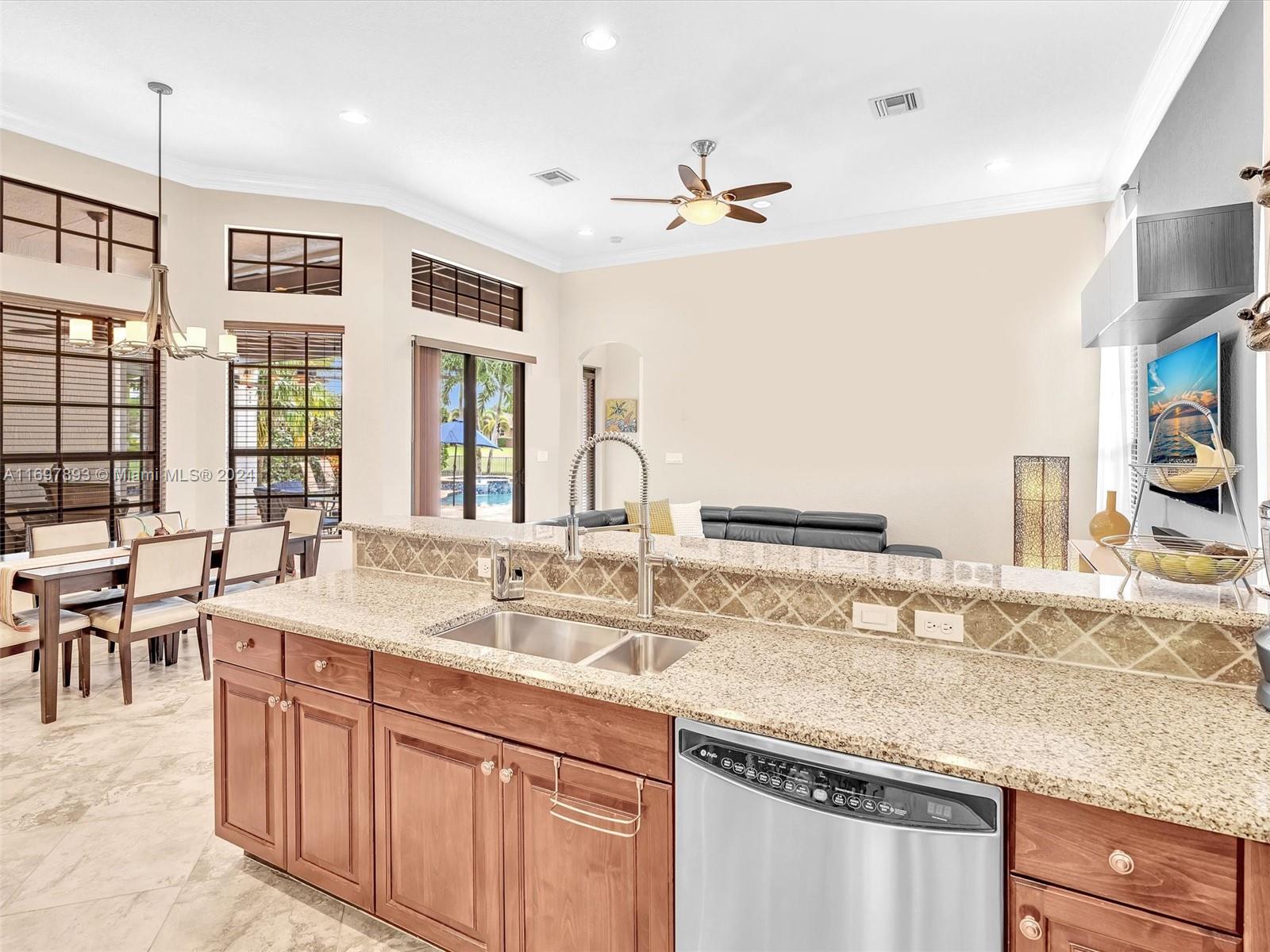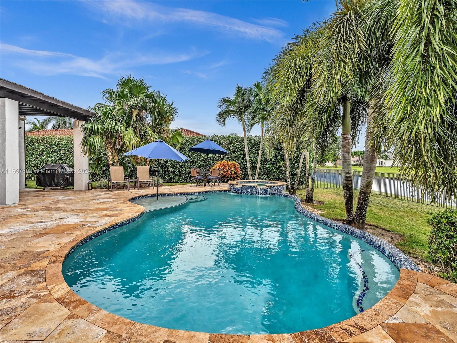 EXTREMELY RARE 5-BED/4-BATH, 1-STORY ESTATE HOME ON ONE OF THE BEST AND LARGEST LOTS IN THE HIGHLY DESIRABLE GATED COMMUNITY OF ESTADA AT MONTERRA. FEATURES INCLUDE: RESORT STYLE BACKYARD W/ CUSTOM POOL & JACUZZI, OVERSIZED TRAVERTINE PATIO, SOUND SYSTEM, TV, AND LUSH TROPICAL LANDSCAPING. FULL MARBLE PRIMARY BATHROOM * PORCELAIN TILE FLOORS MAIN AREAS * PORCELAIN WOOD-LOOK FLOORING IN ALL BEDROOMS * SOARING 12' CEILINGS THRU-OUT HOME * CROWN MOLDING * IMPACT GLASS WINDOWS / DOORS * BUILT-IN CABINETS/SHELVING ALL CLOSETS * A/C 2017 * WATER HEATER 2021 * BEST PUBLIC SCHOOLS IN BROWARD COUNTY * ACROSS THE STREET FROM THE POSNACK SCHOOL AND JCC * CLOSE TO EVERYTHING * LOW HOA FEE INCLUDES CABLE, INTERNET, ALARM, 24-HR SECURITY GUARD.