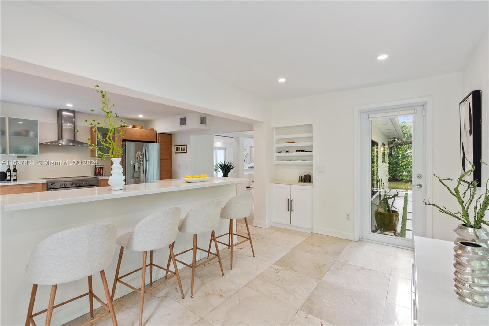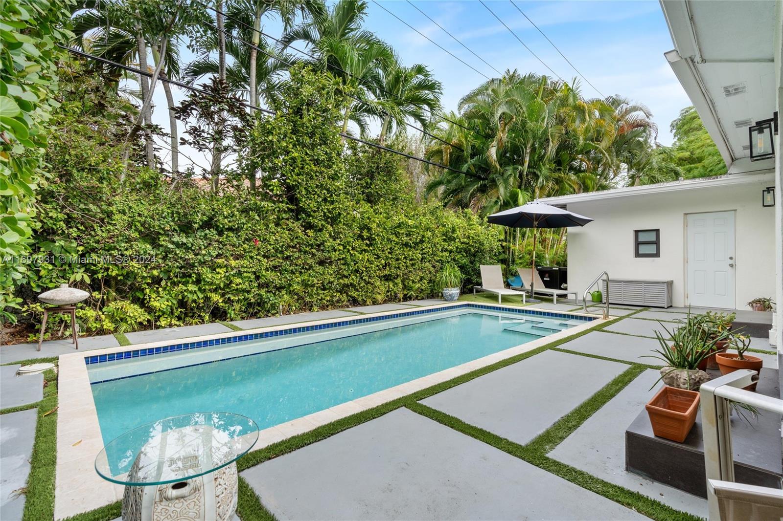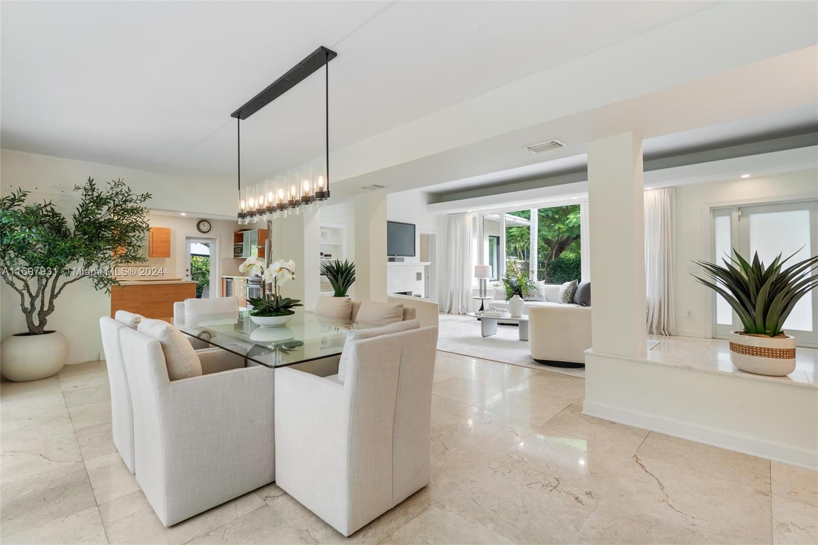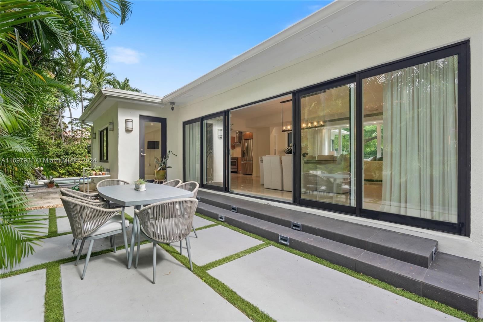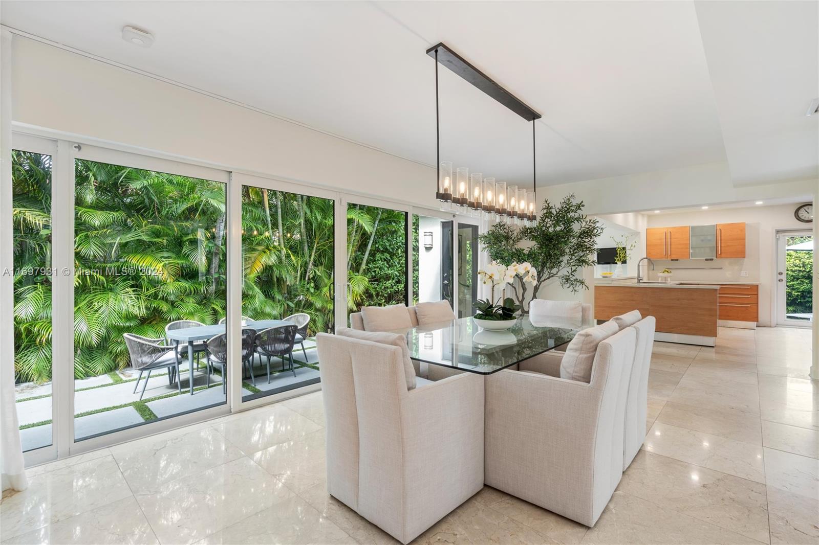 Located within the gates of the coveted Morningside neighborhood, this stunning 3-bed, 2-bath home has been beautifully updated for luxurious living and entertaining. The open floor plan, impact windows, and stacking sliding doors flood the home with natural light while seamlessly blending indoor and outdoor spaces. Interior recent upgrades include a new Italian stove, bar area, Jacuzzi tub, ADT security, and a Lutron smart home system. Recent outdoor updates, enjoy a heated and chilled saltwater pool, lush landscaping, and a new front patio that creates a private oasis. The air-conditioned garage adds storage or workspace versatility. Steps from Morningside Park with bay views, tennis courts, basketball courts, playground and more, this home combines modern elegance with timeless charm.